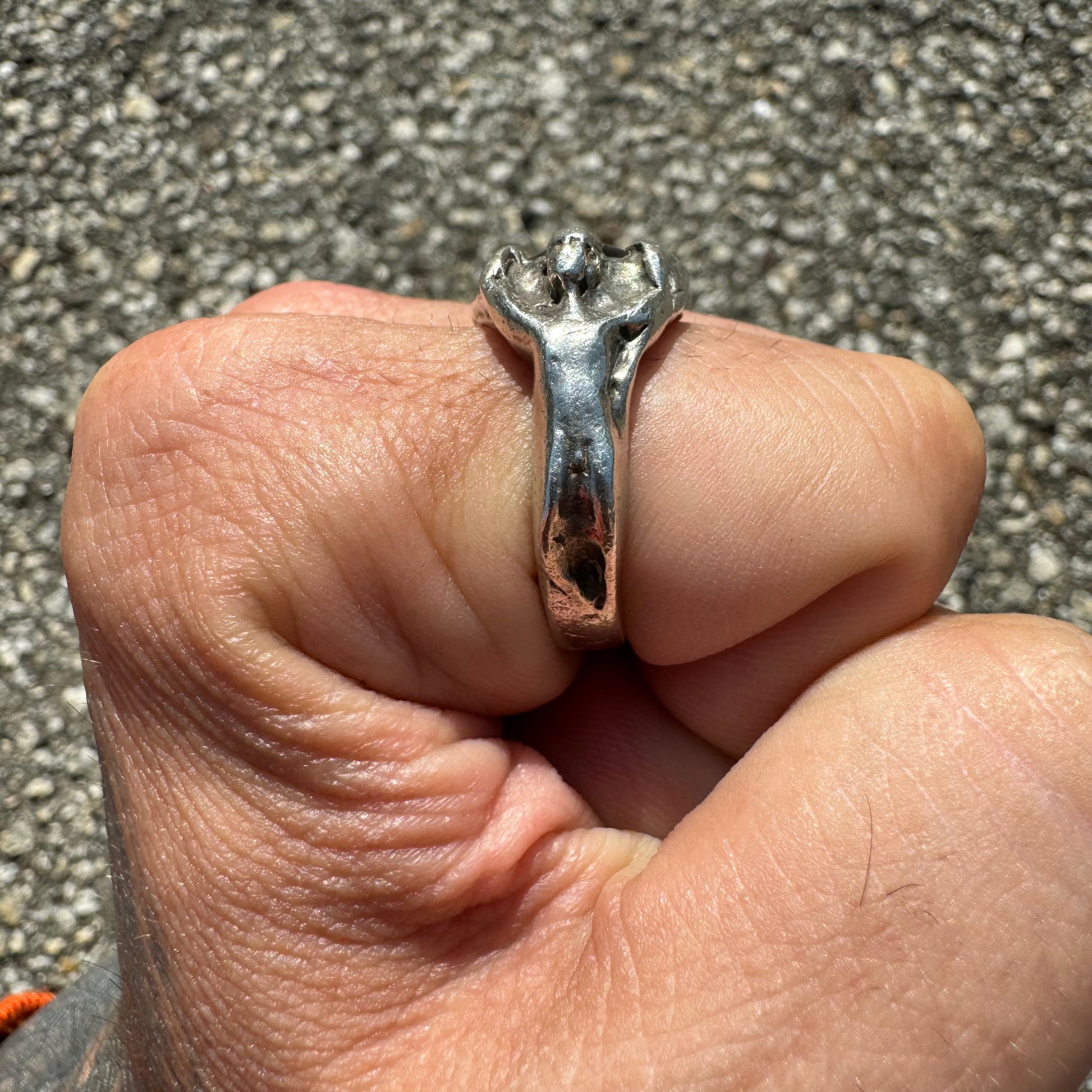 Pre-WW2 Heavyweight Sterling/.925 Prosthetic Eye Cherub Ring (11)