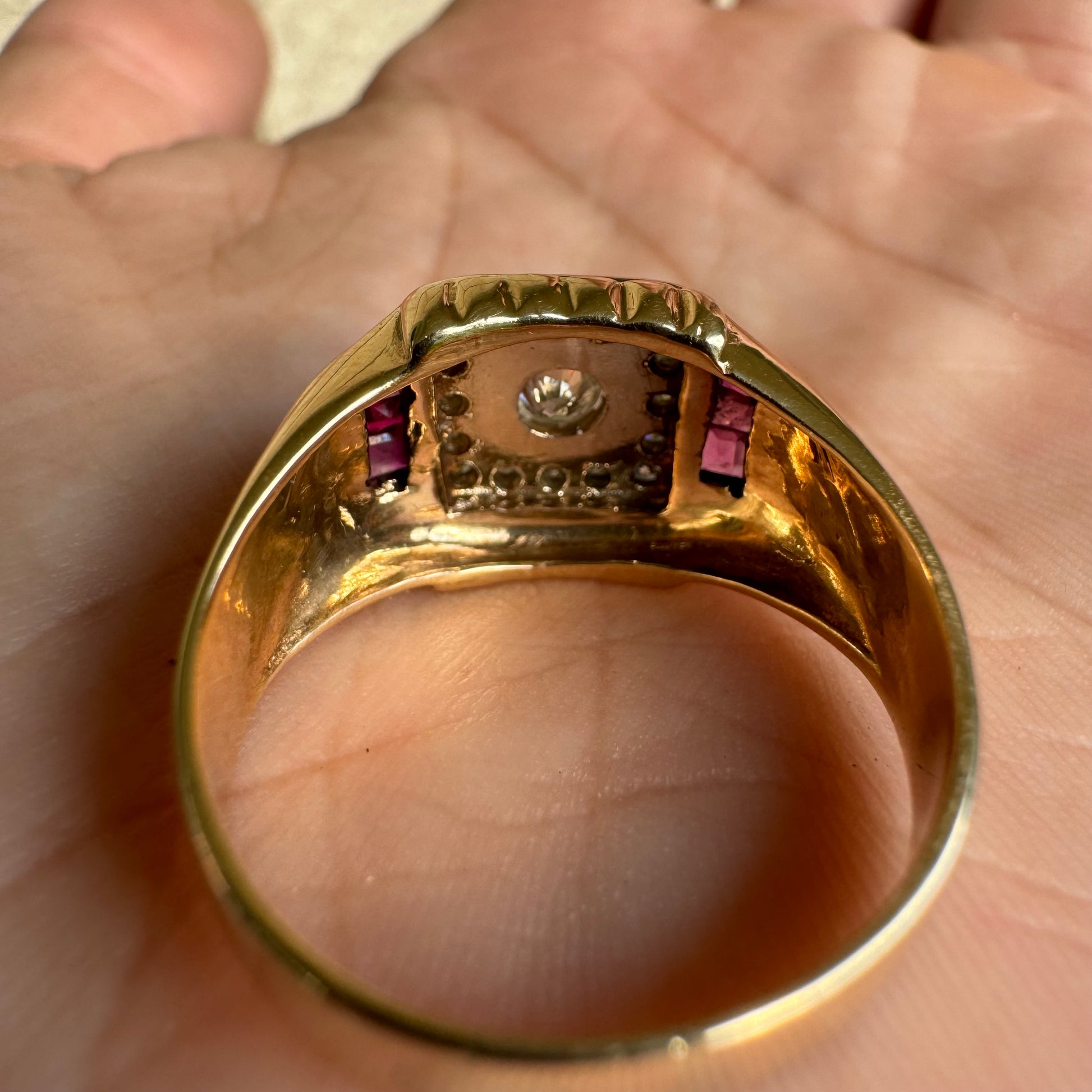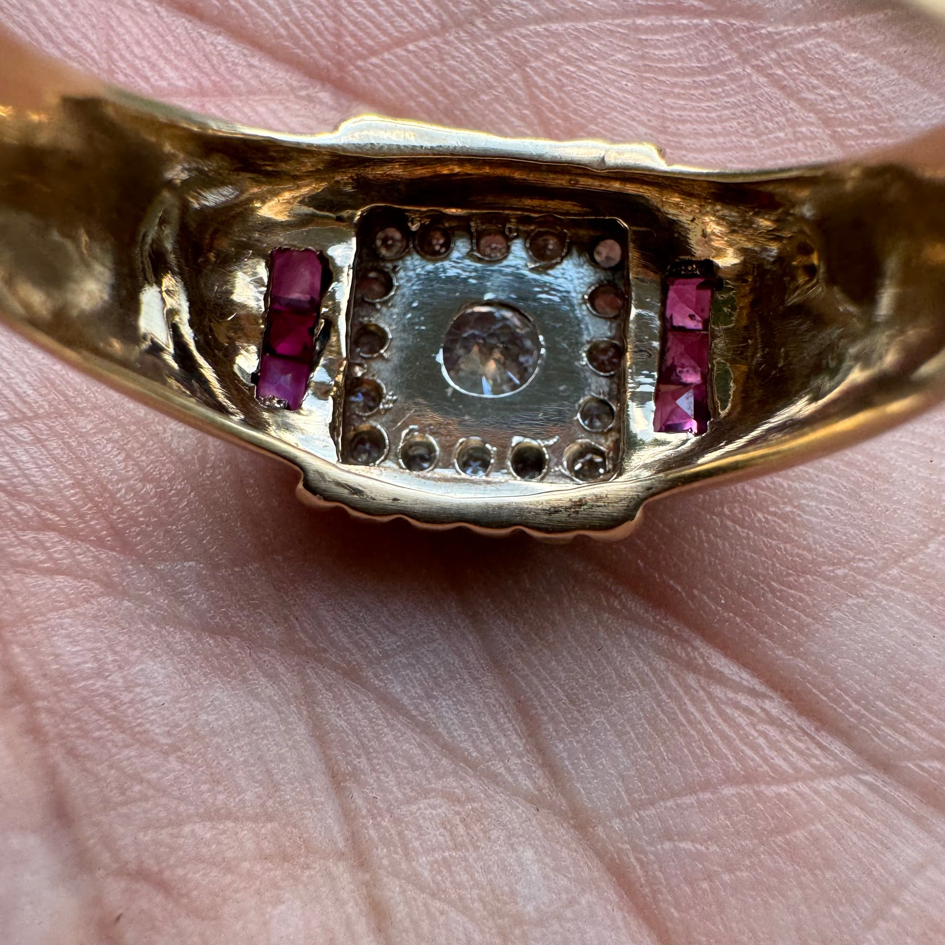 Mid Century Natural VS Quality Diamond And Ruby Mafioso Gents Ring (10.5)