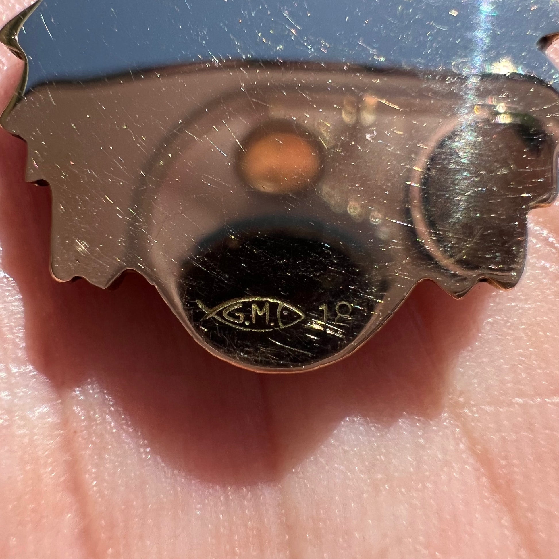 Pre-1950’s Solid 18k Yellow Gold Fire Enameled Chief Pendant