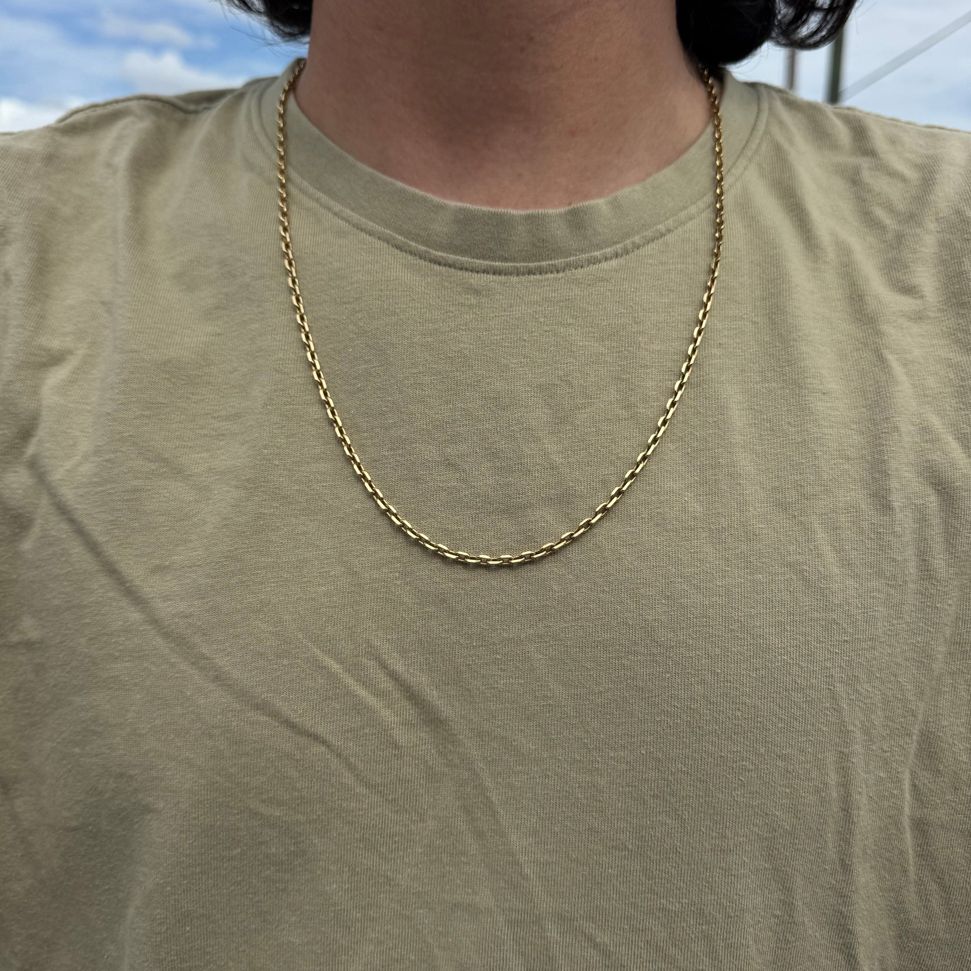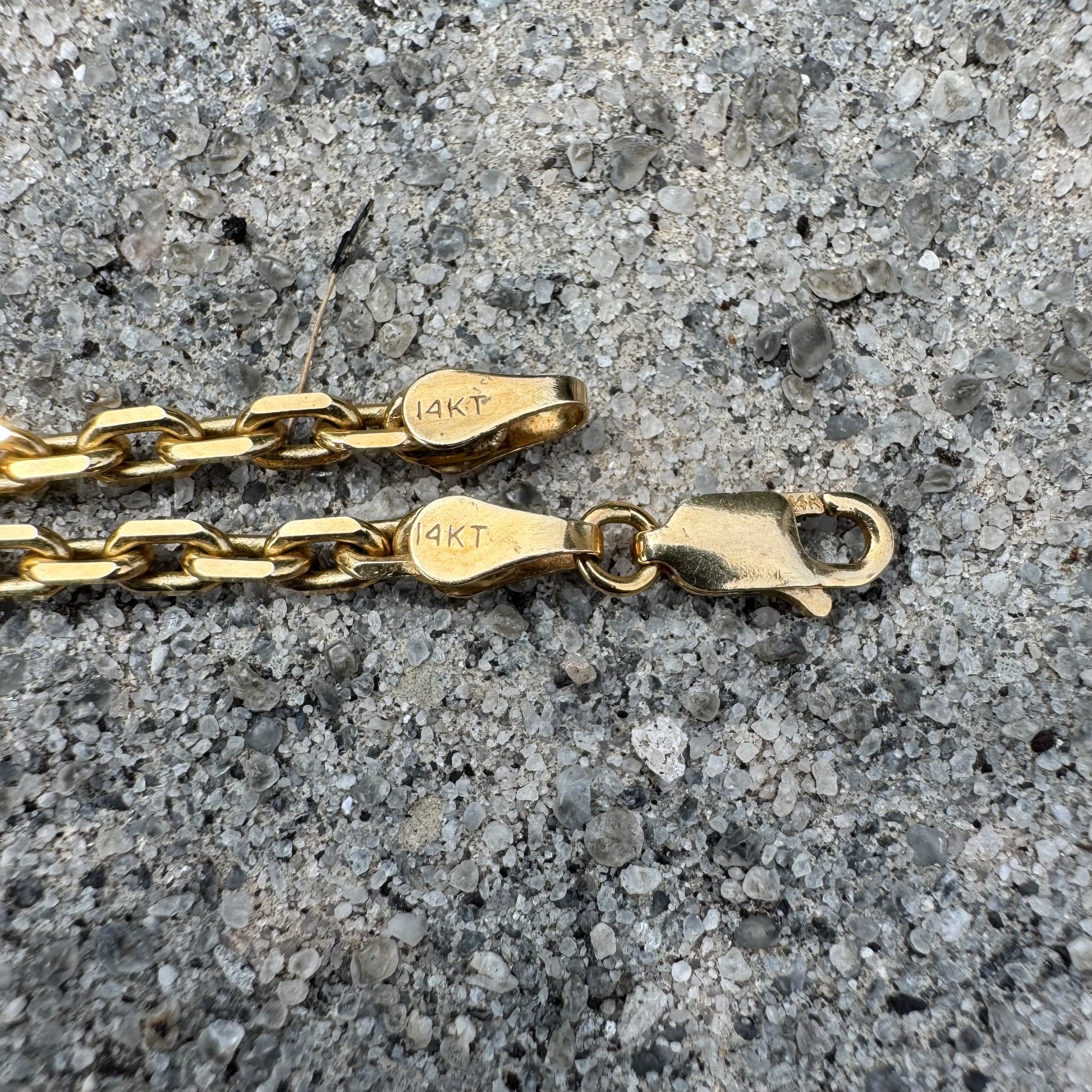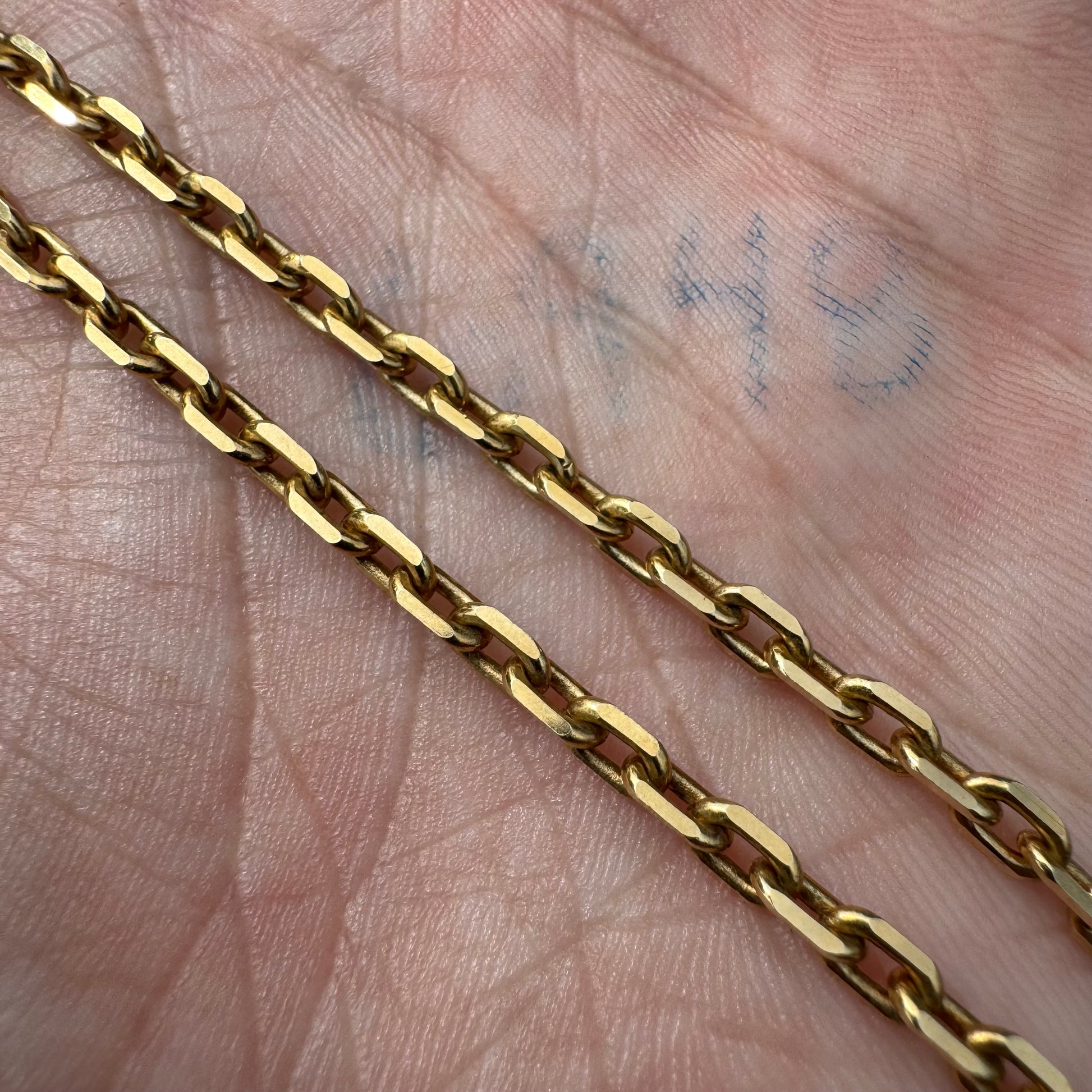 In excellent condition one of the strongest, sleekest, yet elegant necklace styles that are one of my hottest sellers. Crafted out of a solid 14k high mirror polished deep golden yellow gold the rounded off sharpened “knife edged” links give off not only a shiny glow but also add that tough and rugged look on top of the beauty. Measuring 24” in wearable length and weighing in at strong and sturdy 19.3g with the perfect chunky thickness of 3mm this is a great everyday wear whether worn solo, with or without a pendant, and looks excellent in a stack with other necklaces. A commanding presence on the neck it’s a longer length that can simply be thrown over the head.