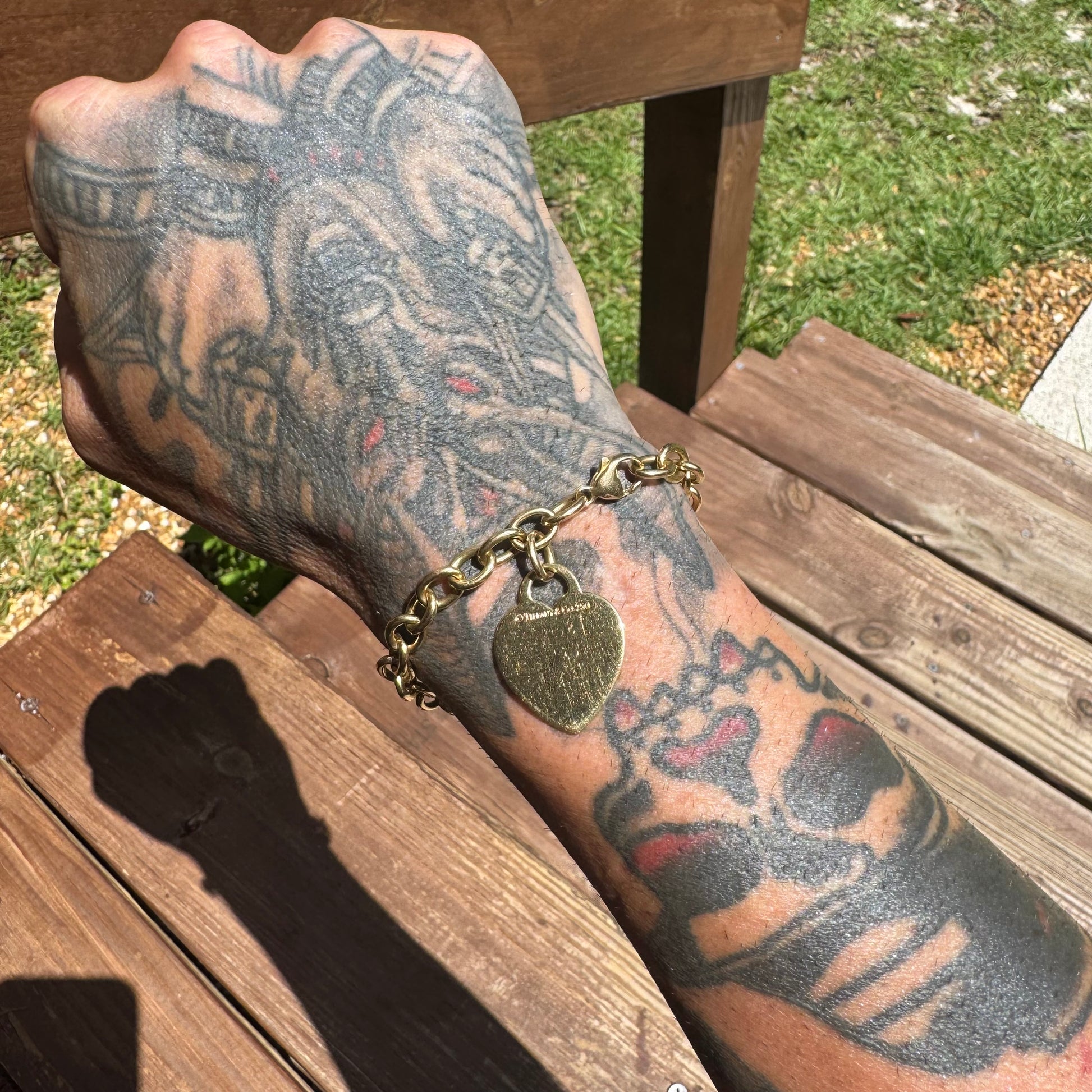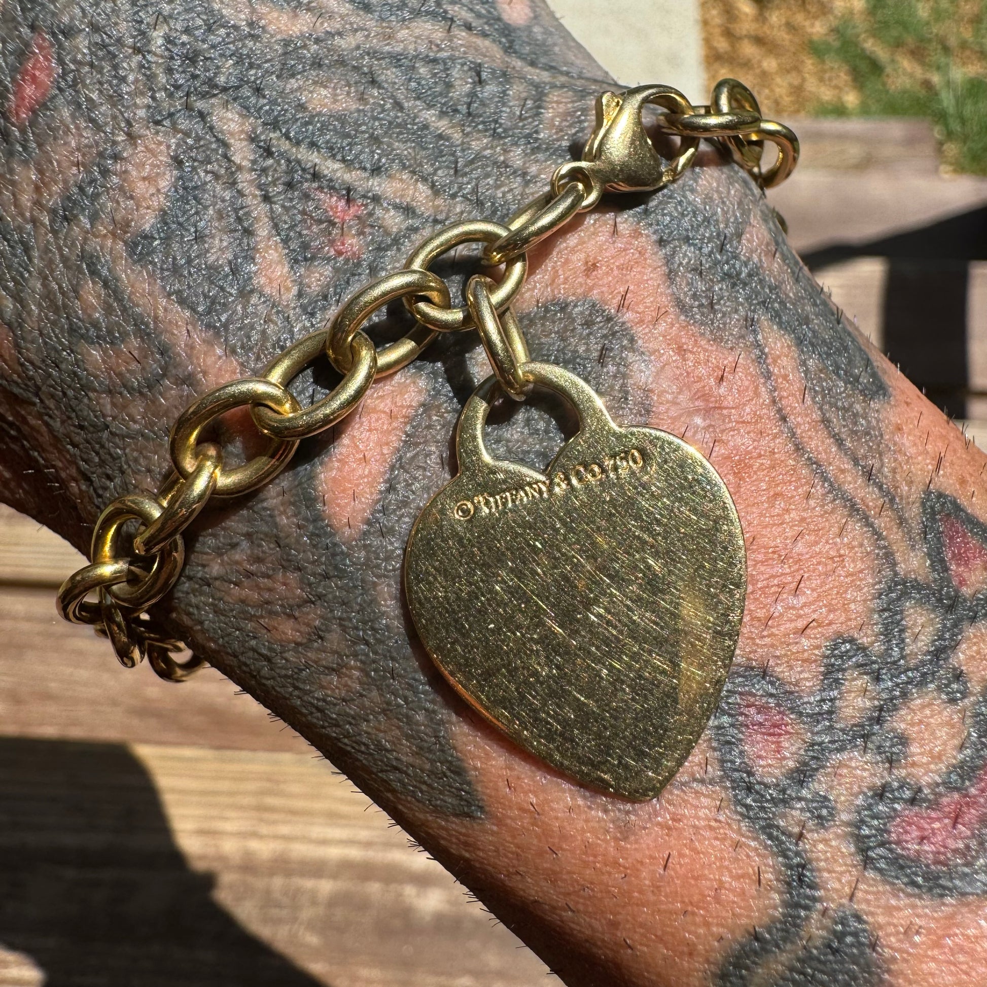 Tiffany & Co. Solid 18k Yellow Gold Cable Link Heart Tag Bracelet (7.75”)