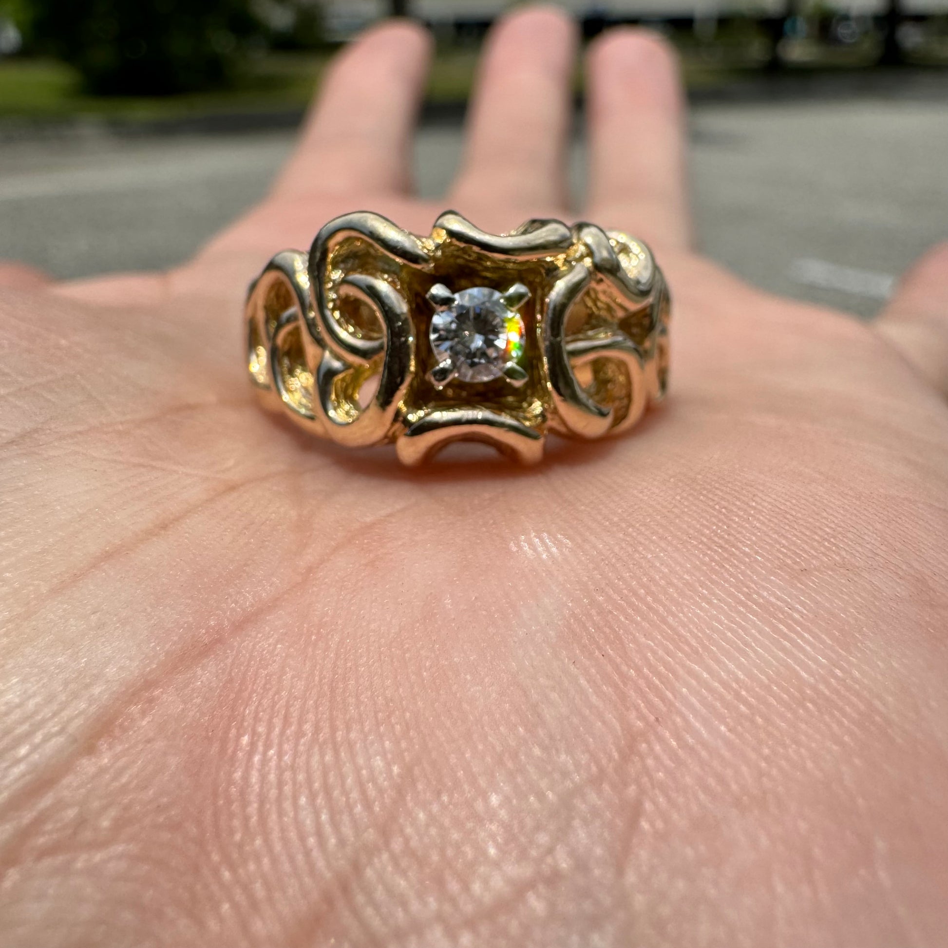 Mid-Century Solid 14k Yellow Gold .25ct Natural VS Diamond Interwoven Ring (10)