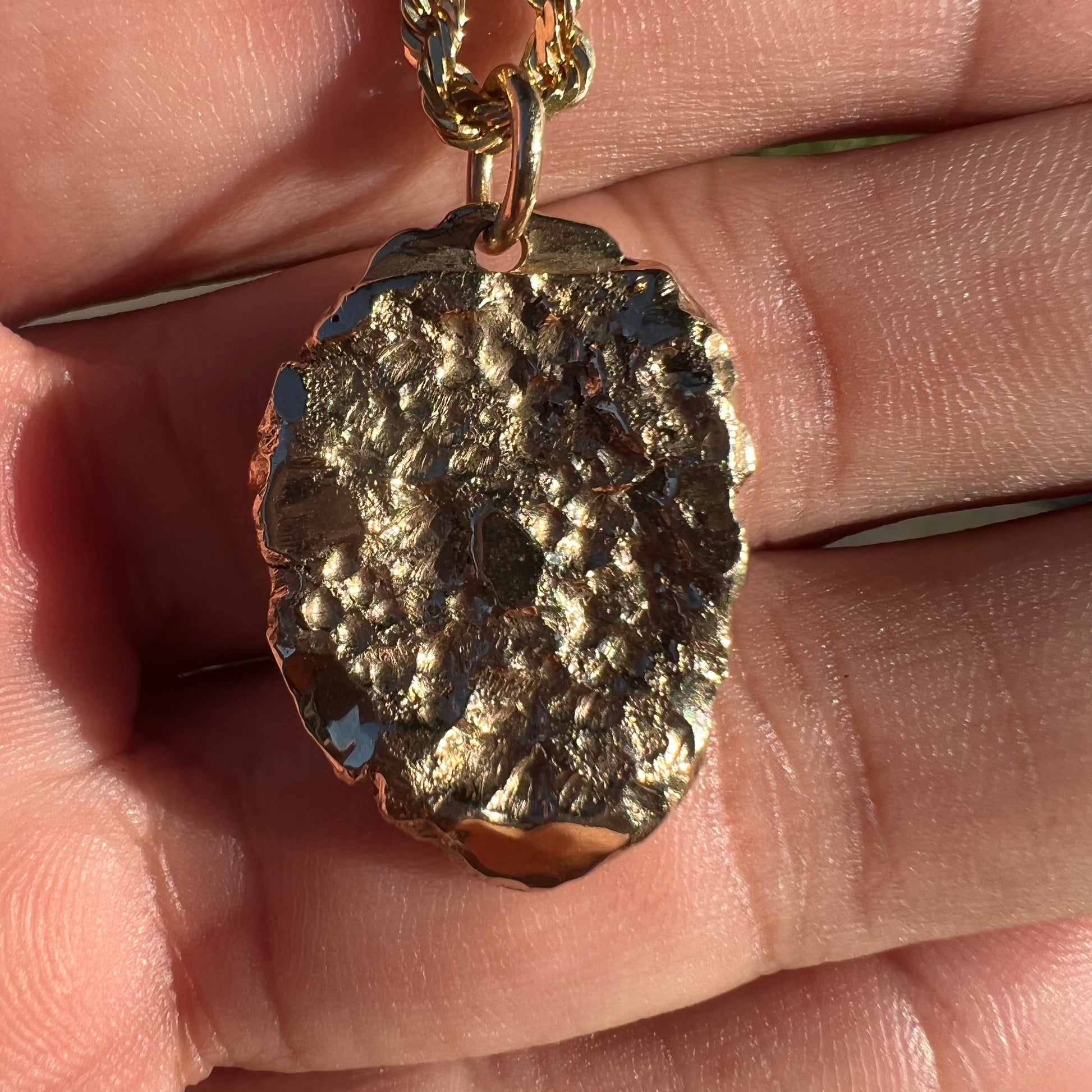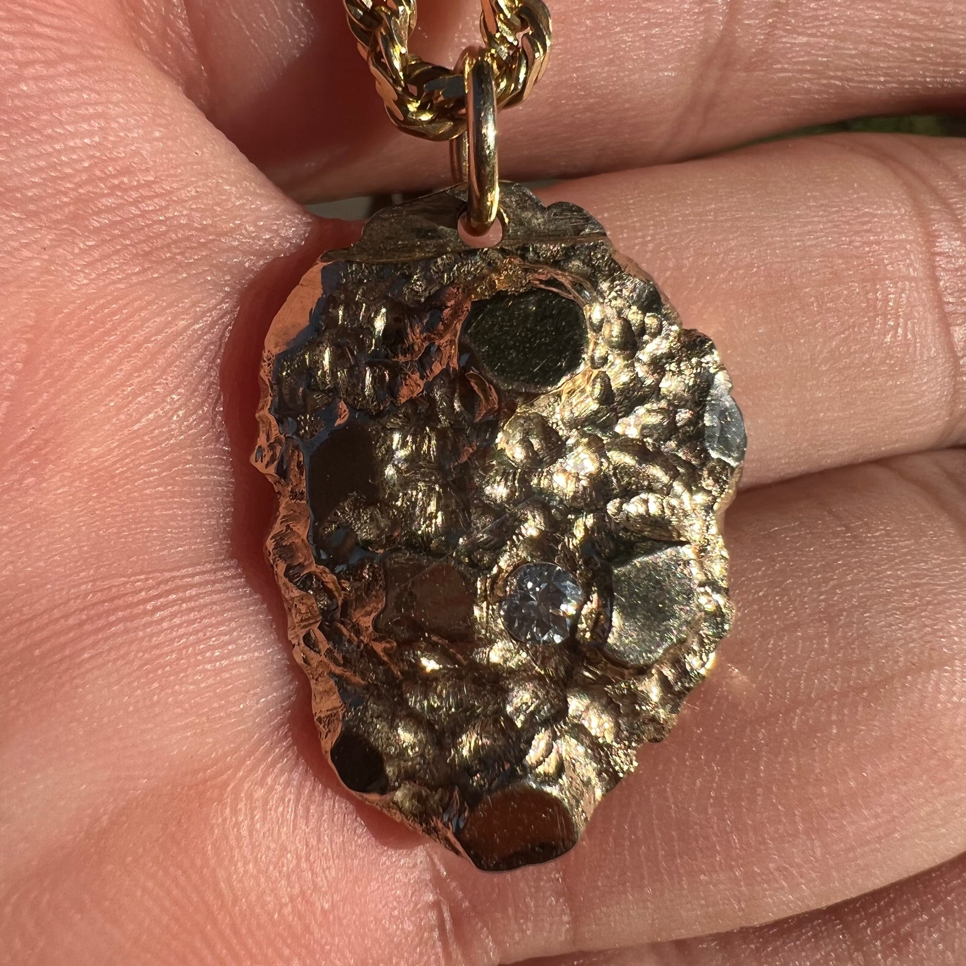 Solid 18k Yellow Gold Natural Diamond Encrusted Nugget Pendant