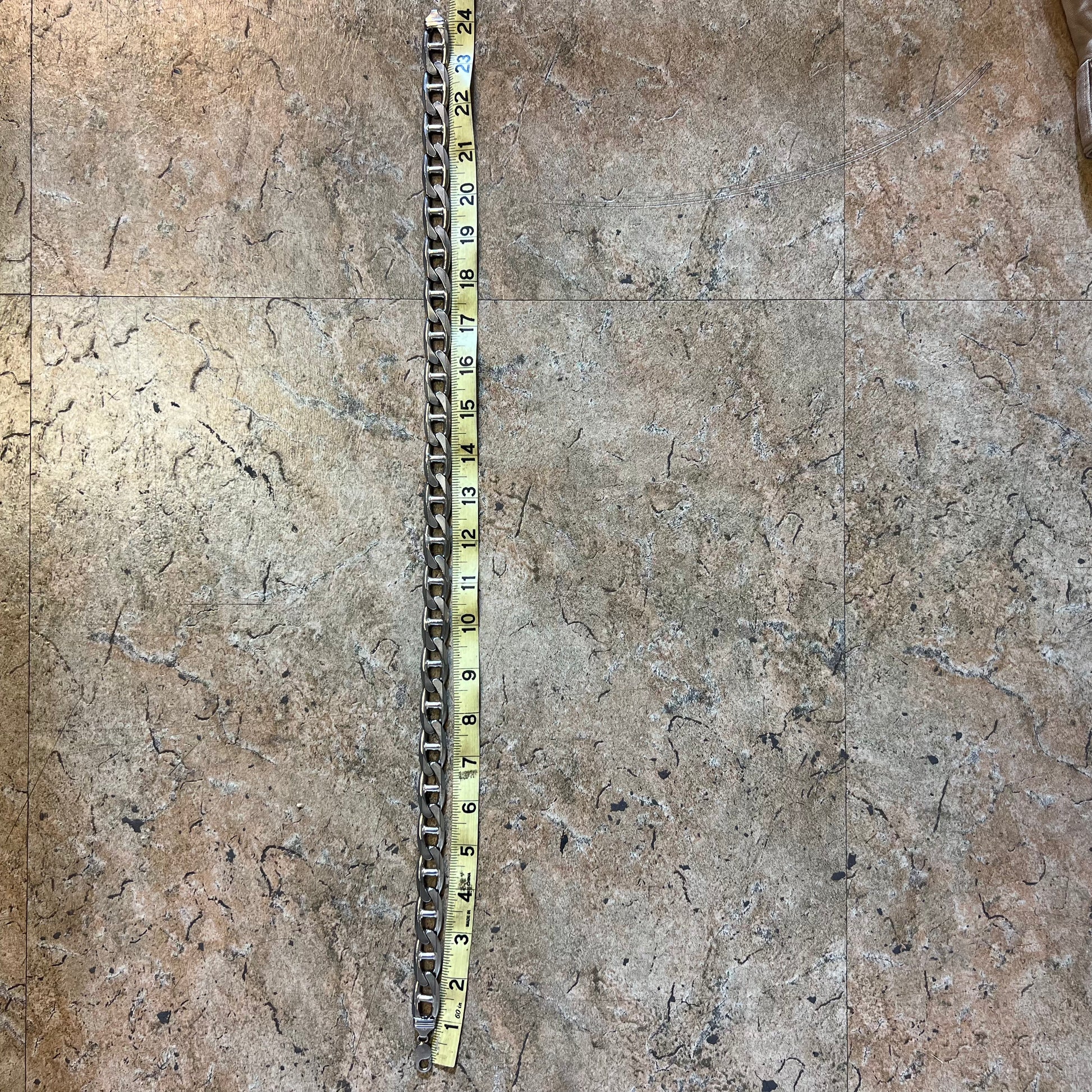 At a whopping 230g it’s hard to find monster sized chains that look this sleek. All solid sterling/.925 high end Italian silver with contrasted bevel edges on this thick mariner link chain. 24” in length and a super chunky 16mm X 5MM this is for the big dogs. This chain is being sold at a wholesale price of less than $1.90 per gram.
