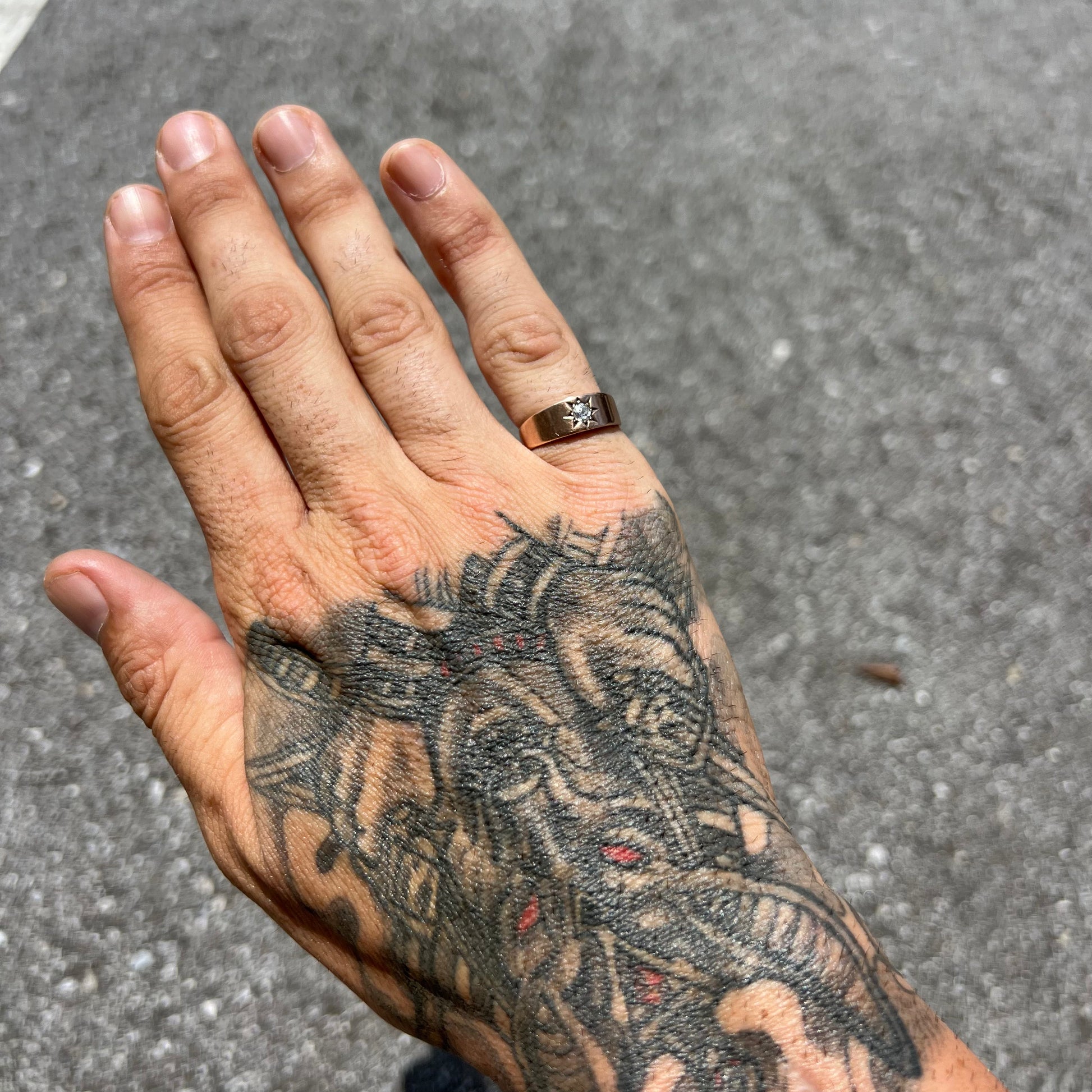 Over 100 years old is an immaculate natural old mine cut solitaire Diamond clean to the naked eye and under a loupe at approximately .15ct. Sitting in a beautiful 14k starburst setting fits a size:7 but can be resized.