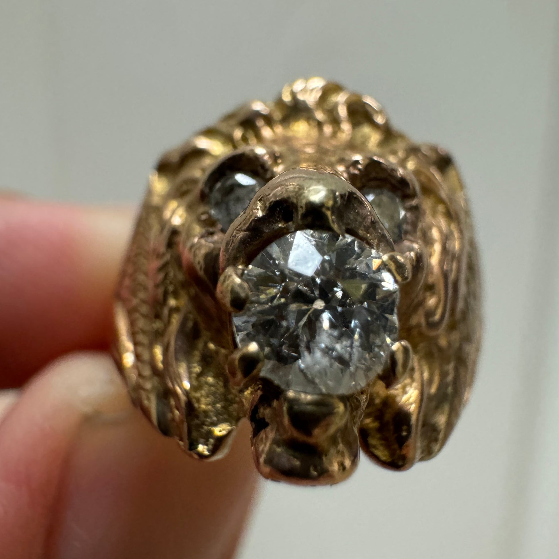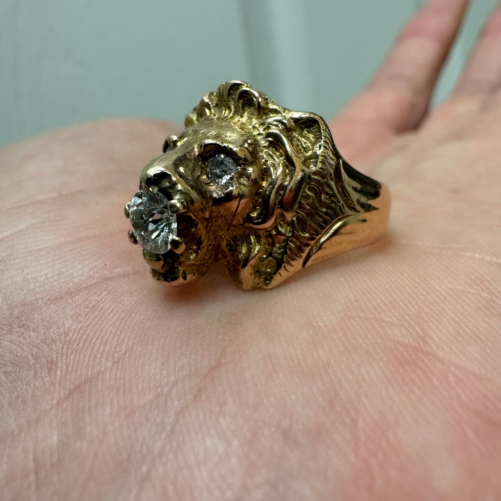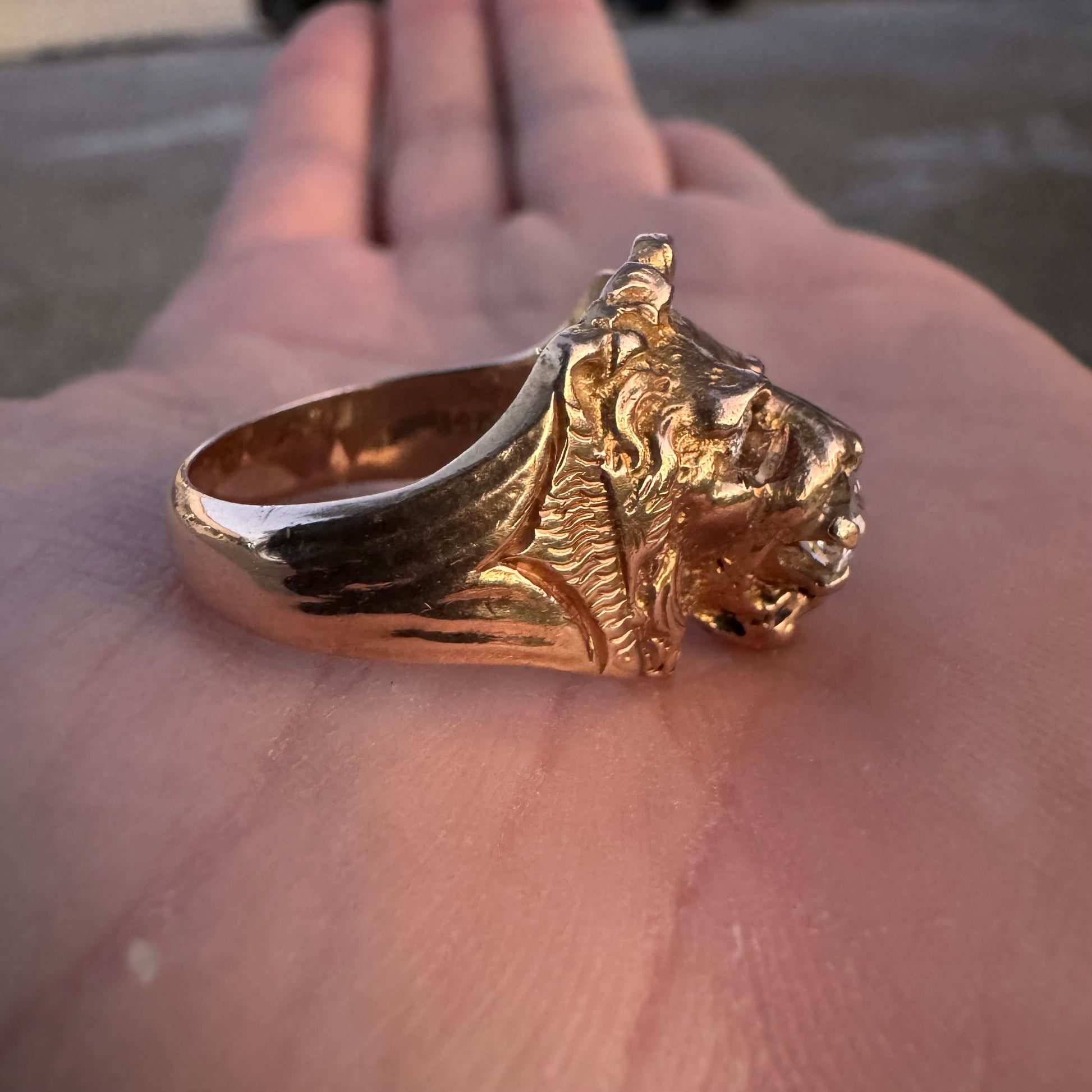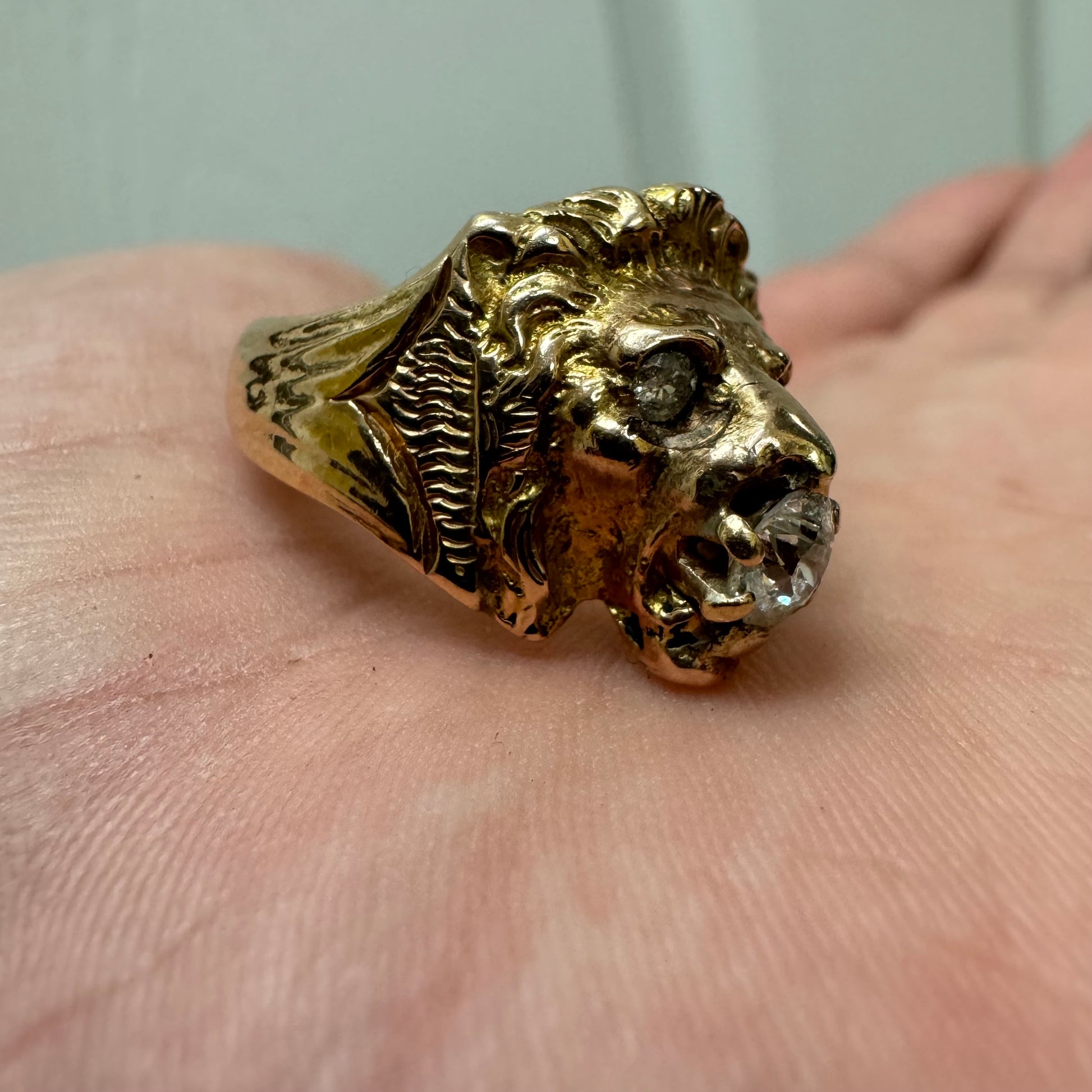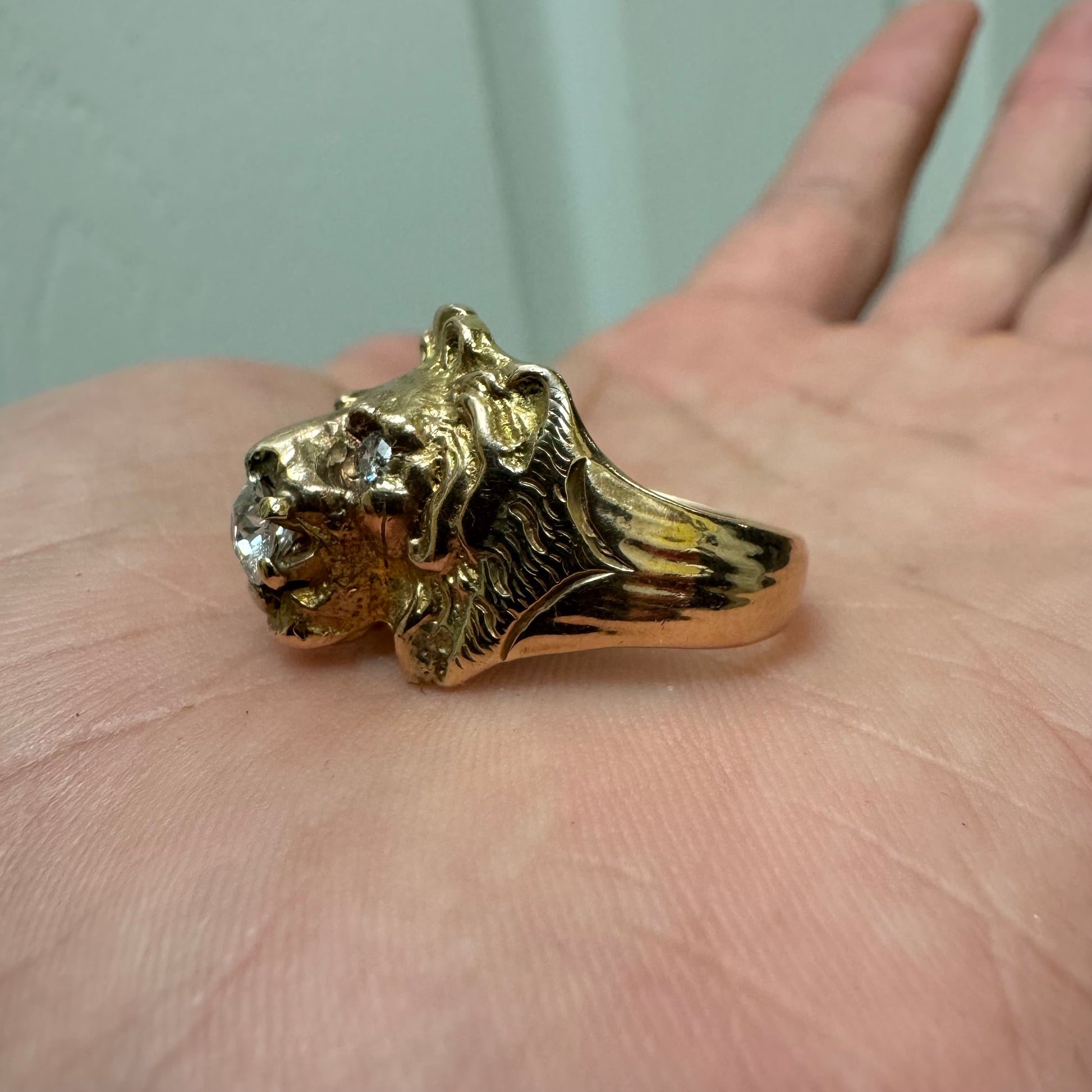Victorian Era Solid 14k Yellow Gold .50Ct Natural Old Euro Cut Diamond Lion Ring (7.5)