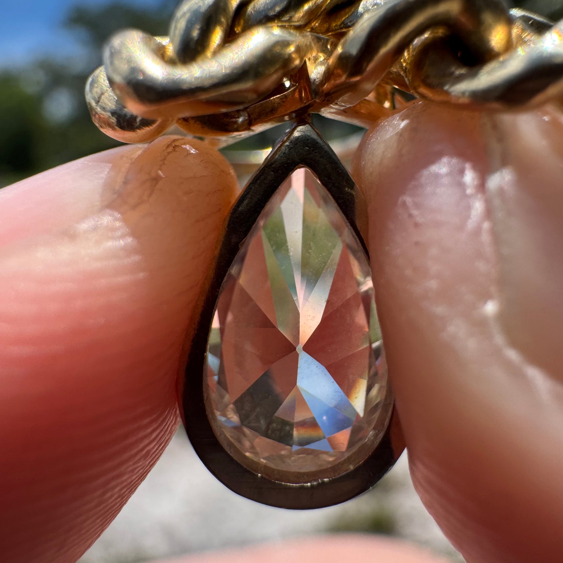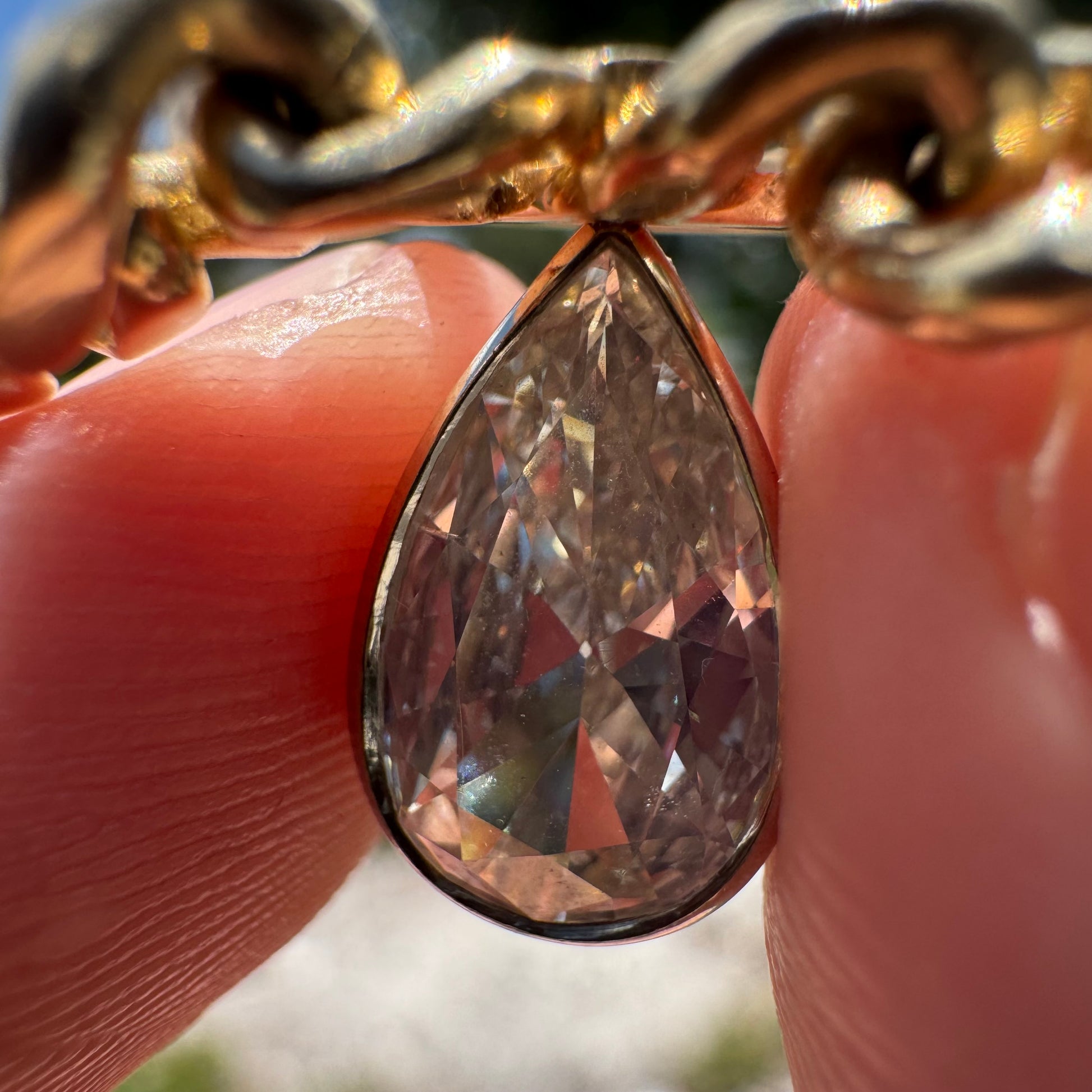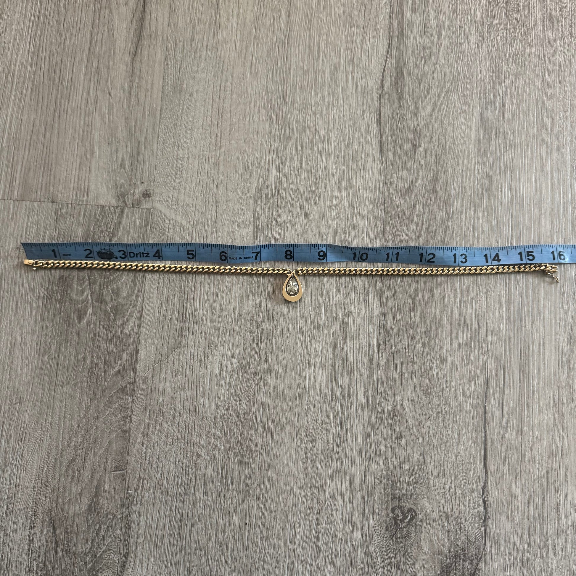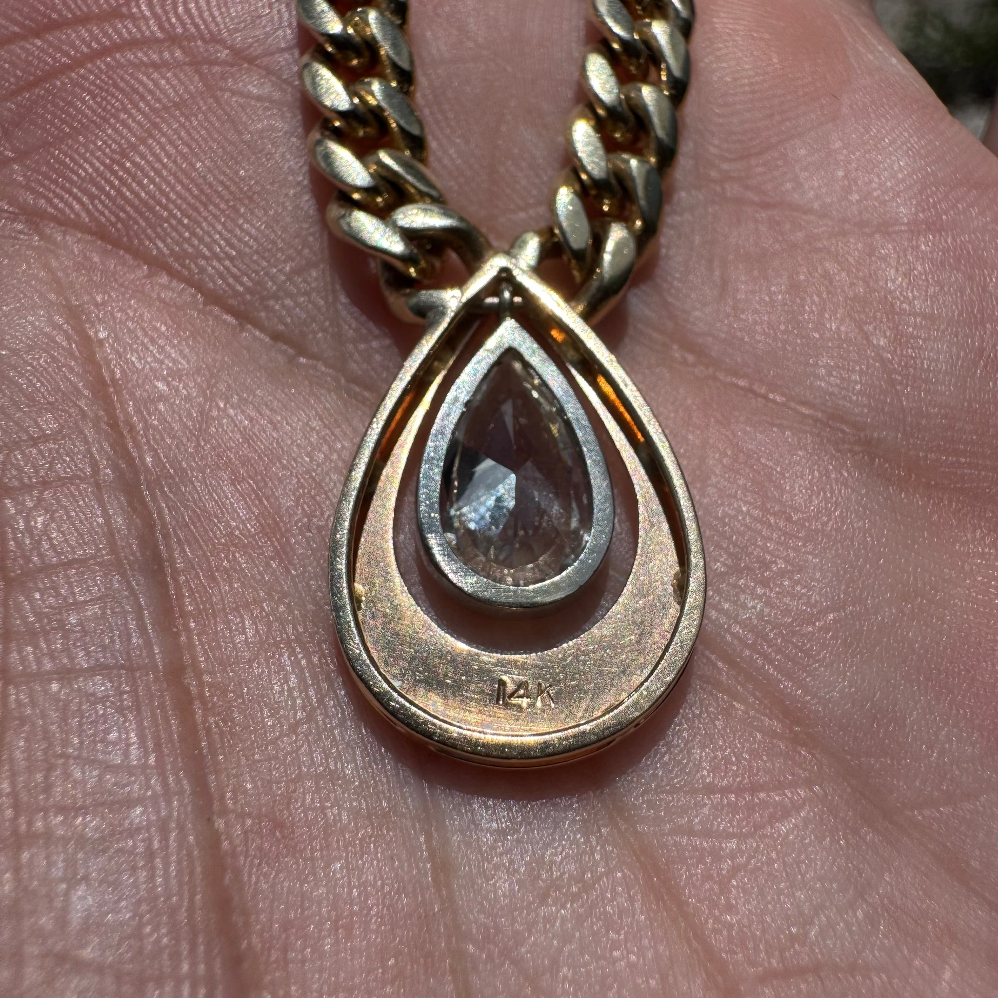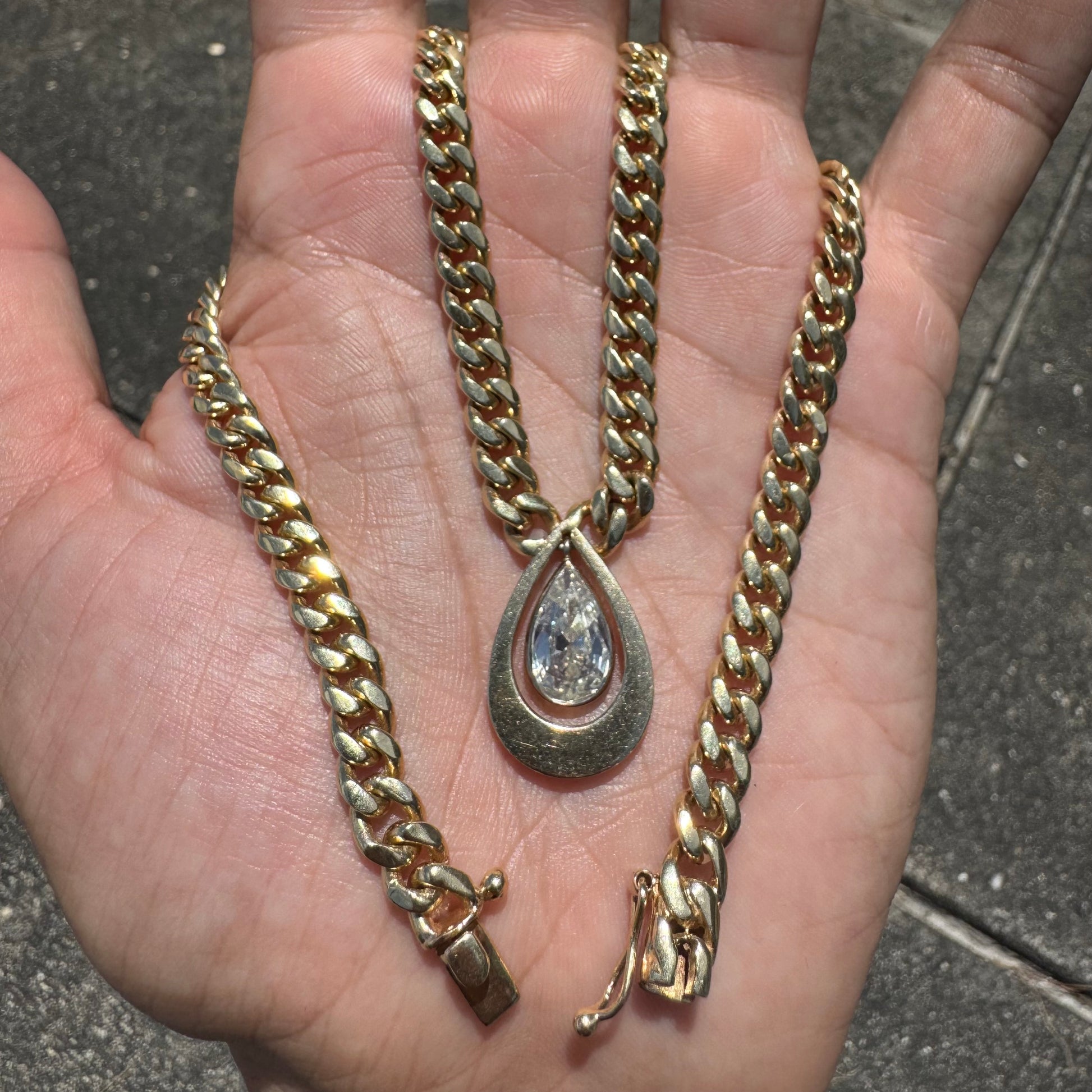 Vintage 1.78ct Natural Pear Cut Diamond Solitaire Solid 14k Yellow Gold Heavyweight Cuban Link Necklace (16”)