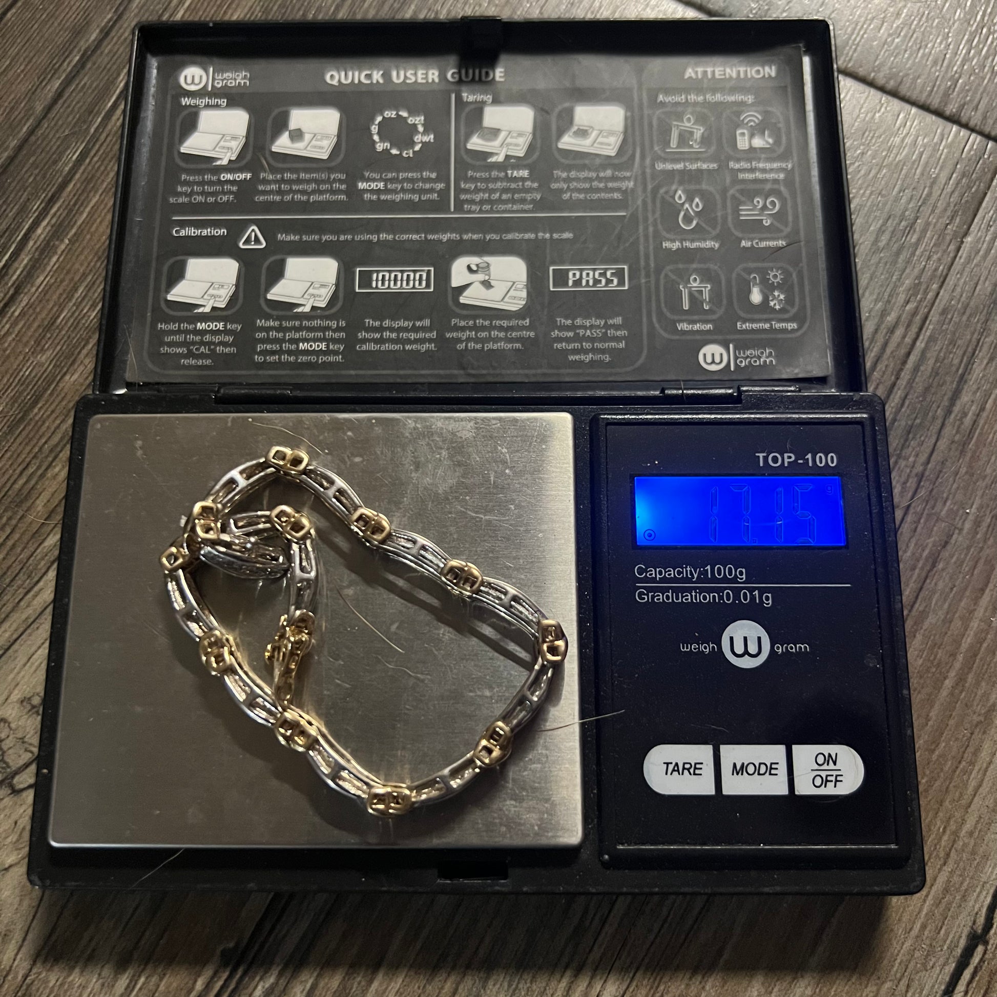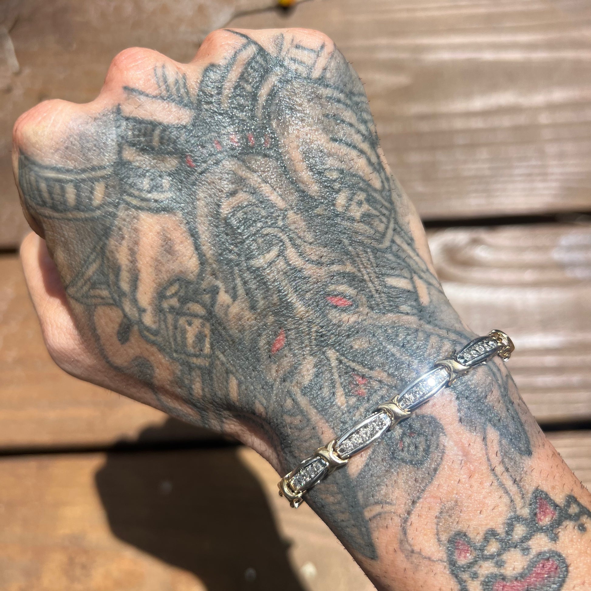 60 SI quality natural diamonds approximately .04ct each channel set inside this heavyweight two-tone 10k yellow and white gold bracelet. 7.5” long by 6MM in width and weighing 17.2g.