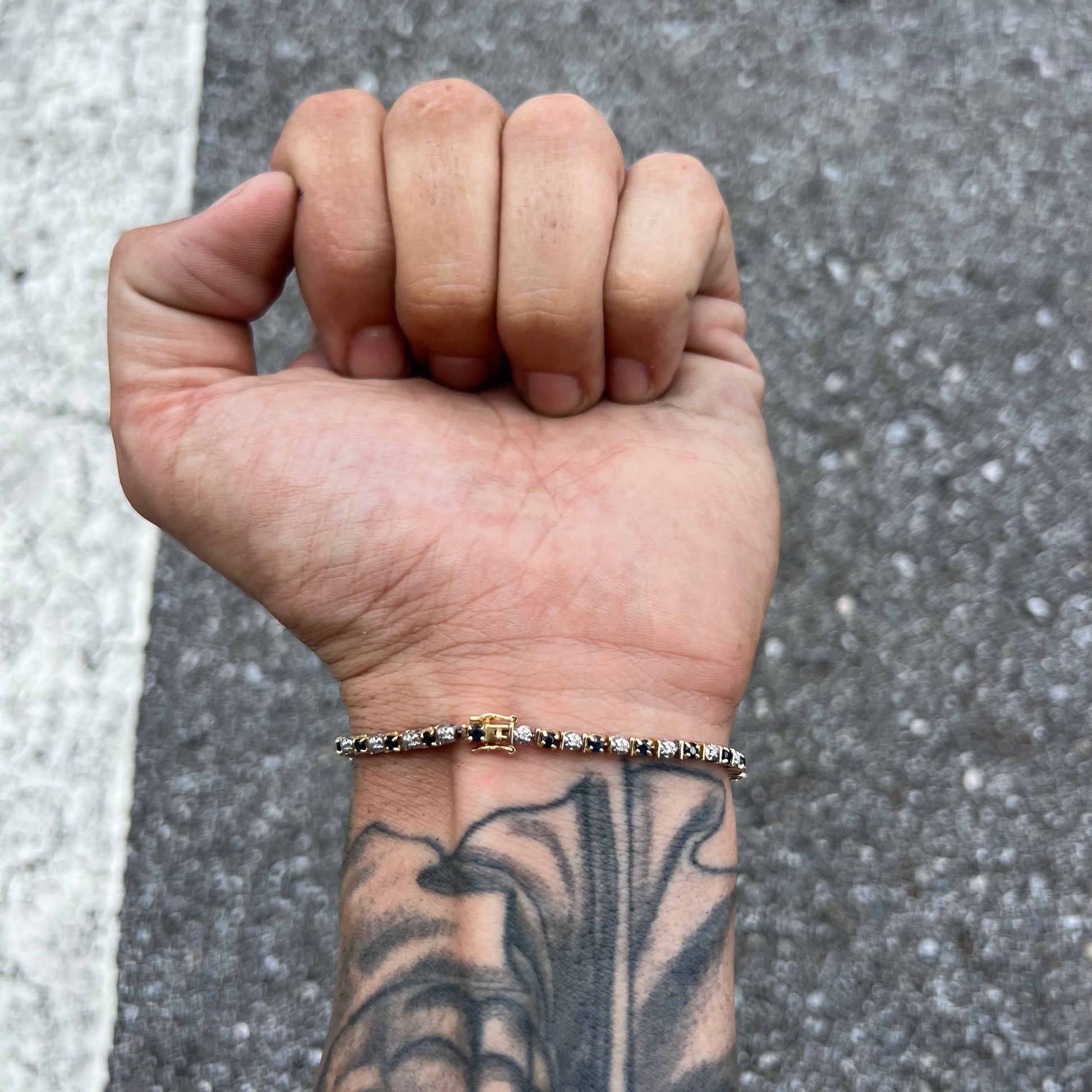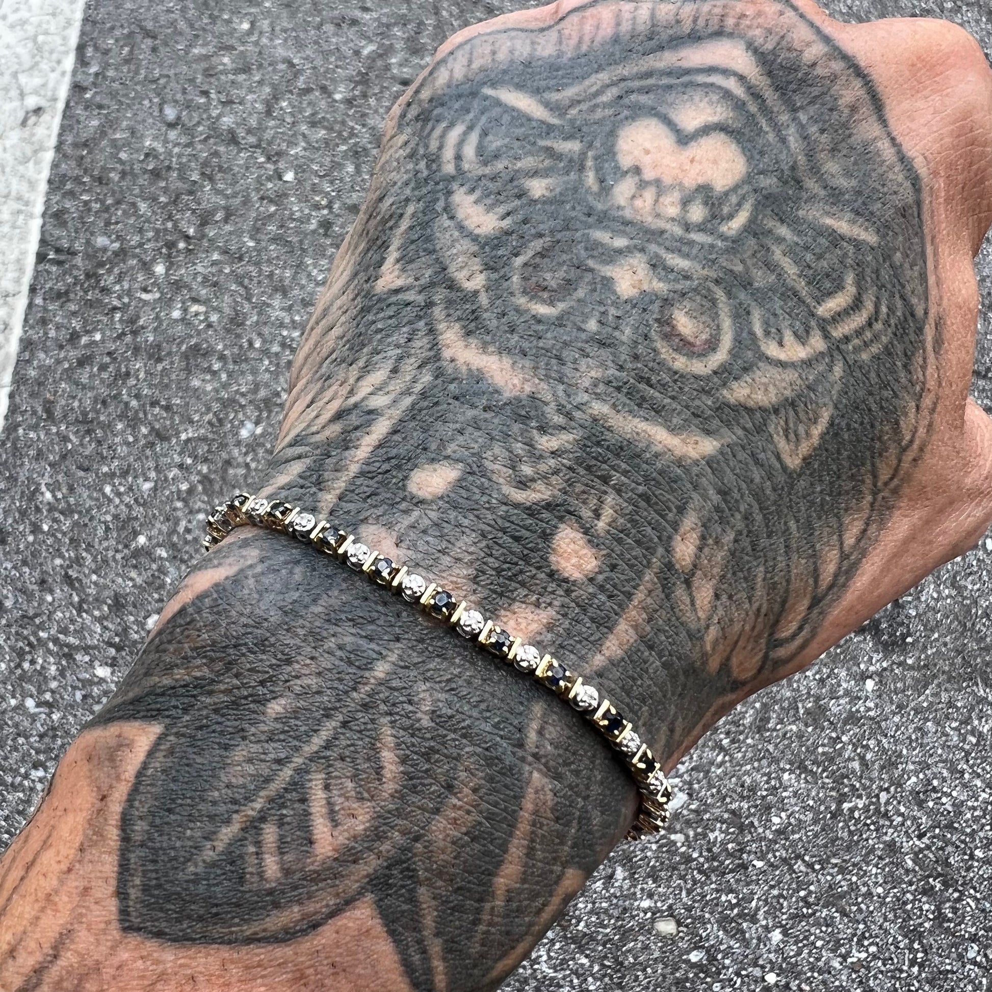 Vintage 14k Natural Diamond And Sapphire Tennis Bracelet