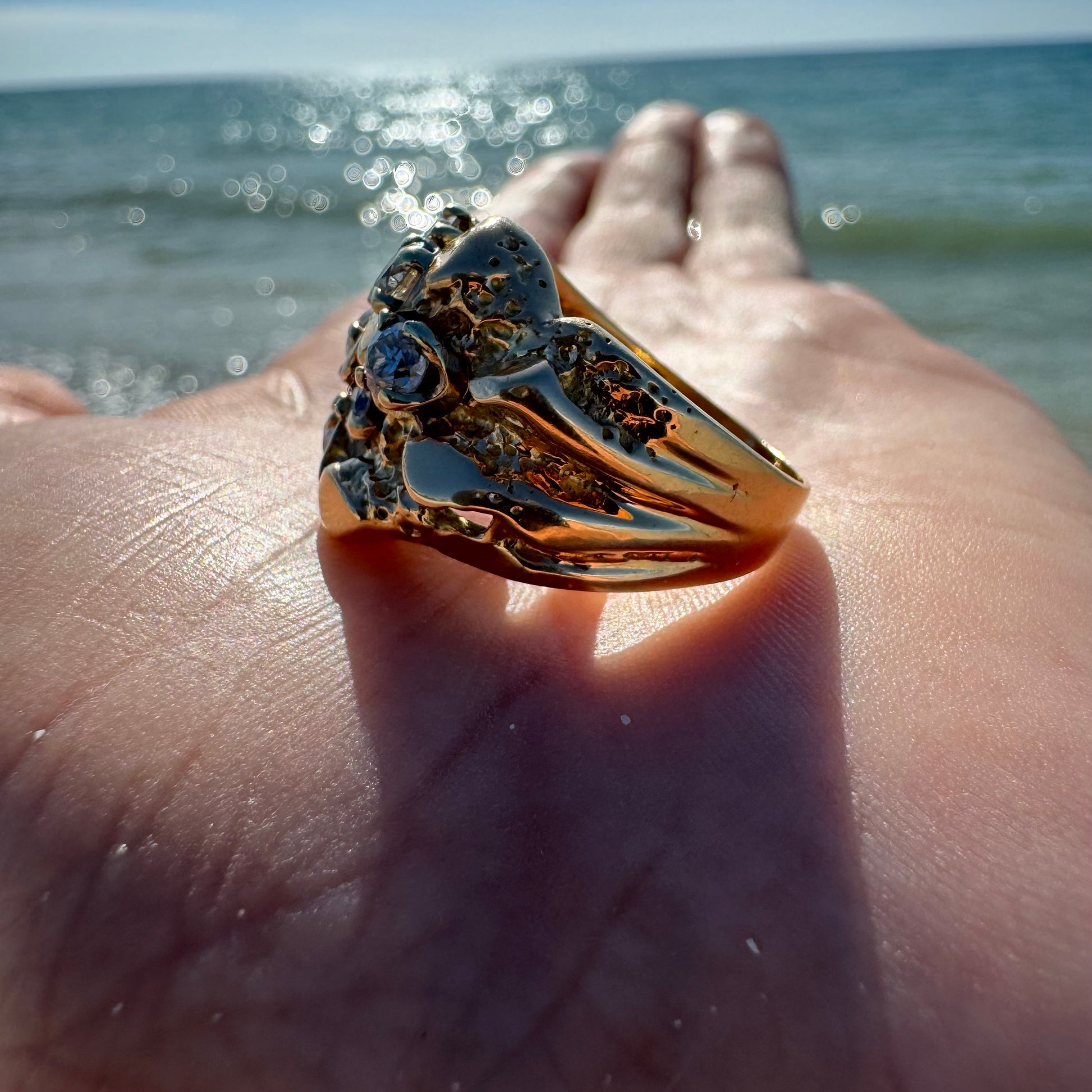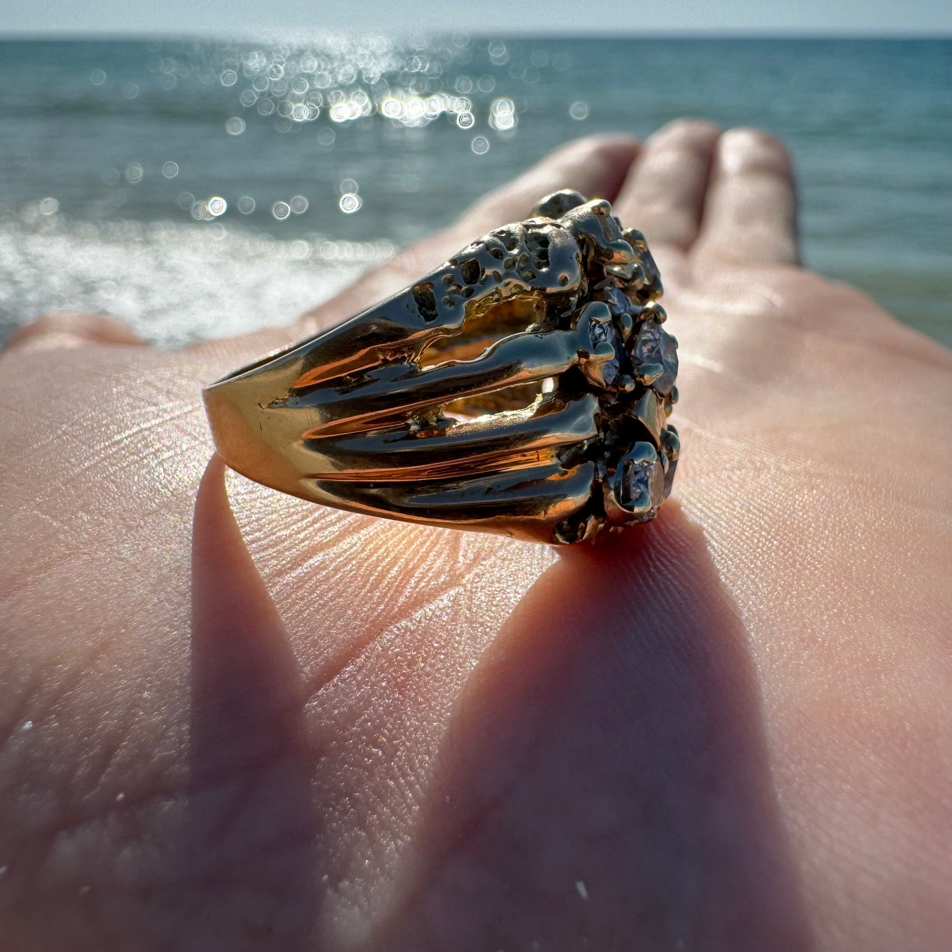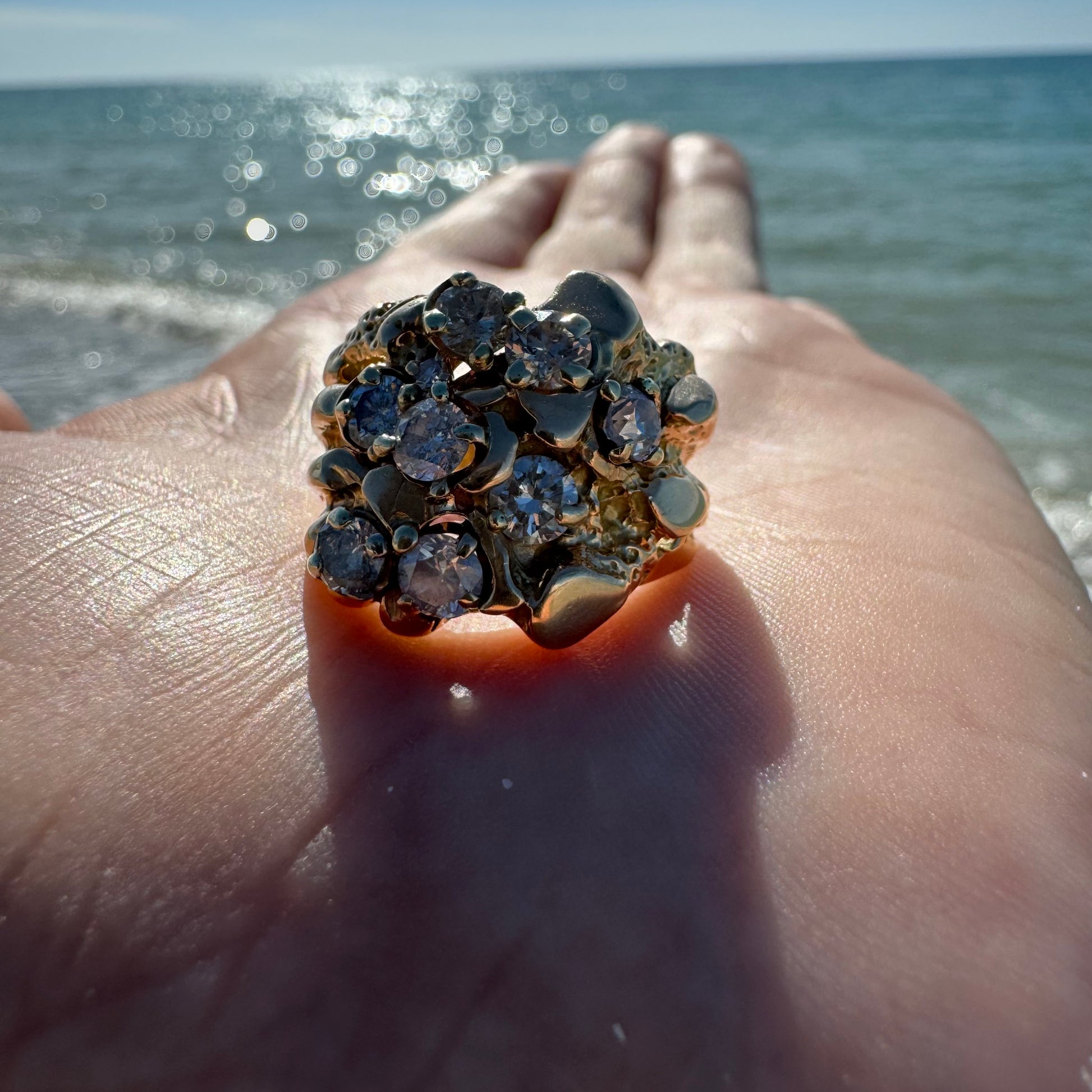 Vintage 14k Yellow Gold 2.0CTW Natural Diamond Nugget Cluster Ring (9.5)