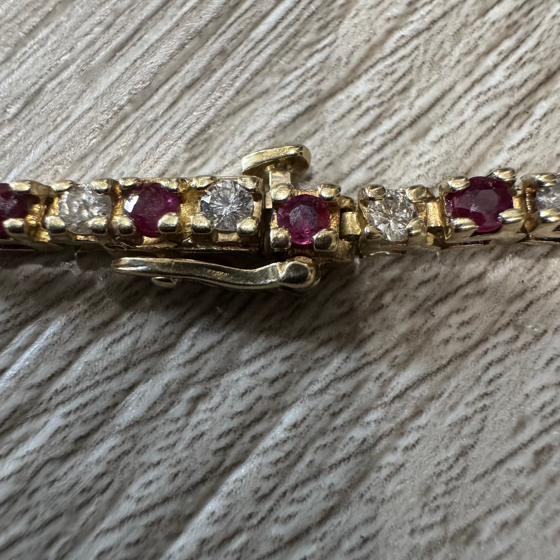 Vintage 14k Yellow Gold 2.5ctw Natural Diamond And Ruby Classic Tennis Bracelet (7.75”)