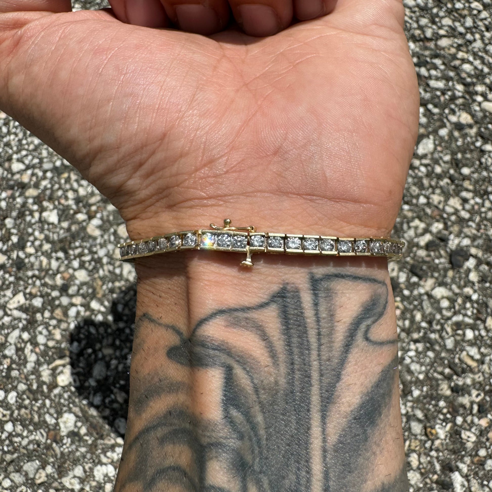 Vintage 14k Yellow Gold 4.0CTW Natural Channel Set Diamond Tennis Bracelet (8.25”)