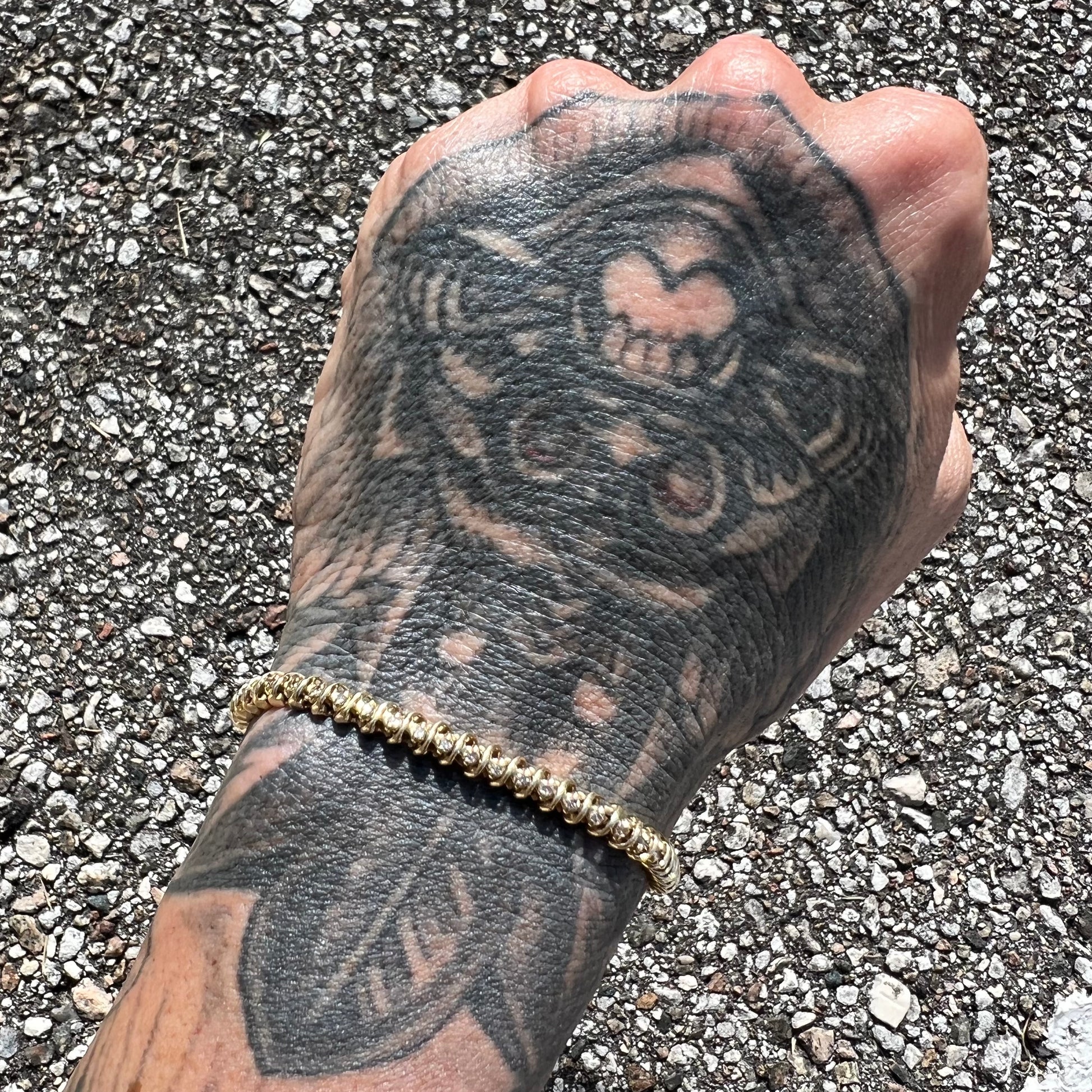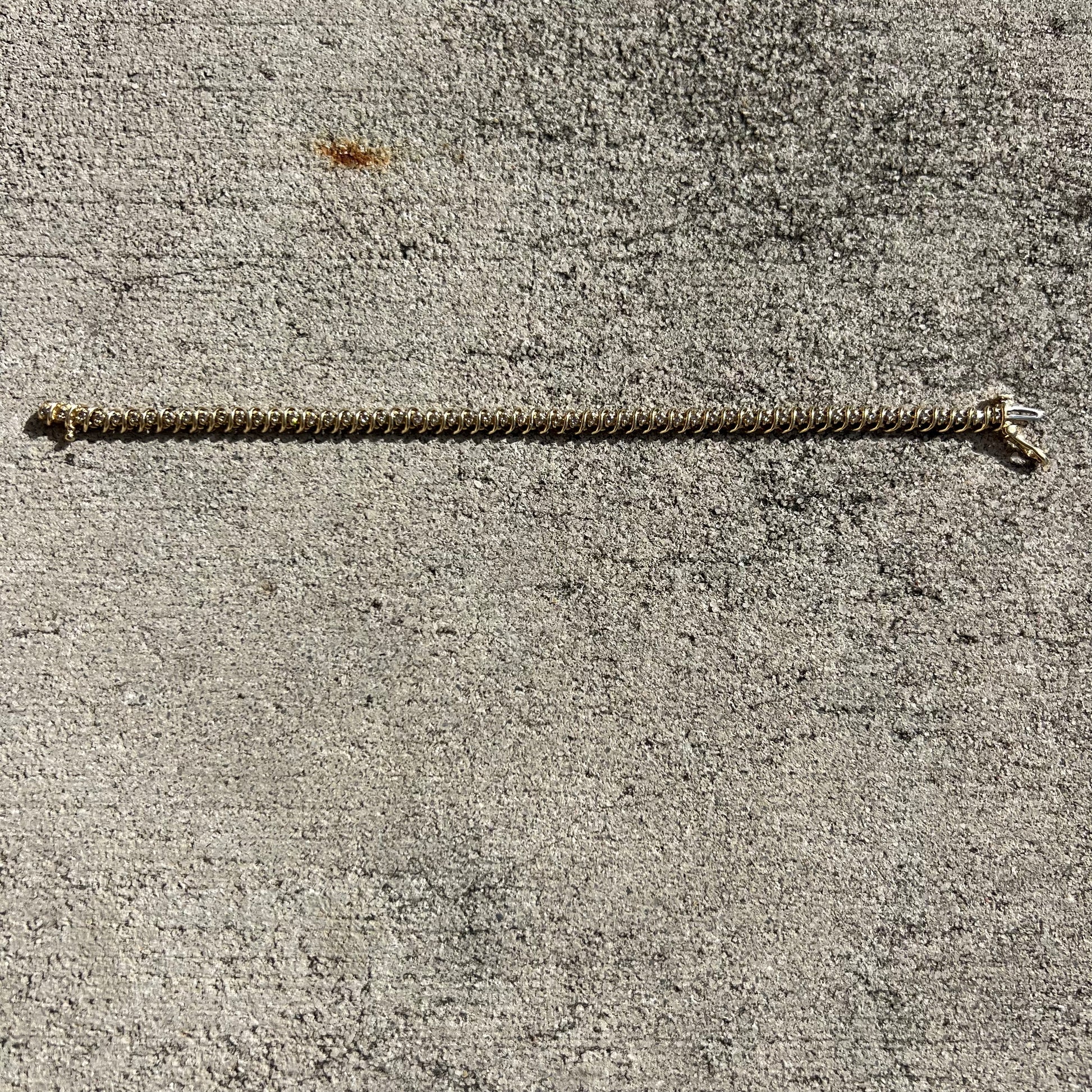Nice and chunky classic solid 14k tennis bracelet consisting of just over 1.0CTW of 55 clean natural diamonds all with excellent color and clarity to them giving off an excellent luster despite them not being large sized diamonds. This bracelet was made with quality as the number one thought, each link pivots and interlocks with one another giving malleable movement with the wrist as you move around through the day. Solid at just under 12.5g with a wearable length of just over 7” and 5MM thick.
