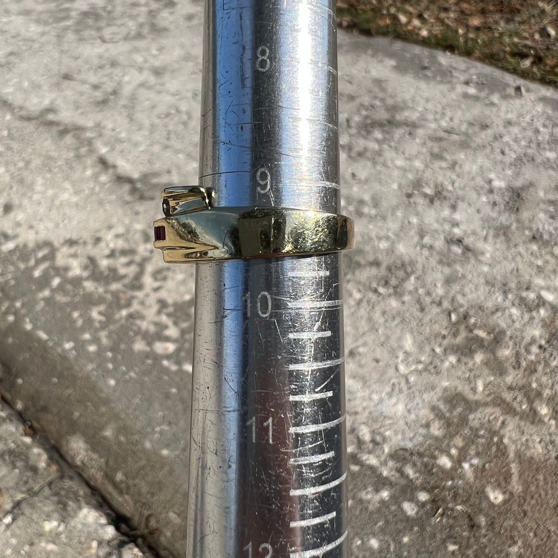 Vintage 14k Yellow Gold Modernist Style Natural Ruby And Diamond Ring (9.5)