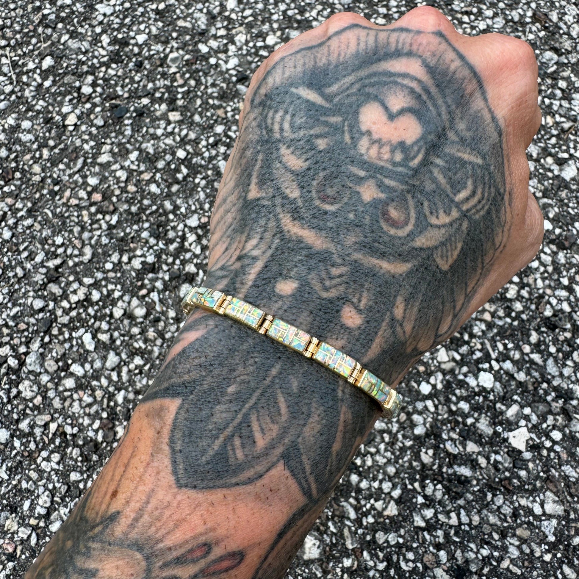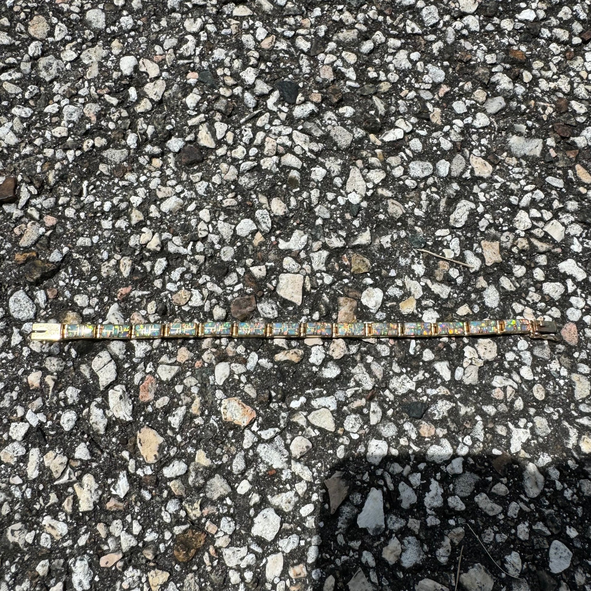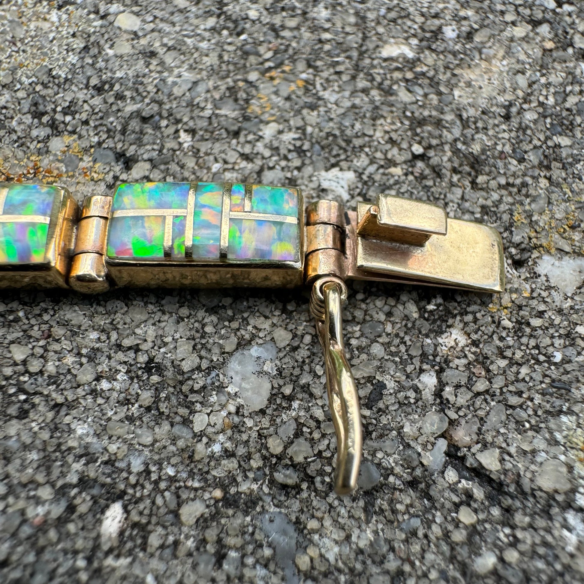 Vintage 14k Yellow Gold Mosaic Cut Opal Inlaid Bracelet (7.25”)