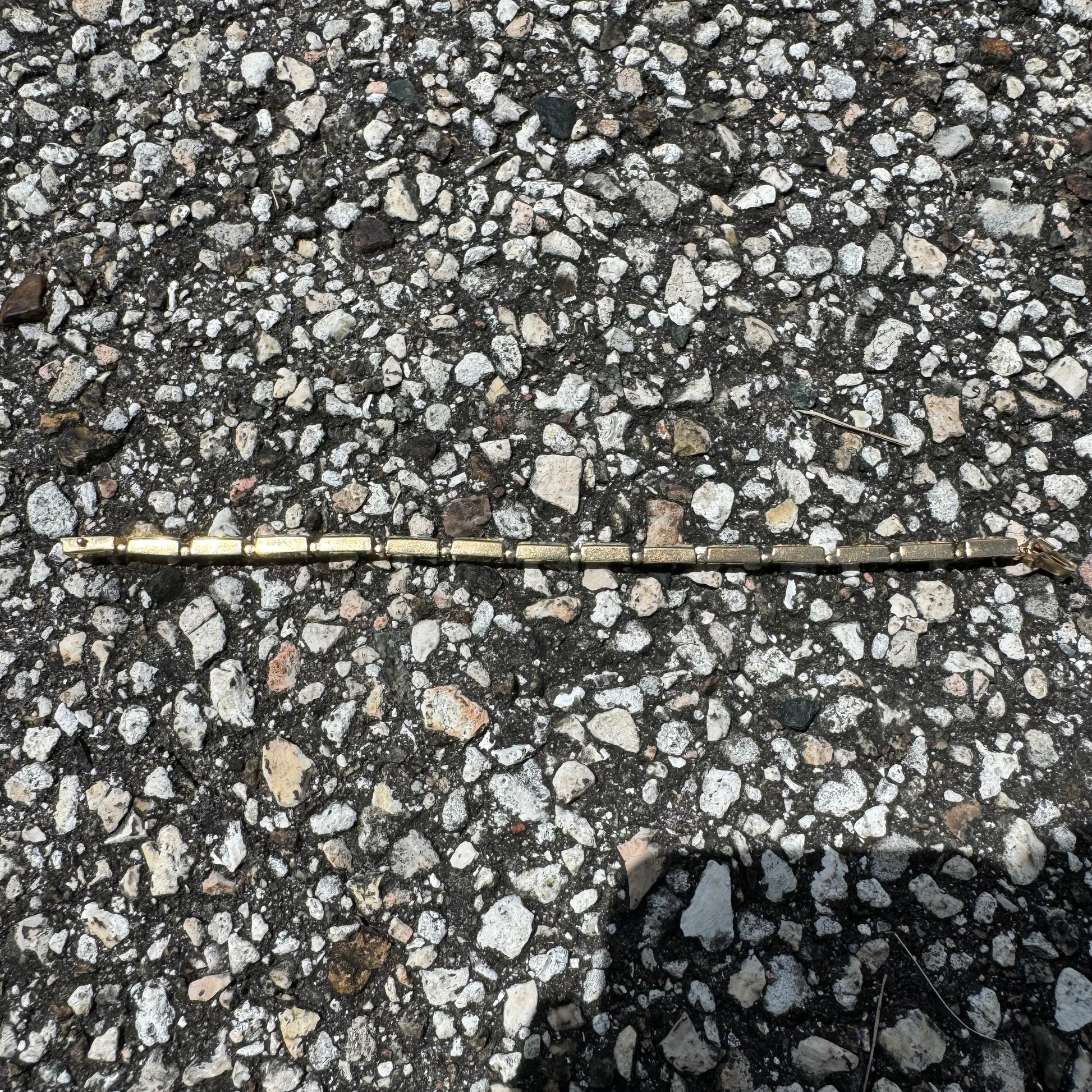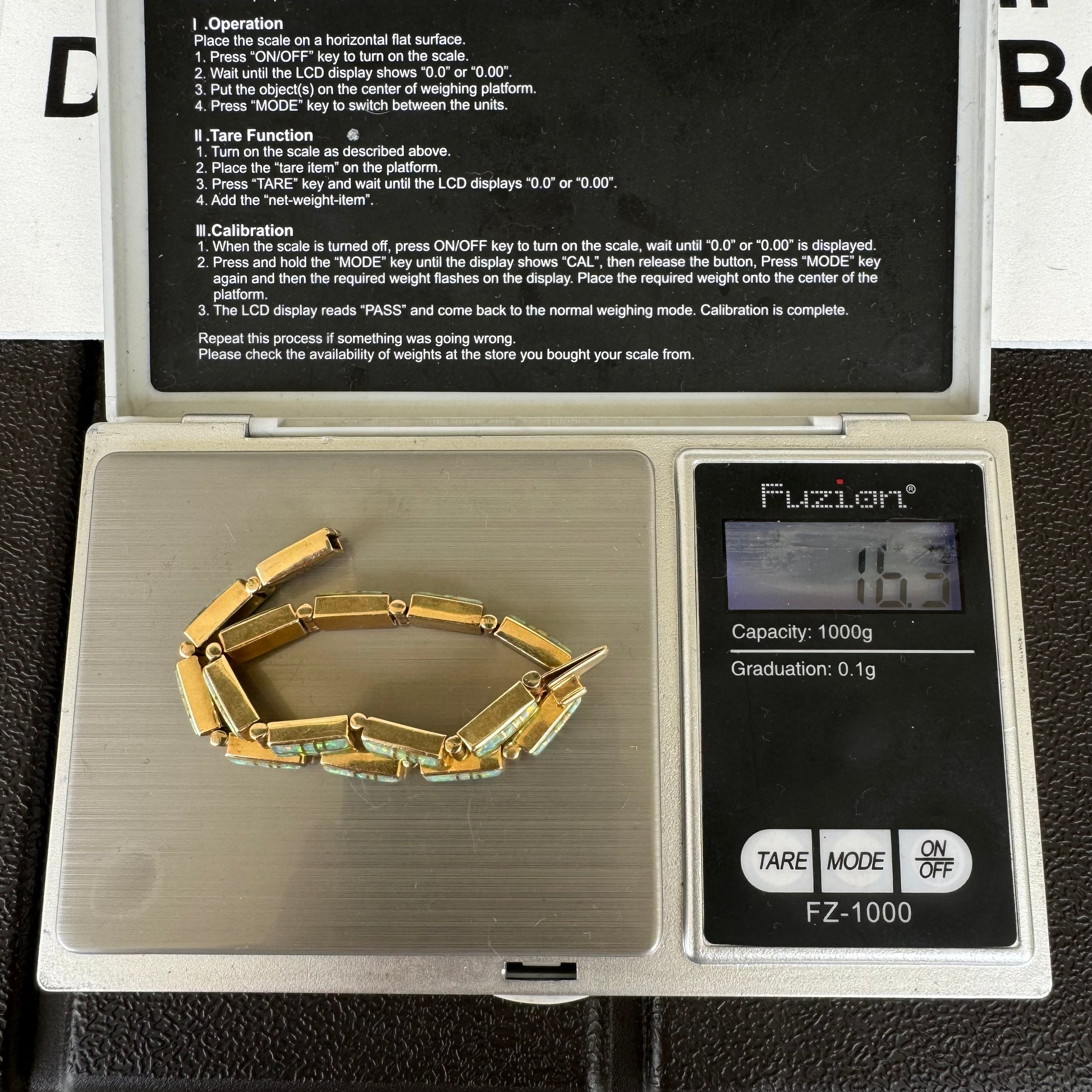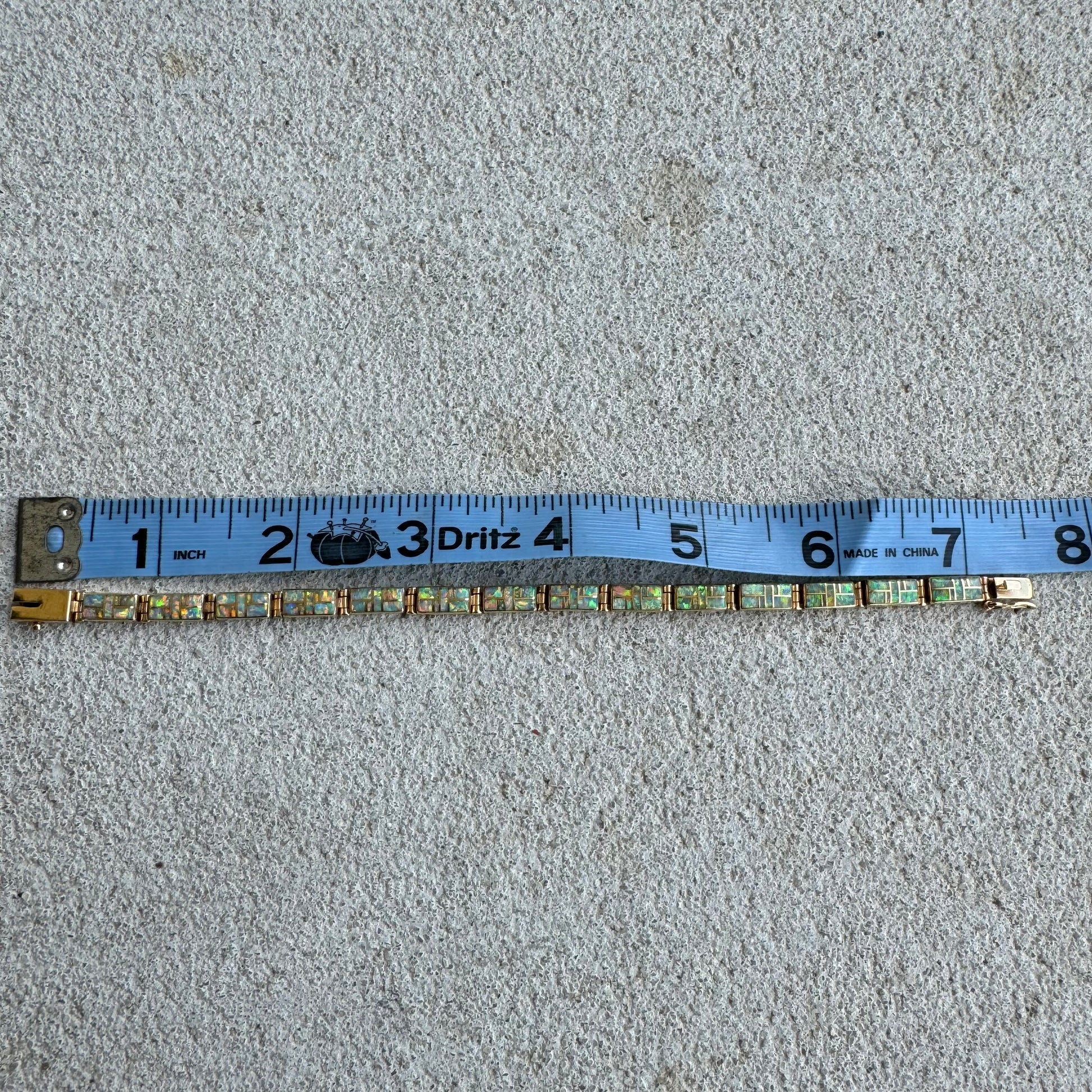 Vintage 14k Yellow Gold Mosaic Cut Opal Inlaid Bracelet (7.25”)