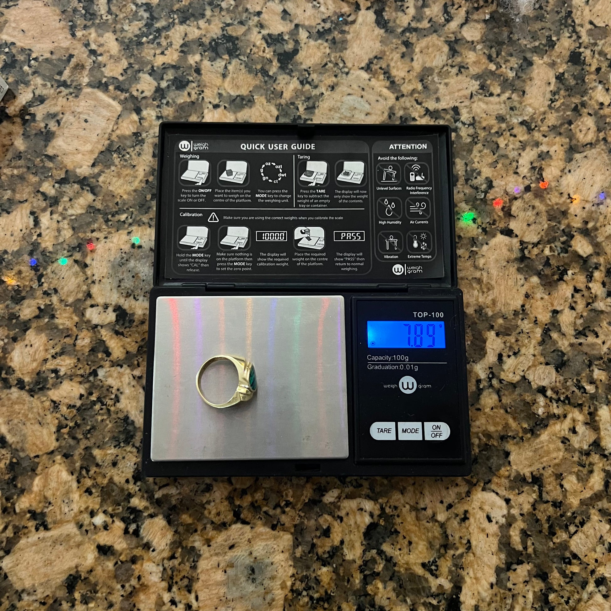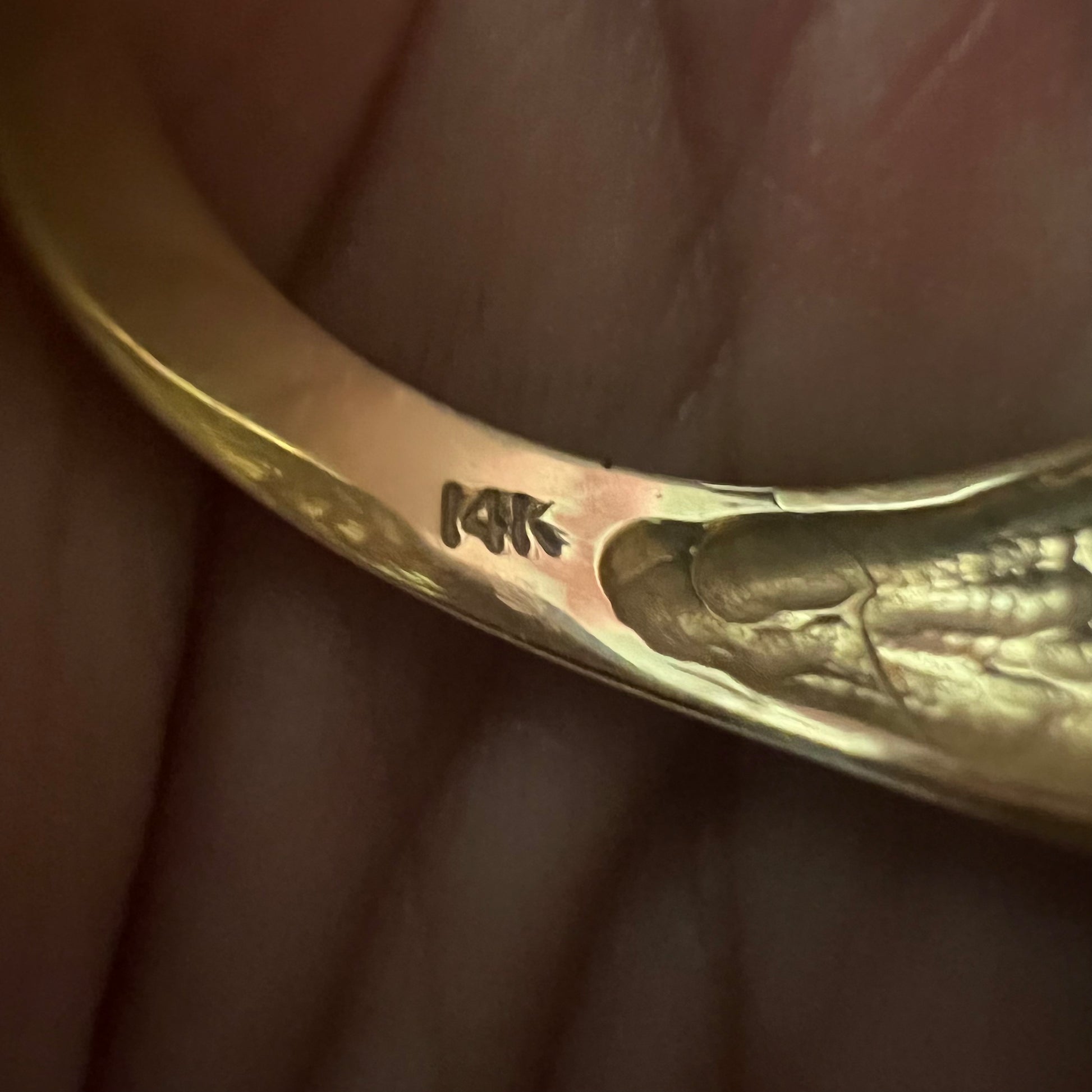 Vintage 14k Yellow Gold Opal Inlaid Modernist Ring (7.25)