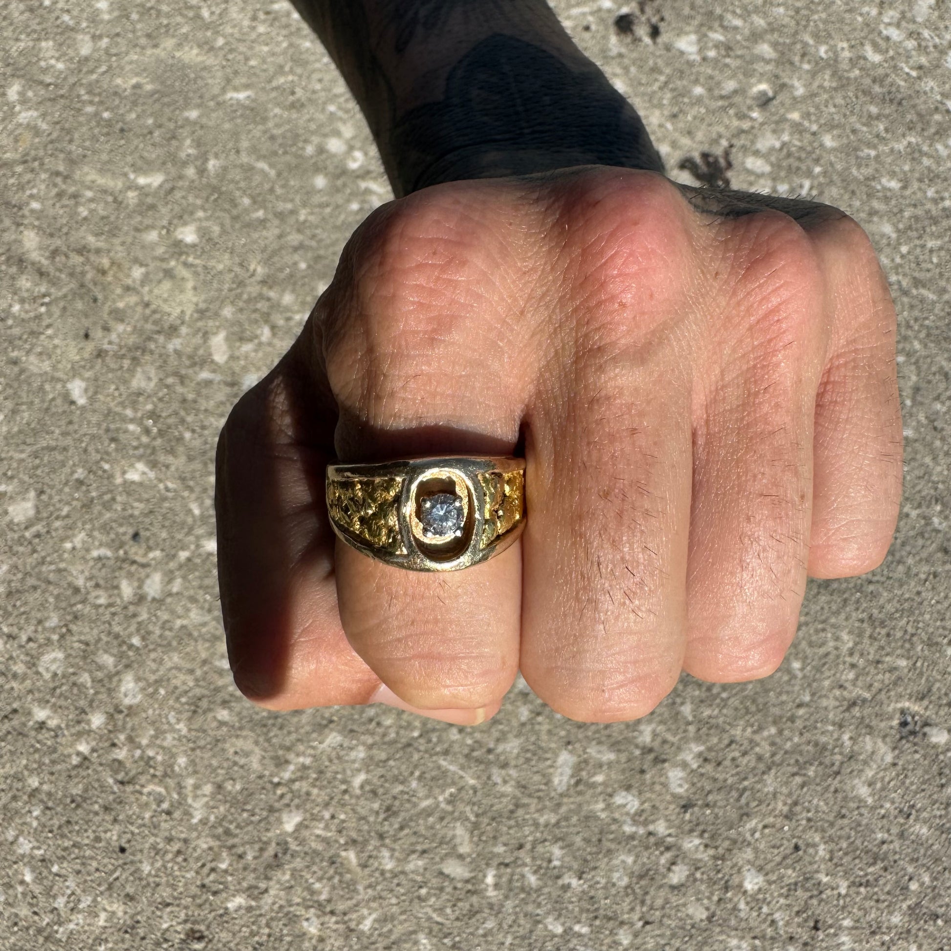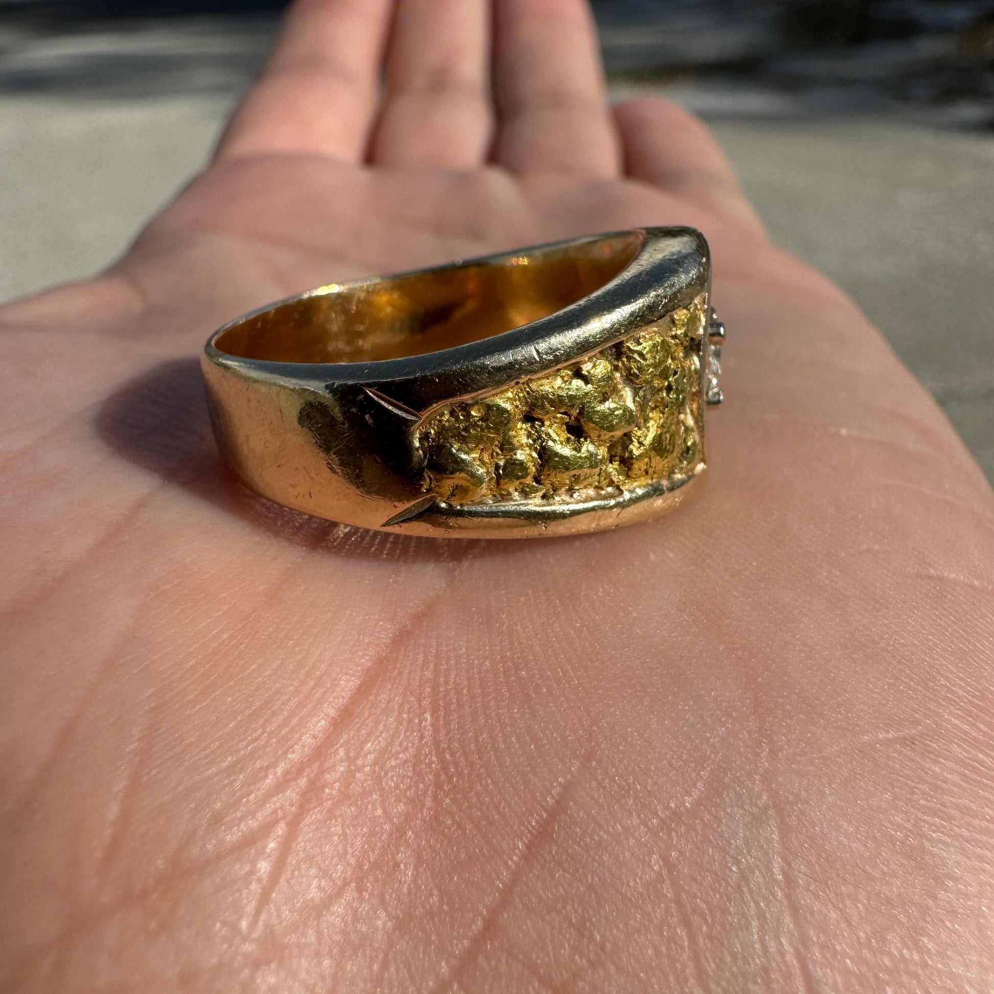 Vintage 14k Yellow Gold Raw 24k Nugget Inlaid .50Ct Natural Diamond Ring (11.5)