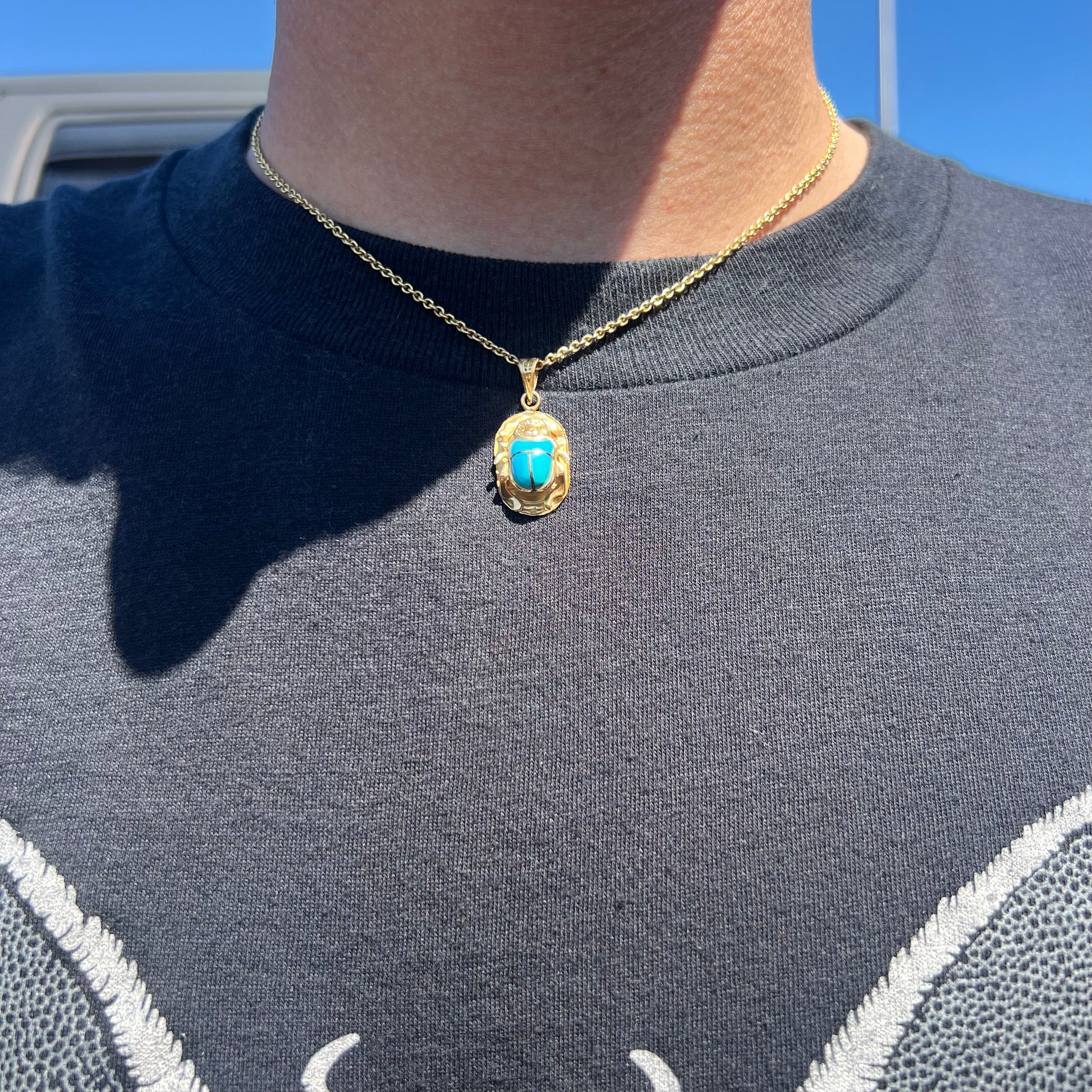 Egyptian hallmarked with beautiful glow to the gold and natural turquoise. Inscription of the scarab beetle on reverse side of pendant. *Necklace Not Included*