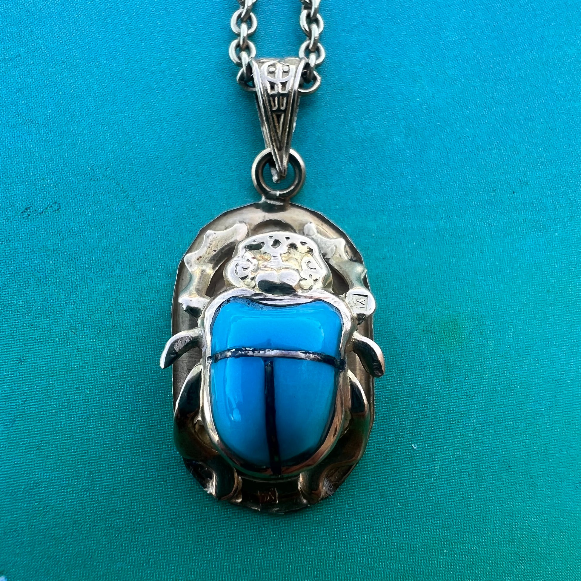 Vintage 18k Turquoise Egyptian Hallmarked Scarab Beetle Pendant