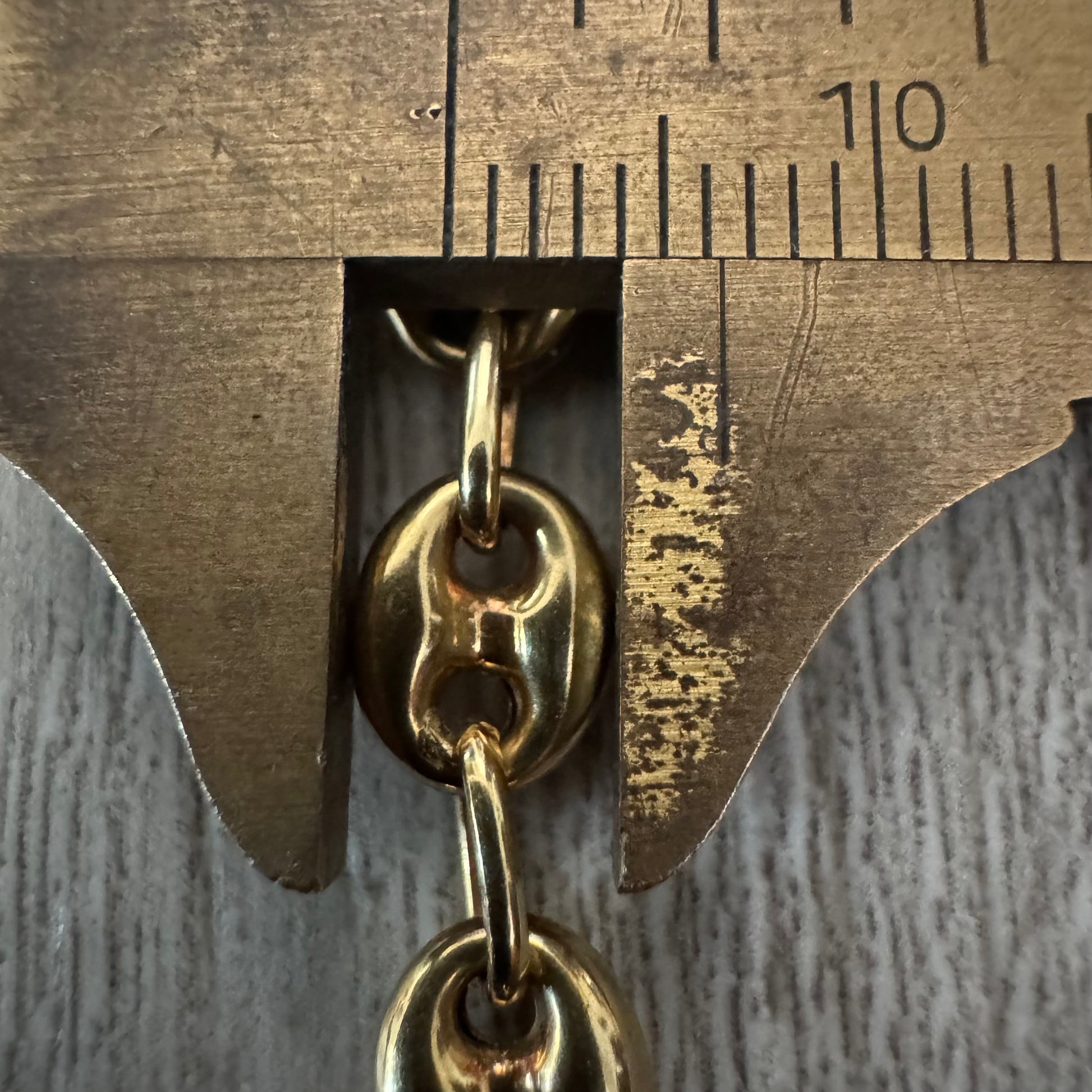 Vibrant and buttery 18k yellow gold, just what you would want and expect from one of the most classic links, the puffed gucci mariner. This one has awesome features to it and deep cuts giving off a sleek yet chunky look reminiscent of that pillow like thickness. Measuring approximately 17” by 6mm wide and 20.07g this chain has a thick heavy gauge with lots of substance.