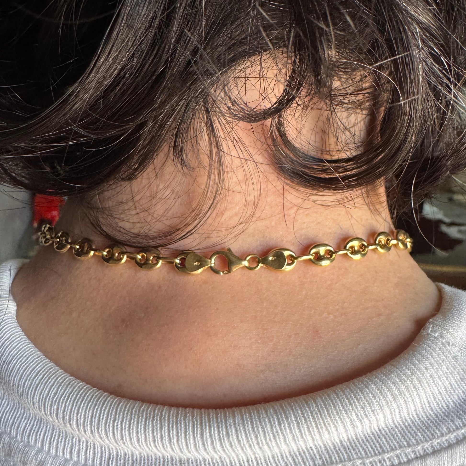 Vintage 18k Yellow Gold Classic Chunky Puffed Gucci Mariner Link Necklace (17”)