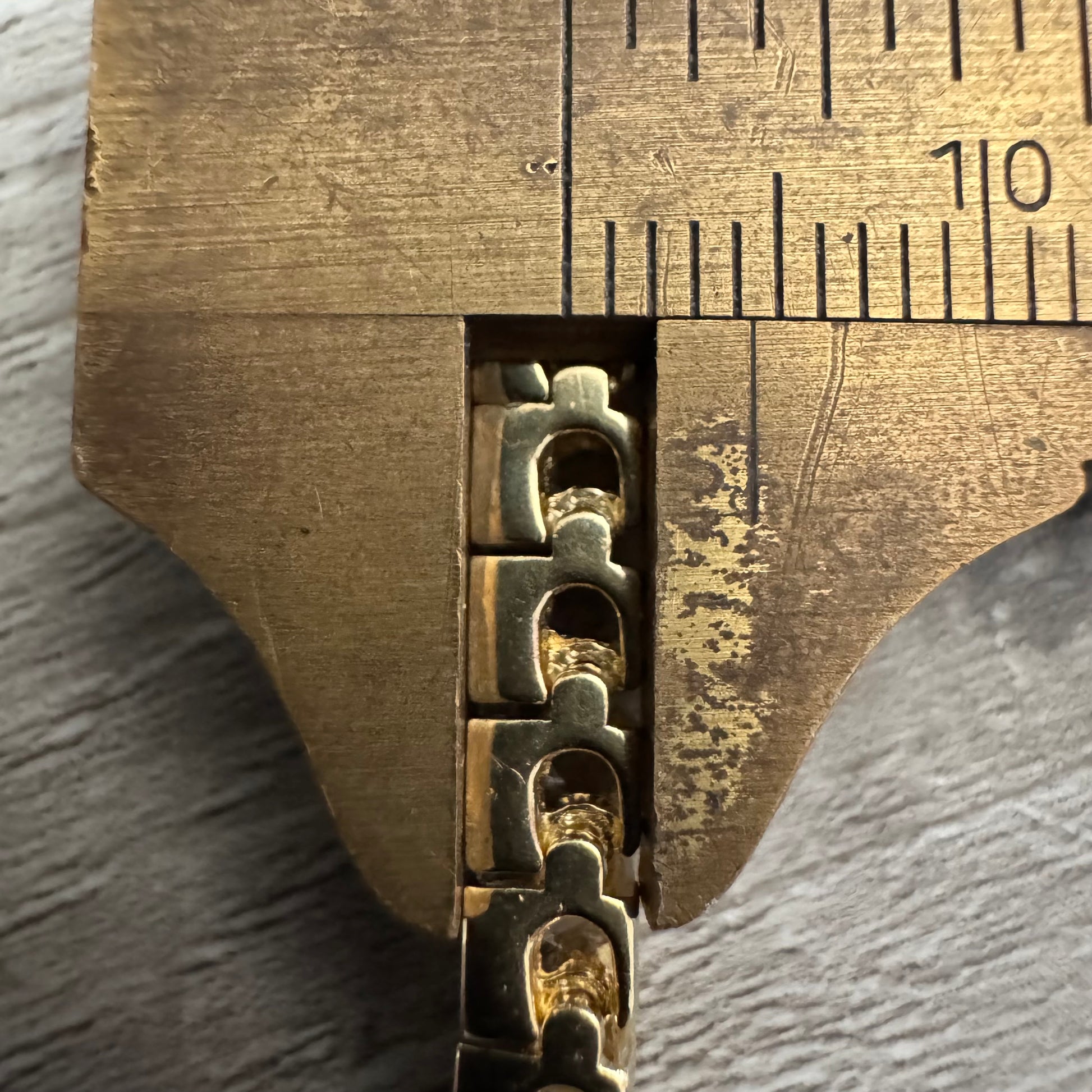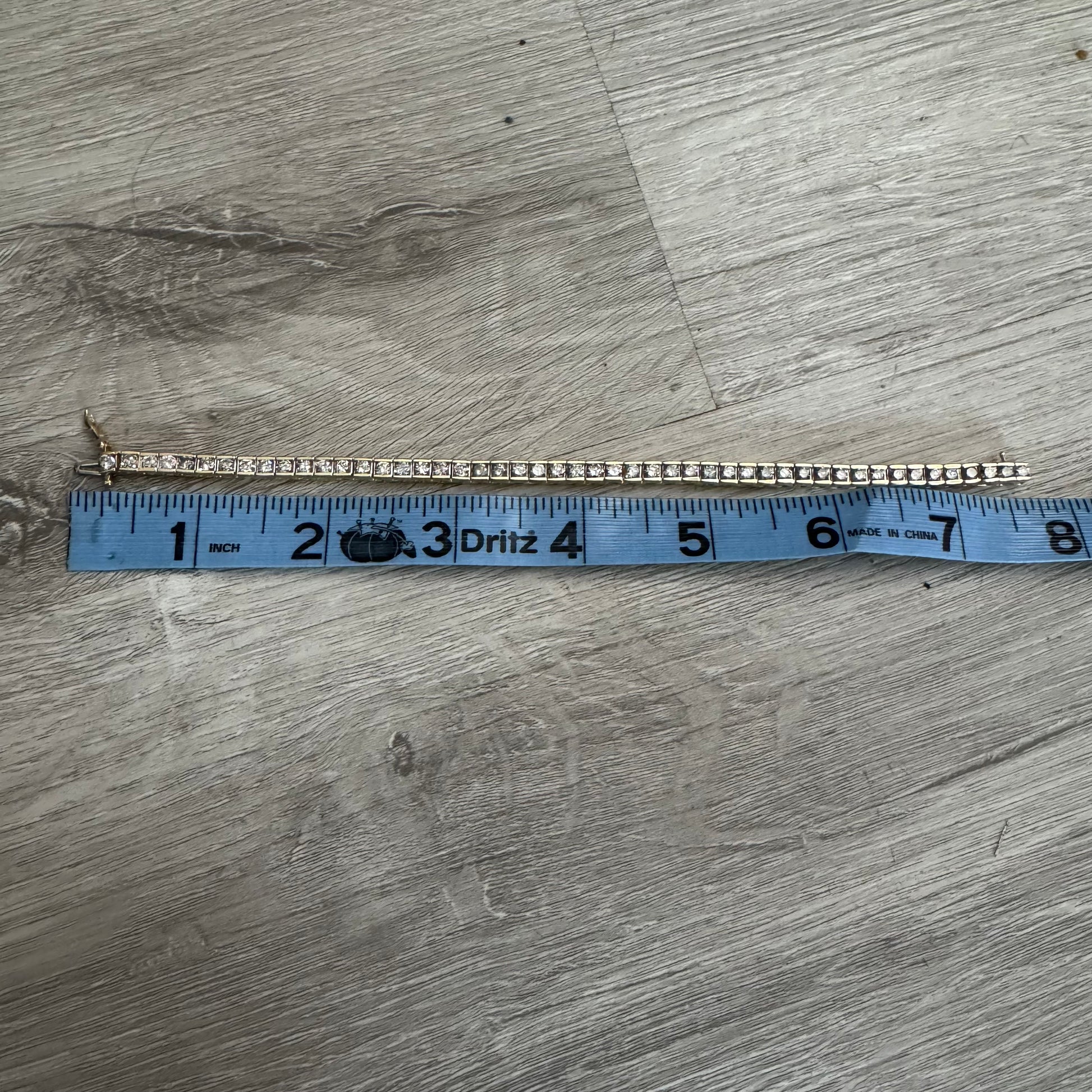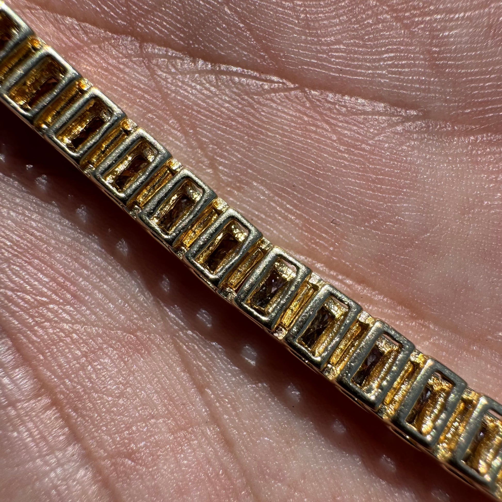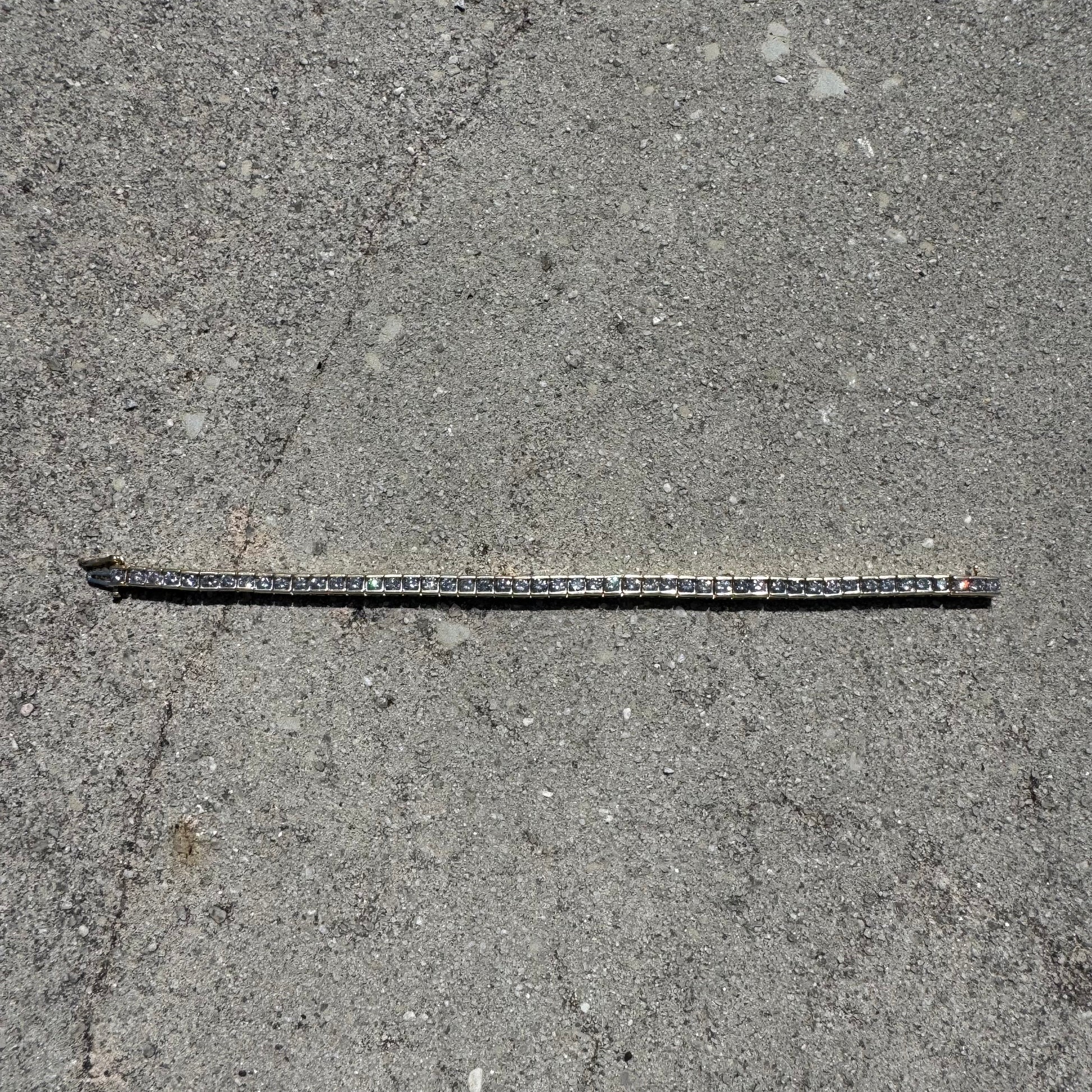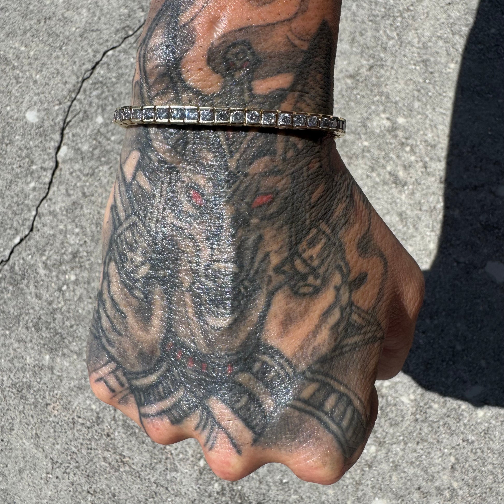 I must start out by saying these picture do absolutely no justice to how beautiful this bracelet is in person. To be quite frank the pictures I took suck and it was 100 degrees out so I did it very quickly. Now with all of that being said this one is an absolute stunner, In the sun and on the wrist it looks like a disco ball in full effect. With 49 natural diamonds all at approximately .15ct each this pretty lady jumps up to a total of approximately 7.0CTW. Crafted out of a heavy and high quality 14k yellow gold channel set vertebrae style bracelet setting weighing a heavyweight of 20.52g by 4.5mm wide and a wearable length of 7.35”. Very comfortable and form fitting the bracelet forms to your wrist and moves with your movement just like the vertebrae in your spine would. If you look close at the back and side construction of the bracelet you’ll see exactly the analogy I mean. This is an insane deal on an amazing piece. If sold at at any retail jewelery establishment they would be asking around $10000 for this exact bracelet.