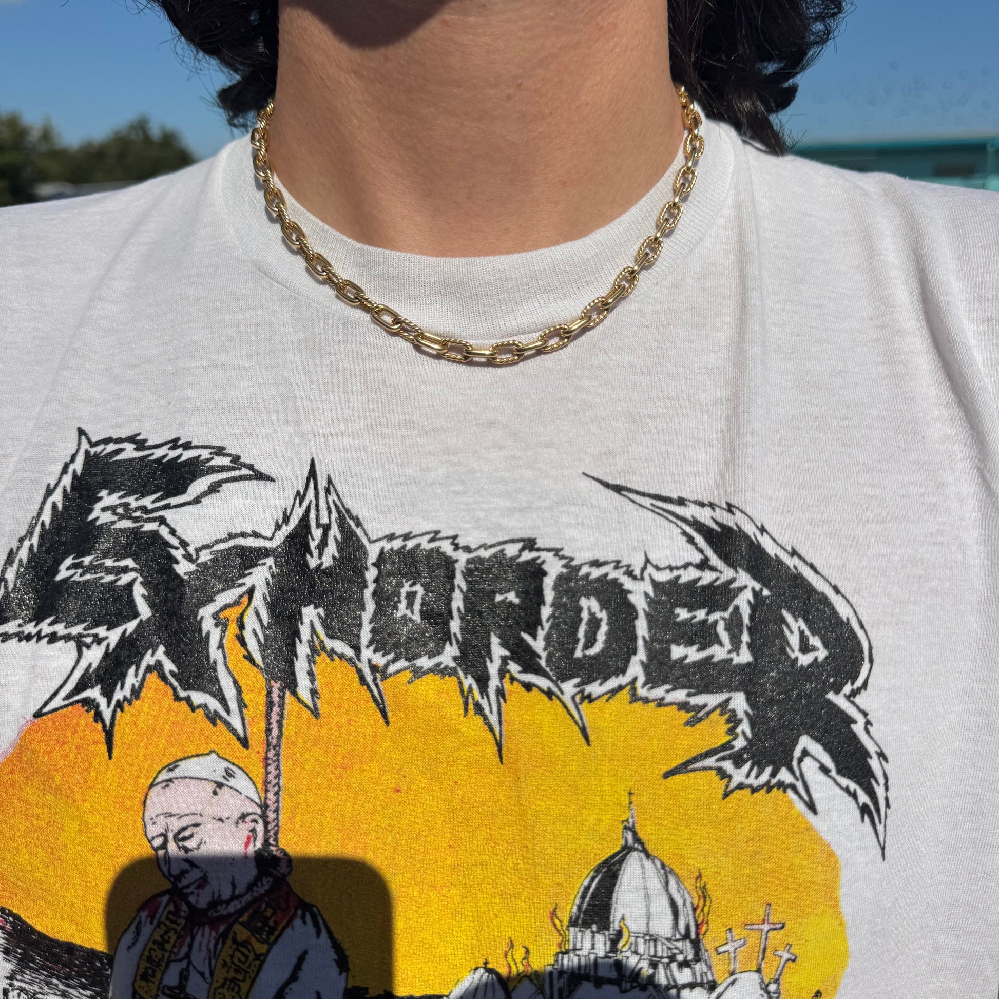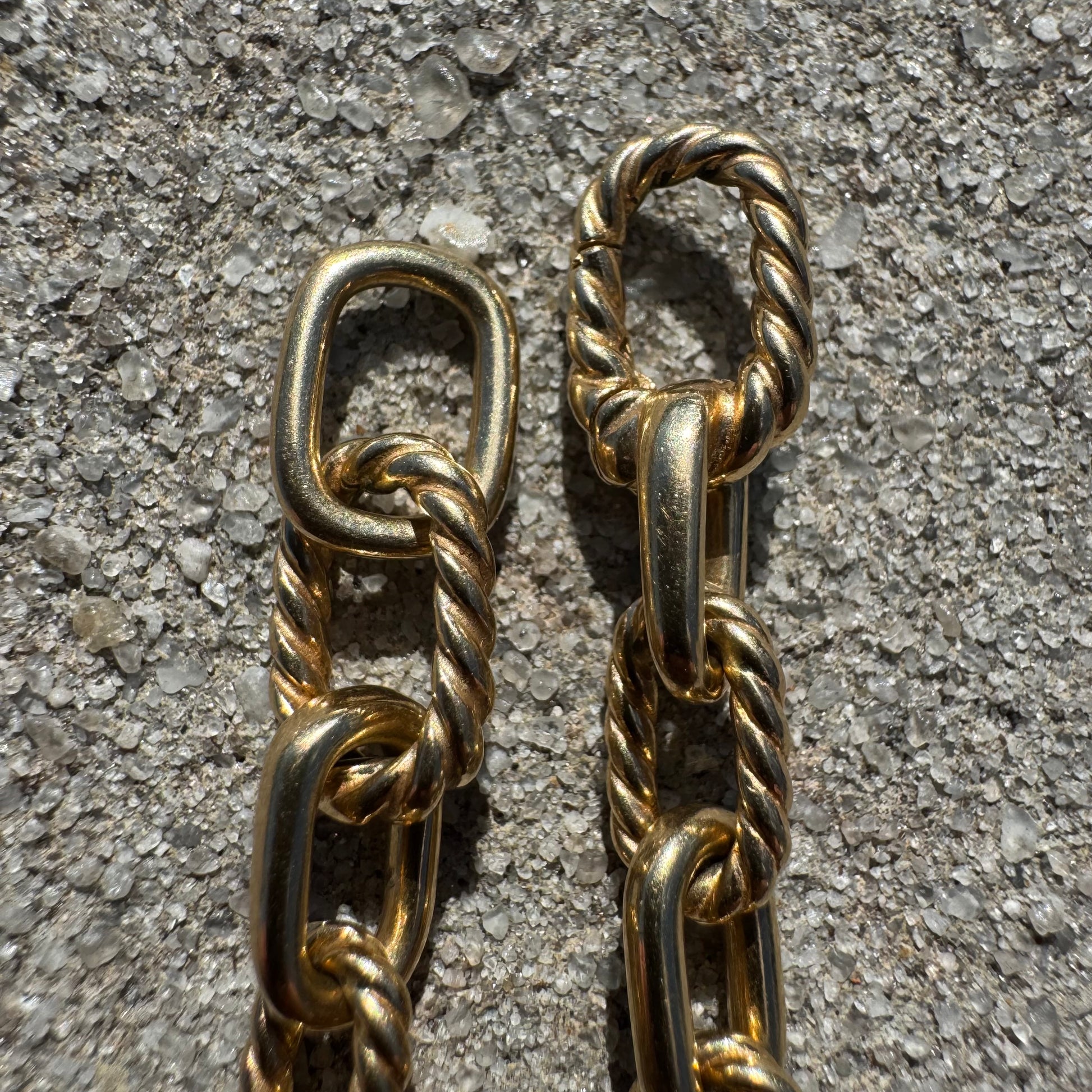 The infamous “Madison” chain necklace by one of the world’s most prestigious fine jewelery brands, David Yurman. Right now you can purchase this necklace on their website for $9800 or if you can find them on the secondary market they are selling for around $8000 on average. This is by far one of, if not, the best deal anywhere online for this piece. Crafted out of a solid heavyweight 18k yellow gold and measuring 18” wearable length by 6mm wide and an astounding 34.3g. The fierce yet elegant chain links resemble that of heavy duty metal chain except with every other link alternating from a flat high mirror polish to a braided cable. With a seamless eternity style clasp it appears as if there is no lock on the necklace due to its push-in style lobster clasp. This is by far the best necklace available on my site right now.