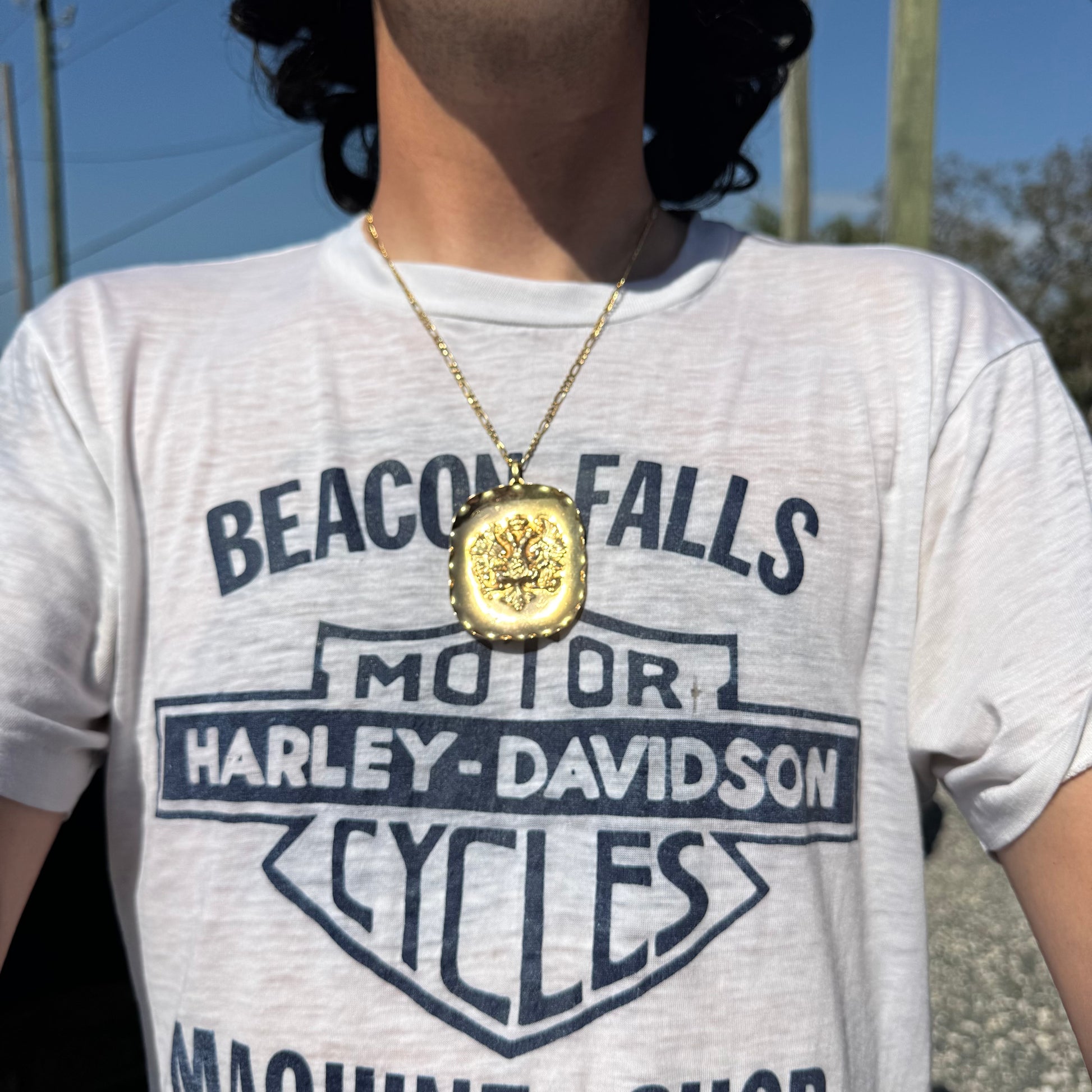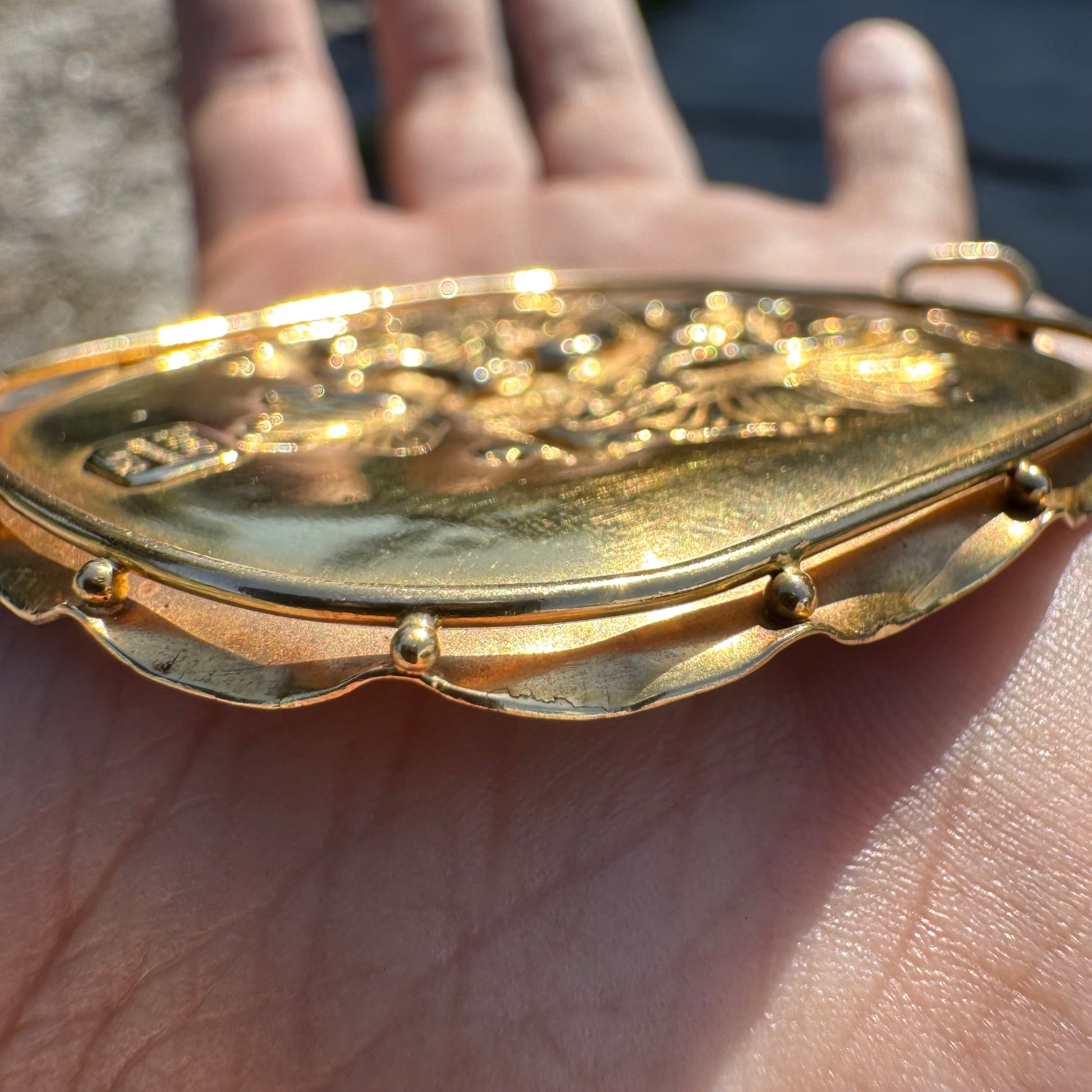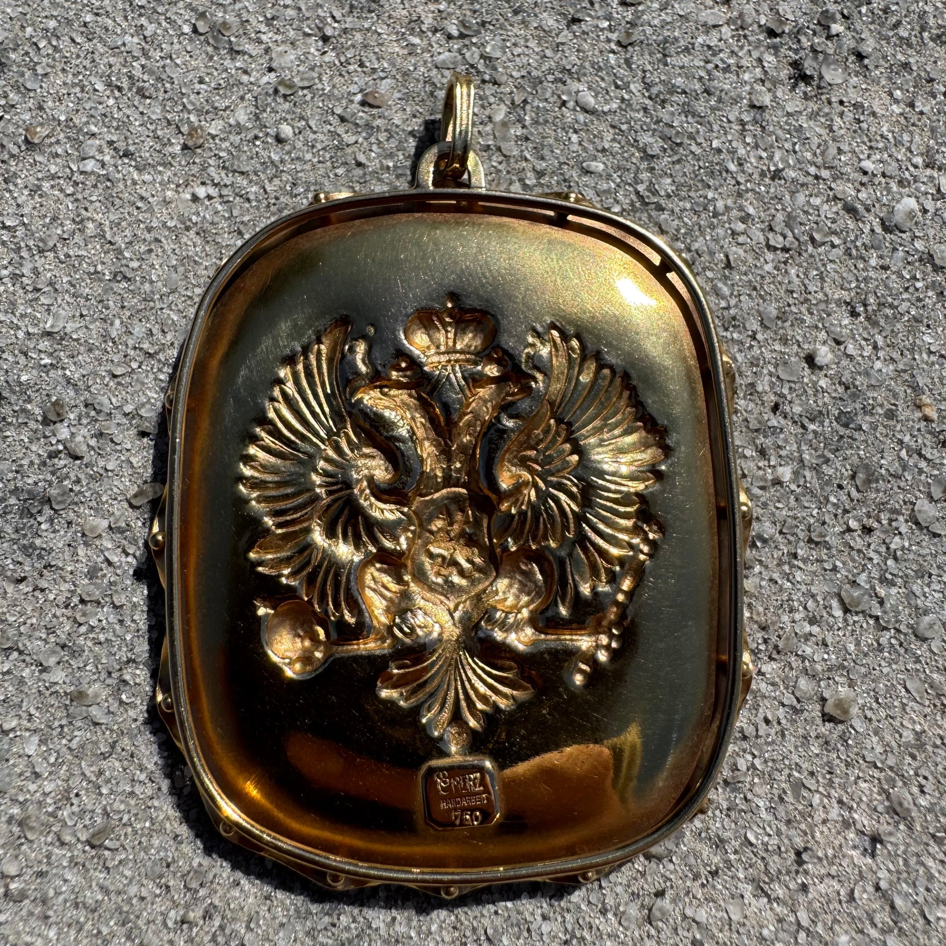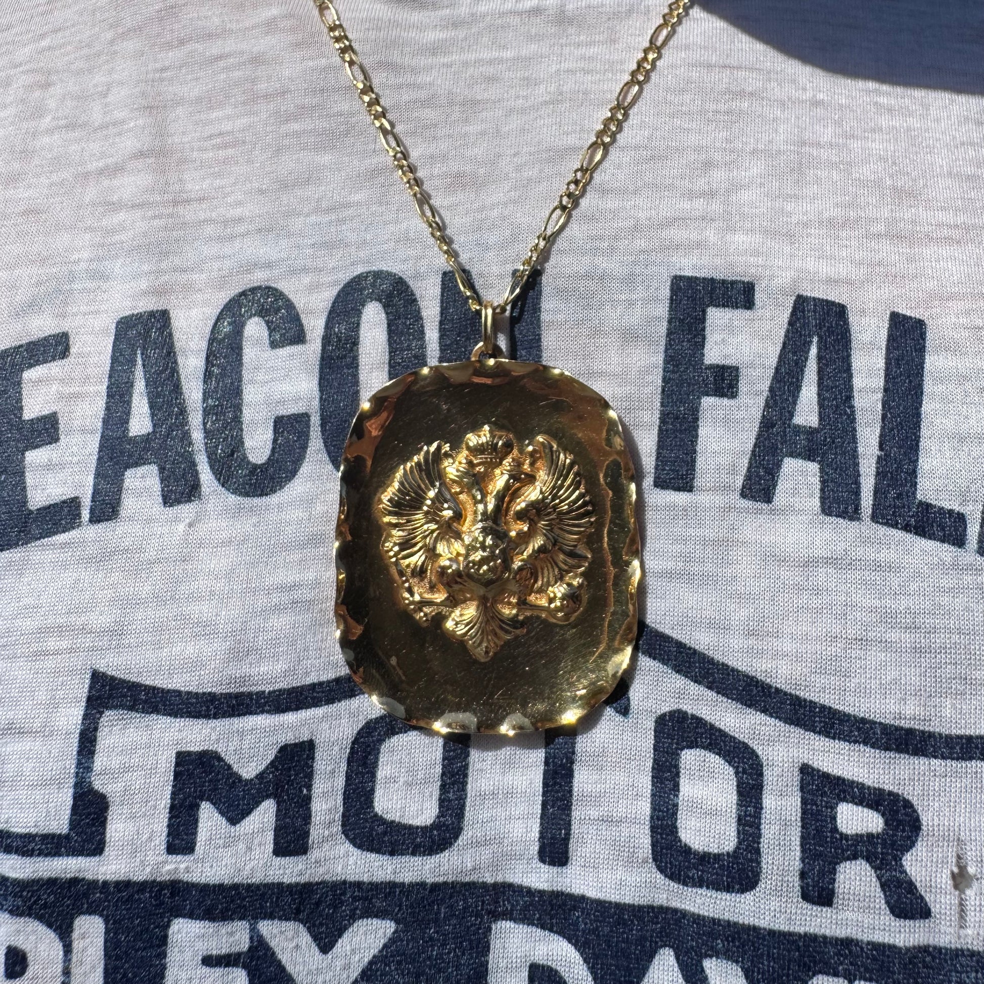 Vintage Designer Handmade Solid 18k Yellow Gold Large Russian Coat of Arms Imperial Double Eagle REPOUSSÉ Pendant