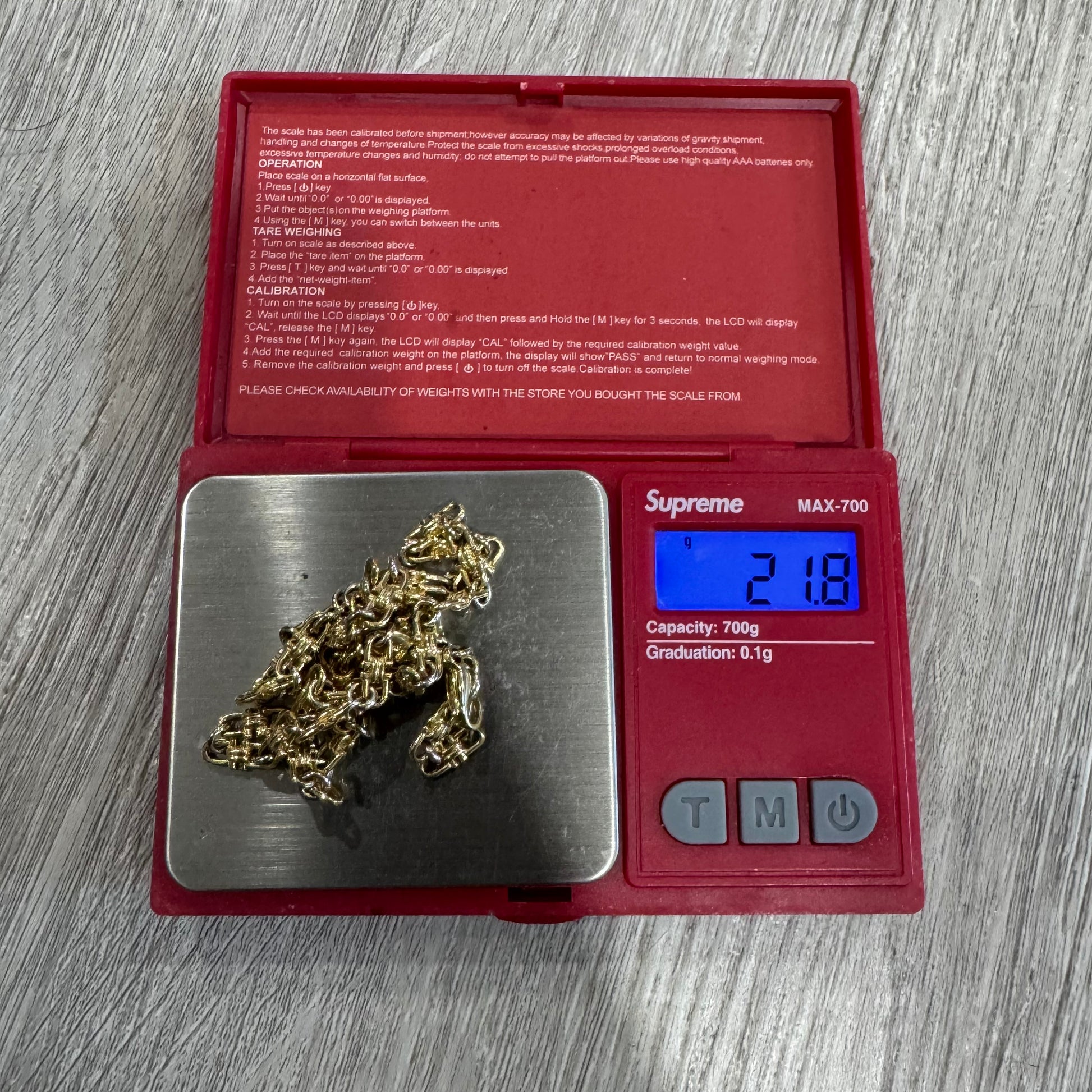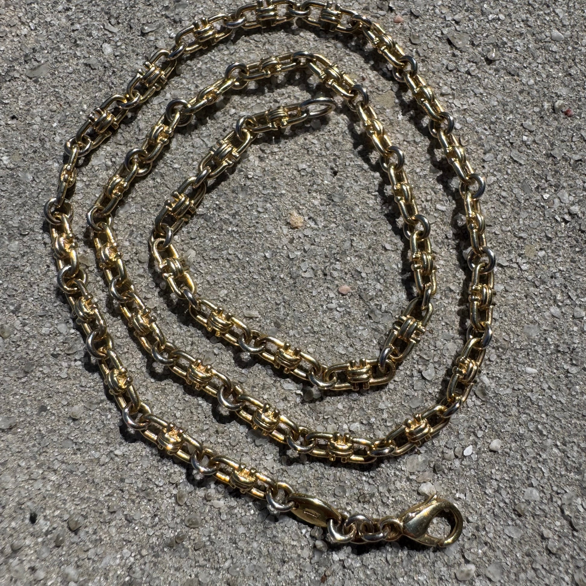 The infamous Horsebit link, rarely seen yet on the wish list for any fine jewelry collector. Crafted by Auritalia out of a solid 14k yellow gold the main Horsebit links are then attached with chunky white gold circular cable links. Heavy duty and durable this necklace is a wearable 18.5” by 4.5mm wide and a solid heavyweight of 21.8g. This piece is designer made in Italy with the finest detail and craftsmanship as it really give off a rugged and tough look with fierce style yet blends together effortlessly and elegant to anybody who wears it and wants to get that extra confidence booster. This is a 1 out of 1000 piece you won’t be able to just search for on the internet and find. It’s needle in a haystack at a great price.