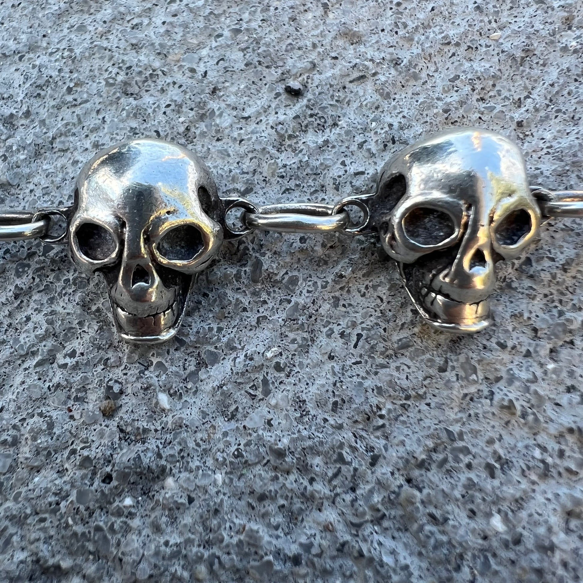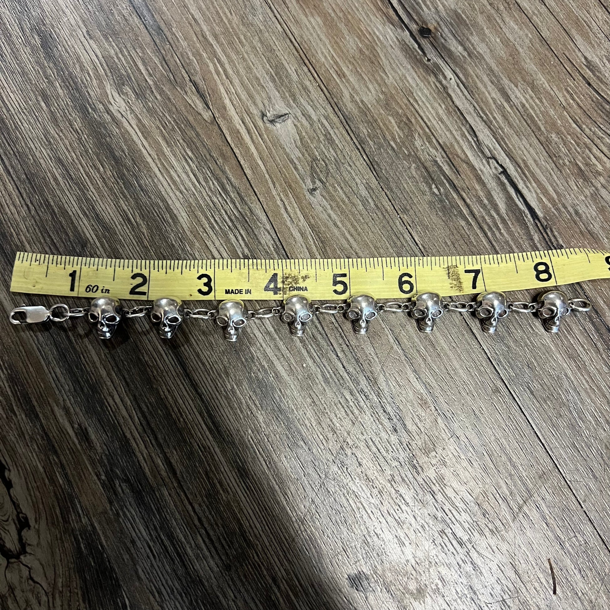 Vintage Heavy Sterling/.925 Handmade Skull Bracelet (8.5”)
