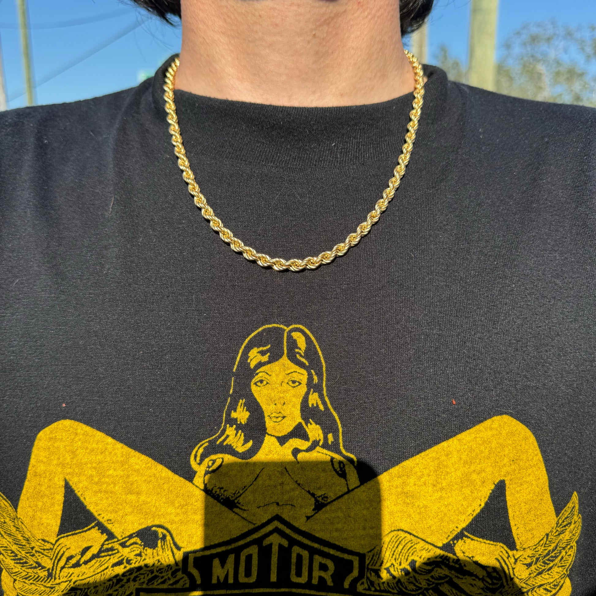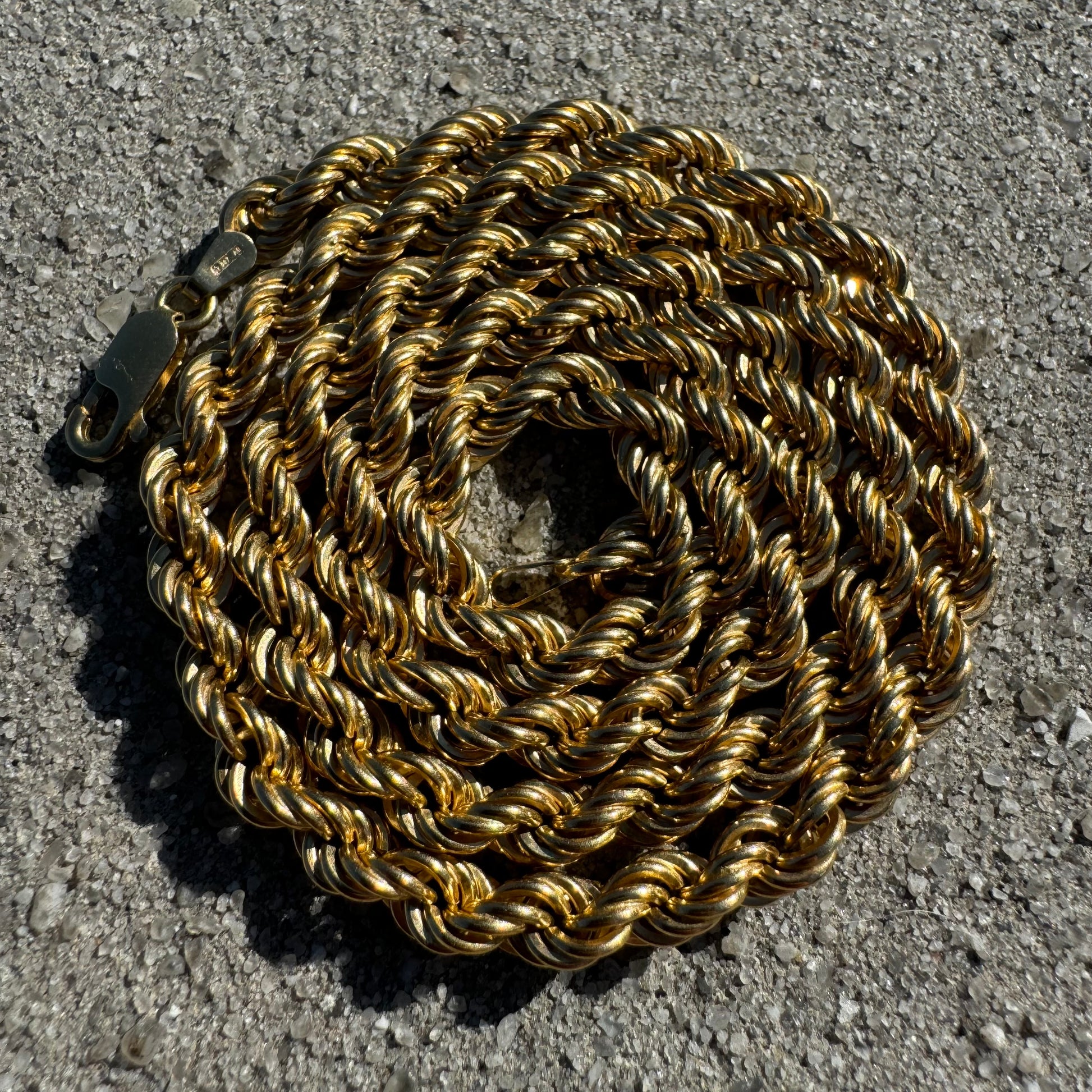 The ultimate classic, whether worn solo or with other chains, pendant or no pendant, you can never go wrong with a rope chain. Theyre my number one go to and you’ll see me draped in ropes more than any other necklace. This smooth and comfortable braided rope is crafted in the old country of Italy out of vibrant and buttery 18k yellow gold with the perfect weight to size ratio at 20” in length (5MM thick) and 17.8g.