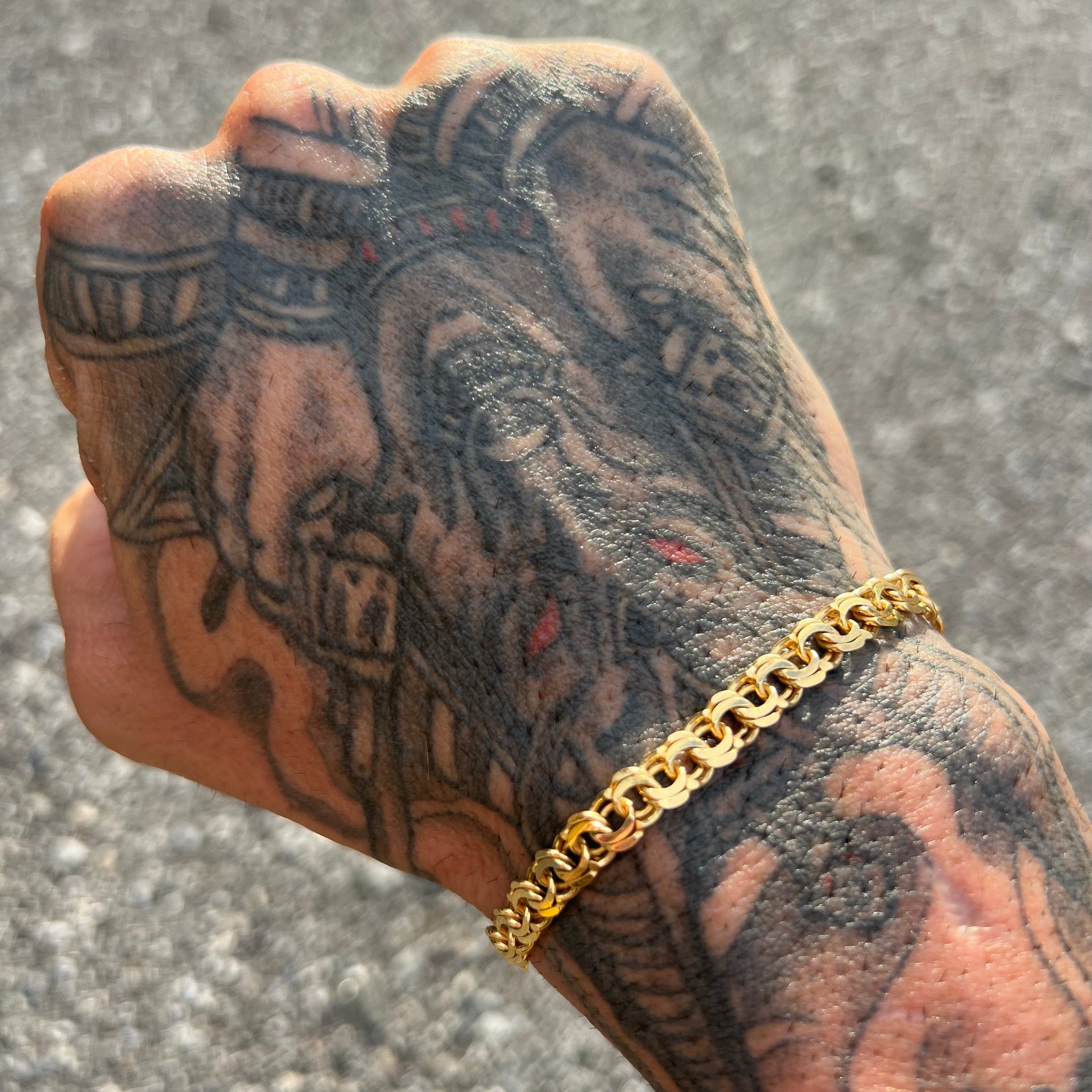 Produced with the utmost quality and highest grade of solid 14k yellow gold is this true Italian made double figure 8 link bracelet by SOCIETA ITALIANA LAVORAZIONEORO one of the leading gold smiths in Arezzo italy since 1964. This is absolutely flawless and looks as if it is brand new. Measuring 7.5” in length by 6MM wide and 10.5g with a heavy duty lobster clasp to fasten it together. Looks great in the pictures but even better in person and on your wrist.