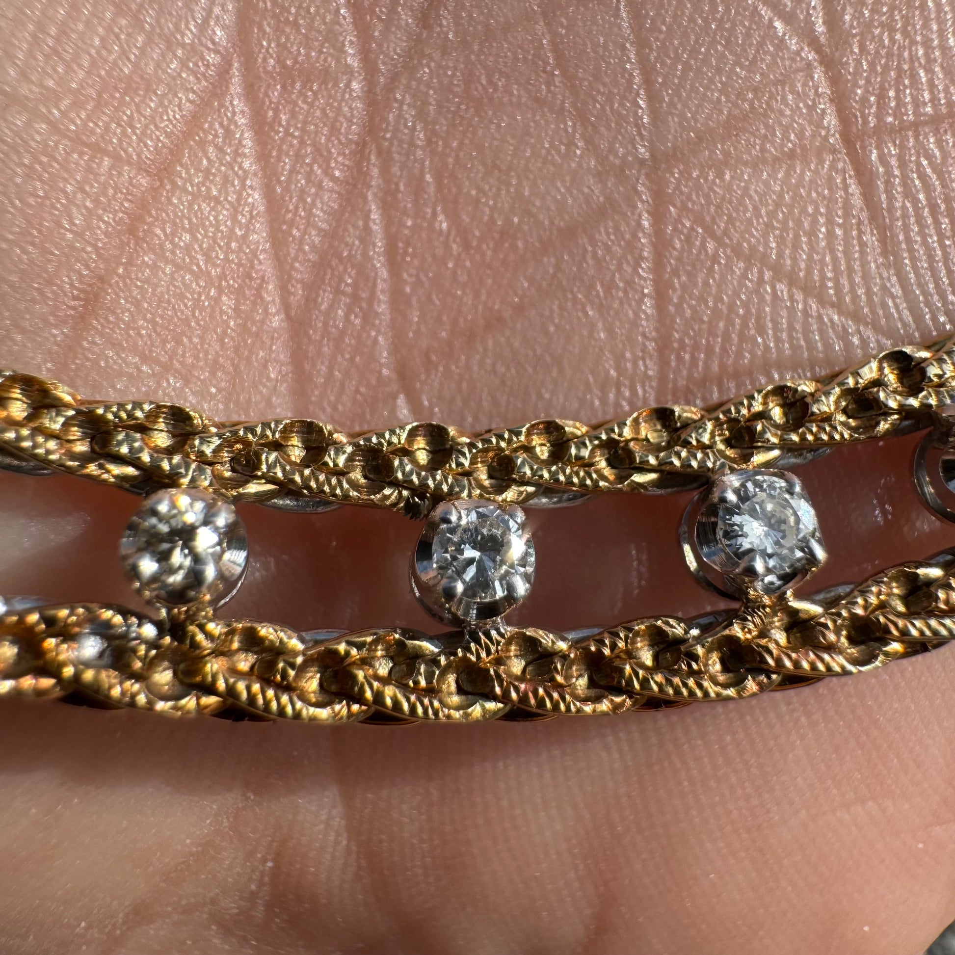Vintage Solid 14k Italian Yellow Gold Floating 1.1CTW VS Quality Natural Diamond Double Row Braided Foxtail Necklace (17”)