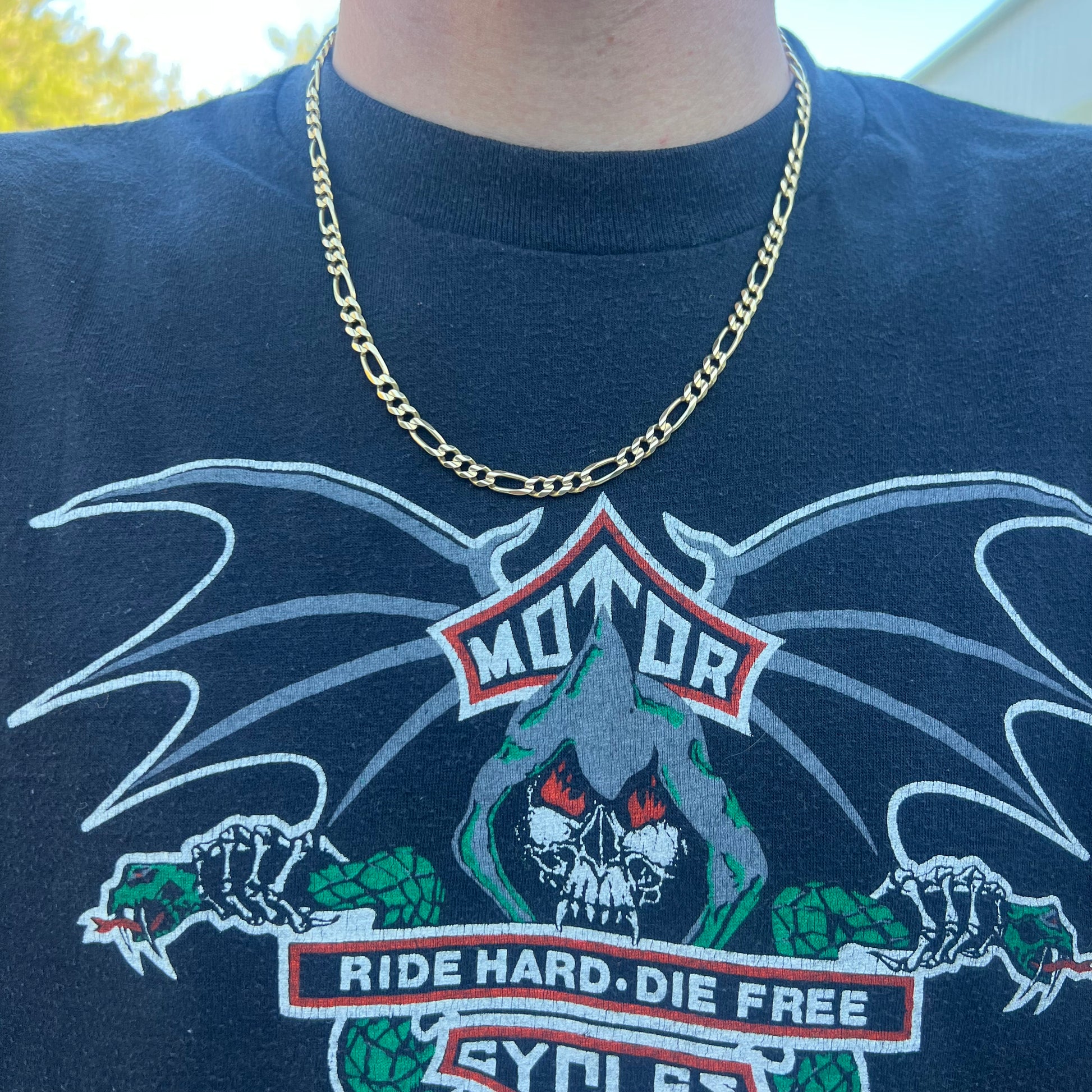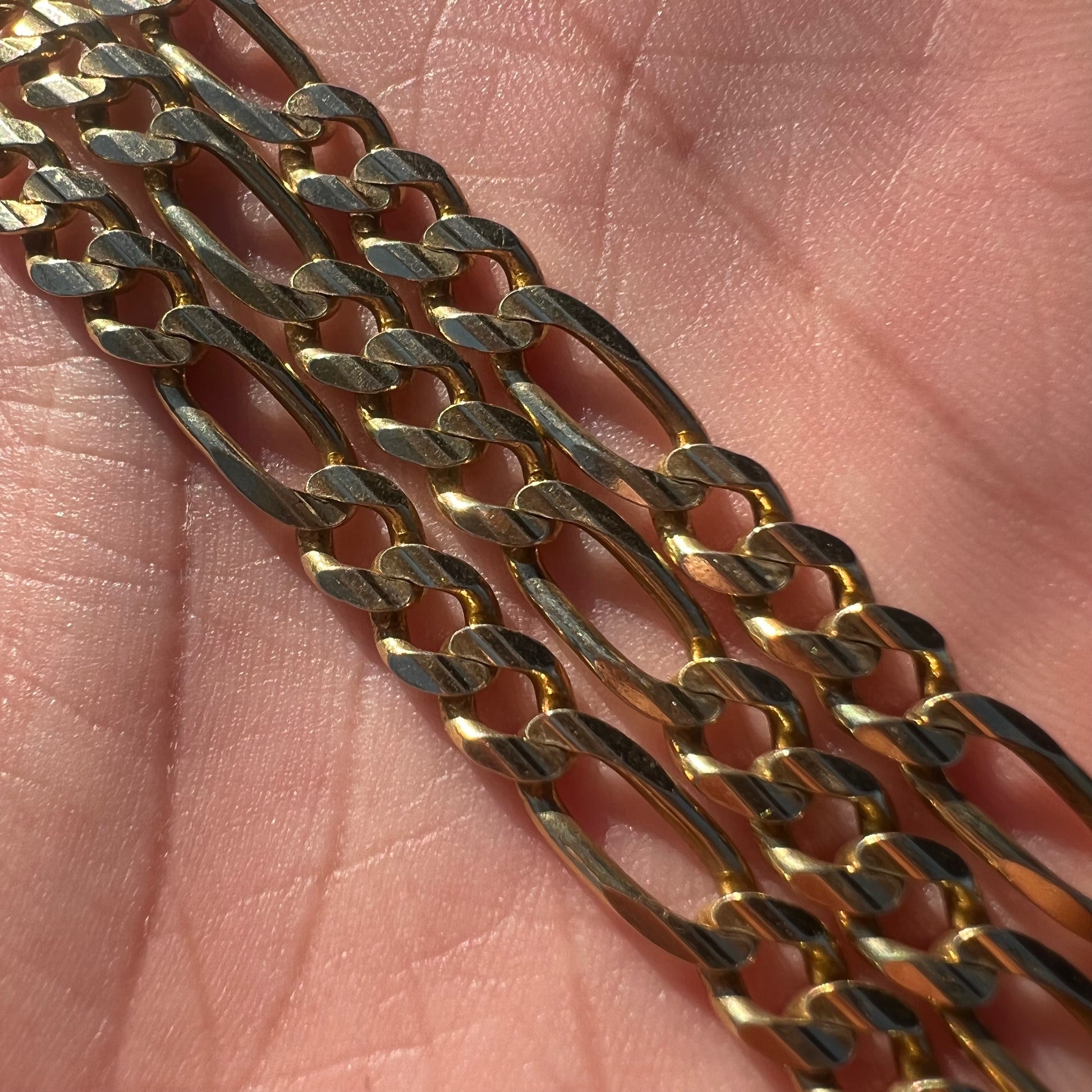 Vintage Solid 14k Italian Yellow Gold Knife Edged Heavyweight Figaro Link Necklace (20”)