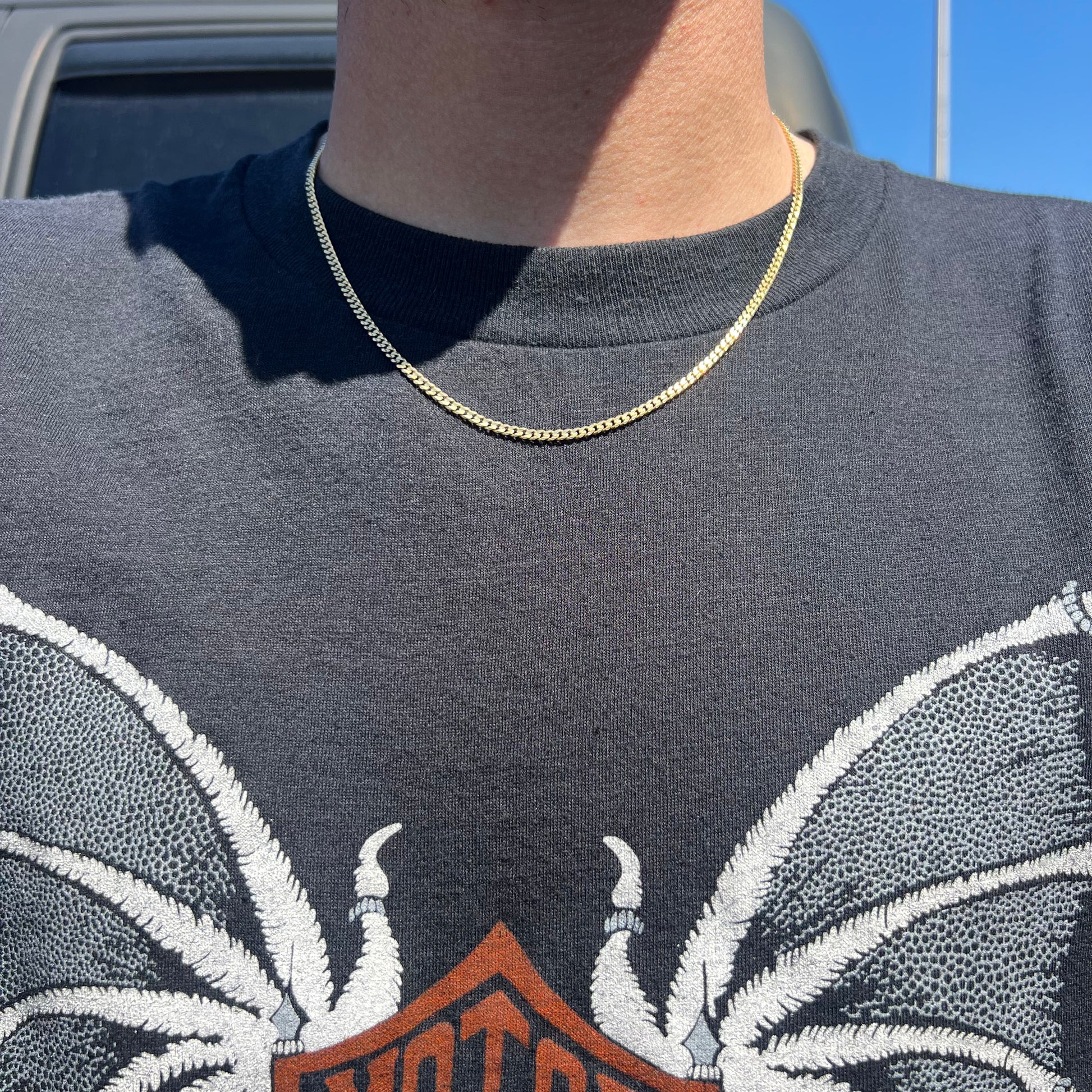 Italian made solid 14k yellow gold Miami Cuban link necklace measuring 18.5” in length by 3mm wide and weighing approximately 9.13g.