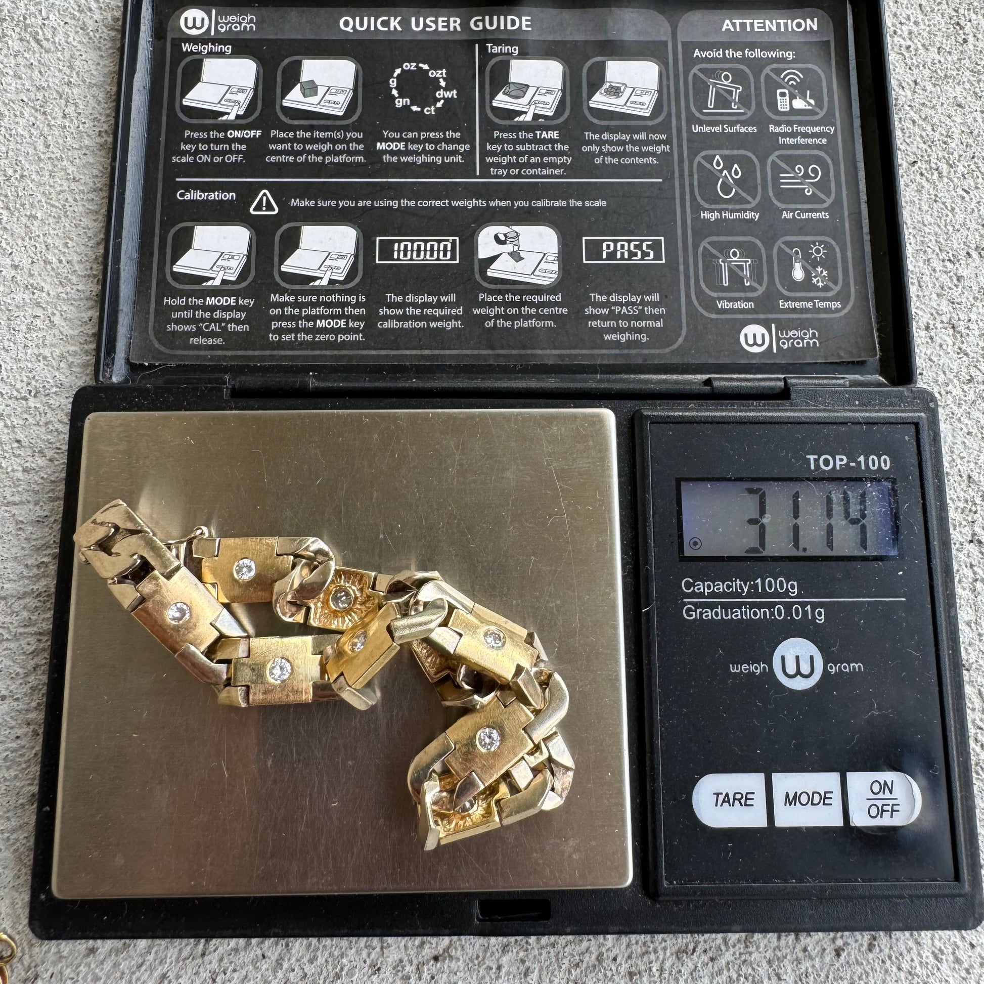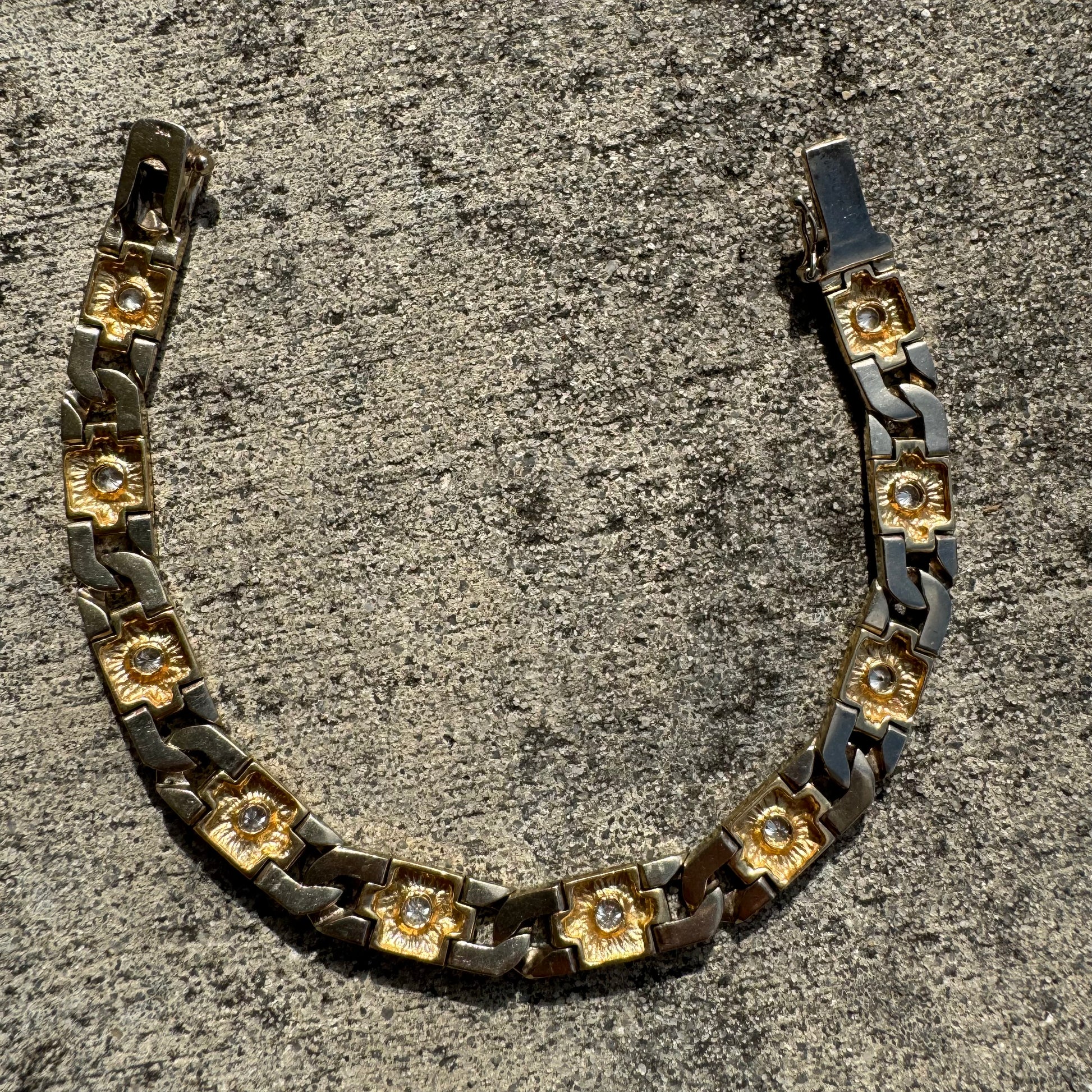 Vintage Solid 14k Two-Tone Heavyweight Fancy Link .75CTW Diamond Bracelet (8.25”)