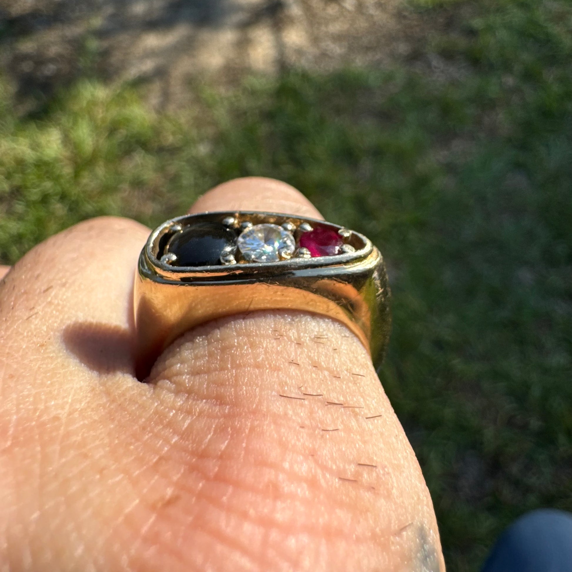 Vintage Solid 14k Yellow Gold .40ct Natutal Diamond, Ruby, Black Star Sapphire Chunky Modernist Ring (7.75)