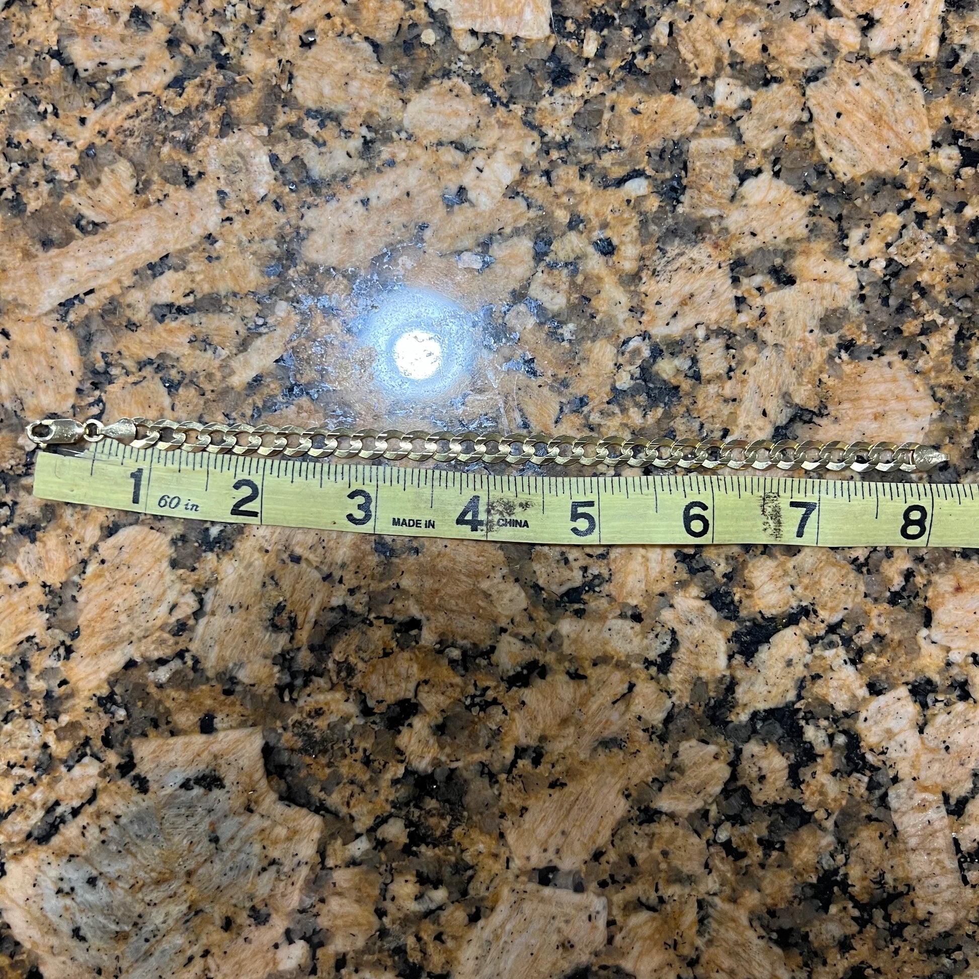 Weighing just under 10g this solid 14k yellow gold Cuban/curb link is in absolutely immaculate condition. With beveled edges on the sides giving it a fierce look that accentuates the light to hit it at every angle. This piece gets blinding when you are looking at it in the direct sunlight. Measures 8” long by 7mm wide, a perfect length to width ratio for a bracelet not too big yet not too small.