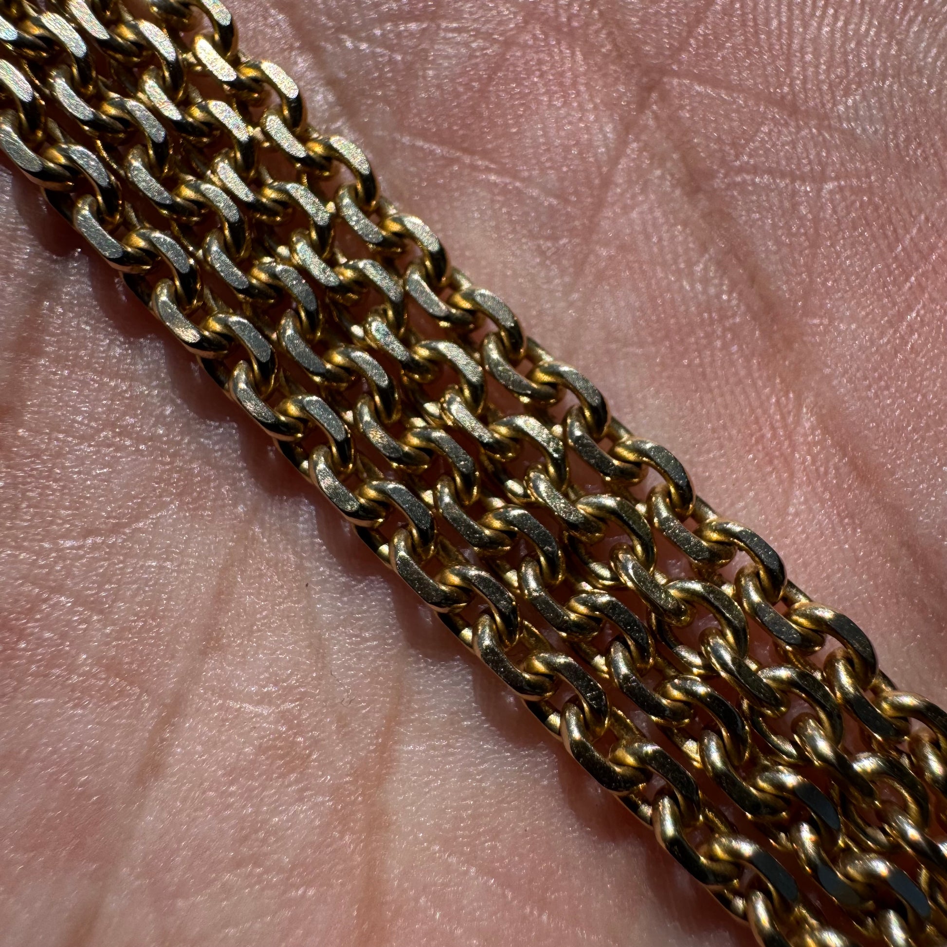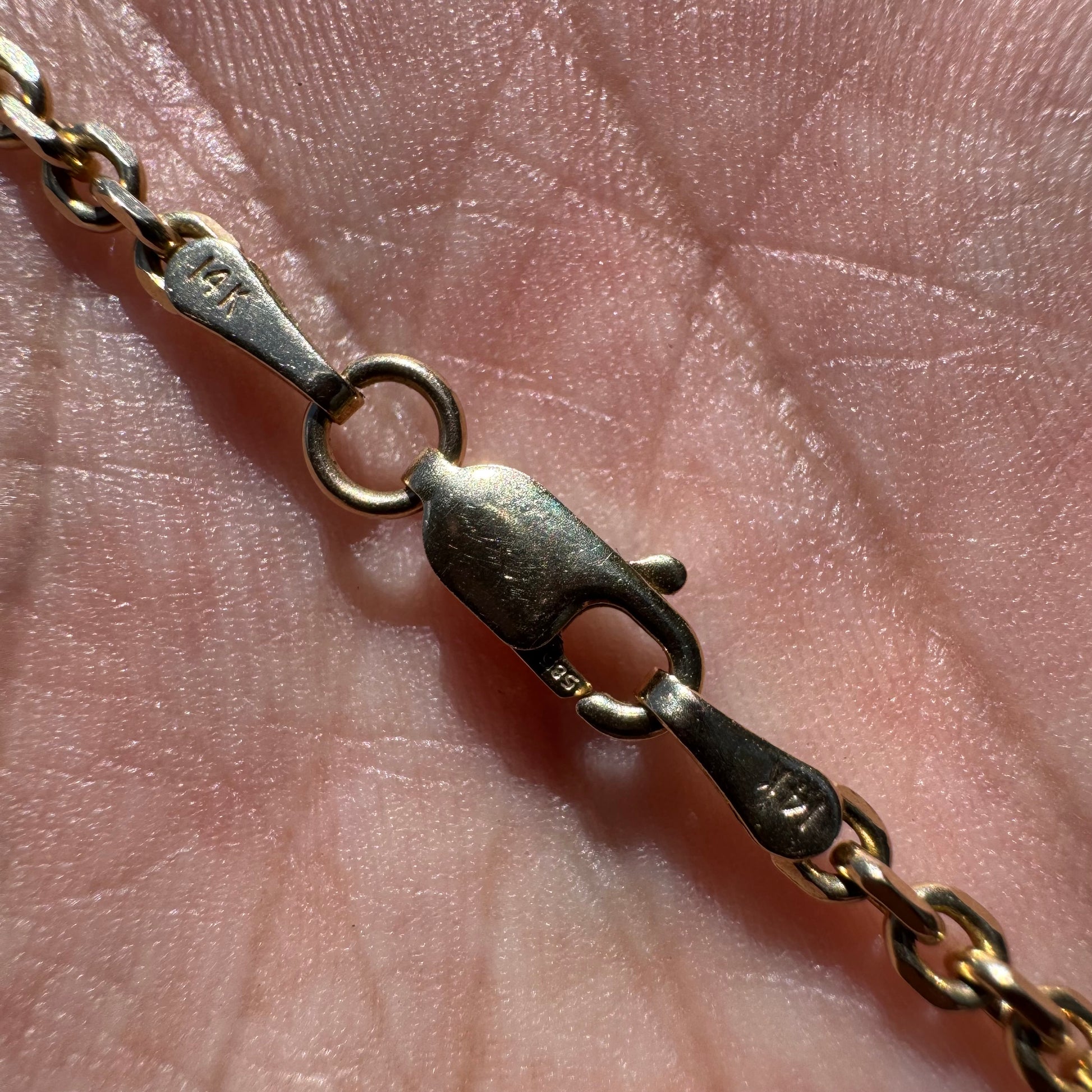 Near mint condition and looks to have hardly been worn, hot off the press this solid 14k yellow gold “biker chain” style anchor link necklace is one to be reckoned. One of the most sought after styles if you’re looking for something tough and rugged this chain can take any type of action you put it through yet also has class that and elegance factor. Crafted with precision this chain has sleek knife edged sides and a heavy duty large lobster clasp to secure it with the utmost protection. At the perfect size to weight ratio for longer length necklaces this beefy boy is 25” in length and 3mm thick weighing in at just about 16.1g. A great everyday chain to just throw on over your head without unclasping it is a great addition to any layering stack or worn solo. Looks great with a pendant on or plain Jane without a pendant. Versatile and sleek this is a timeless piece.