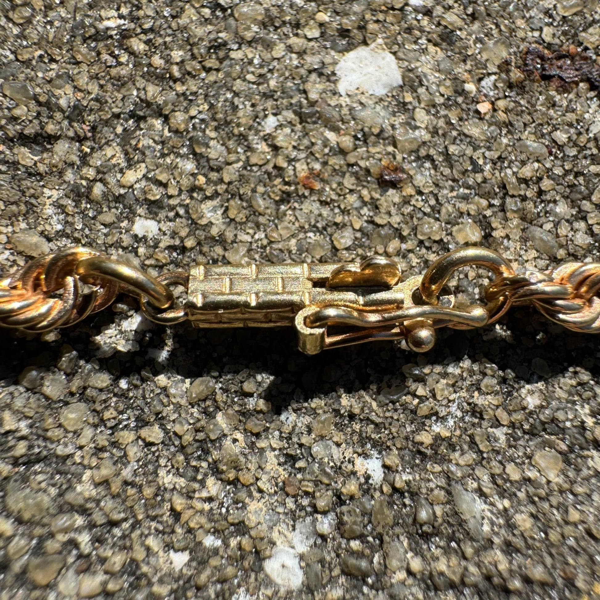 Coming straight from my personal collection is the definition of a classic rope chain. Crafted out of solid 14k yellow gold with a unique brick wall style rectangular barrel lock clasp from the 1970’s this necklace is so smooth and comfortable you won’t even feel like you’re wearing anything around your neck despite it’s heavyweight of almost 23g. Measuring 24.5” in length and 3mm wide it’s an excellent longer size for anyone looking for an everyday chain to just throw on right over there head and leave out the door. This one will be a daily wear and last in your family for a lifetime.