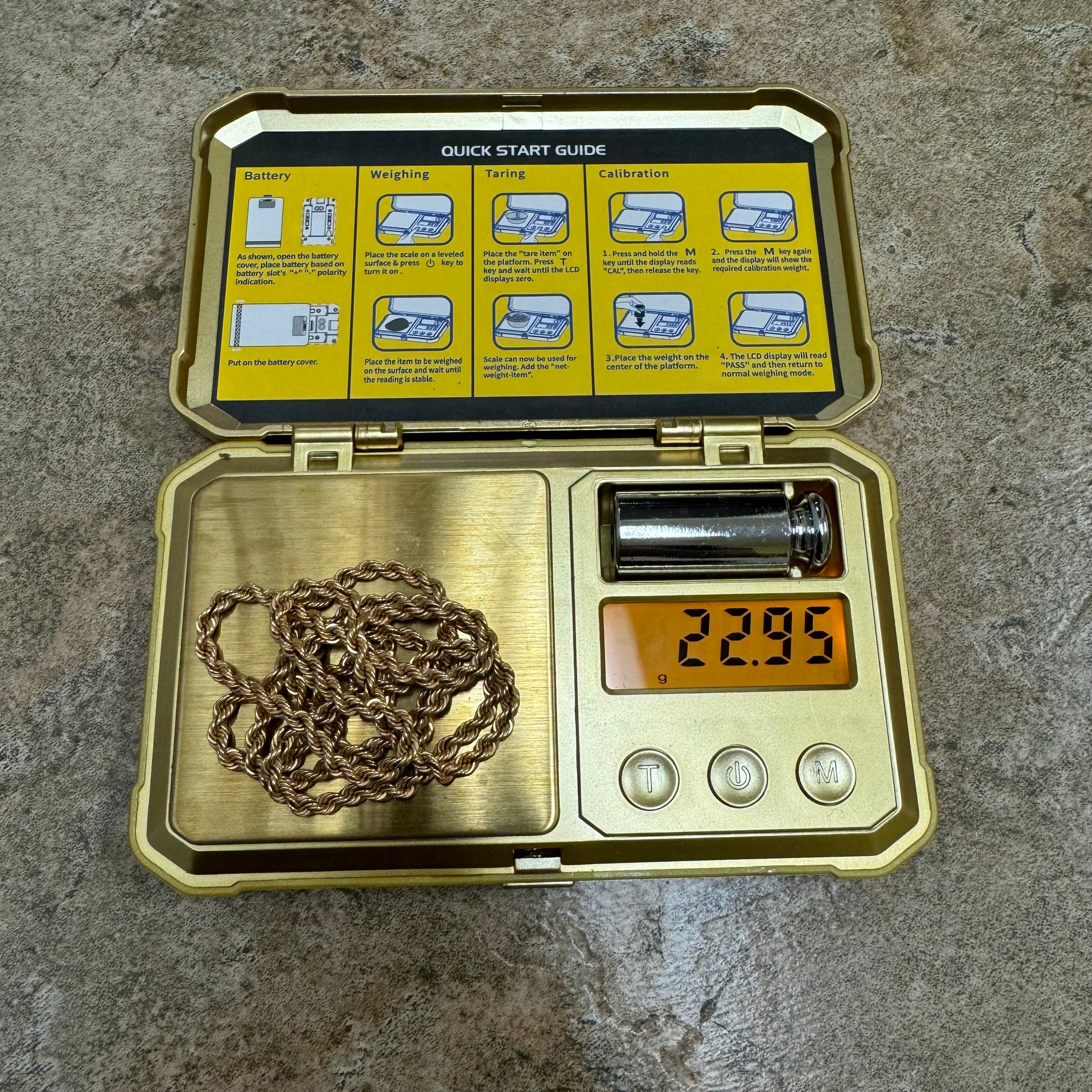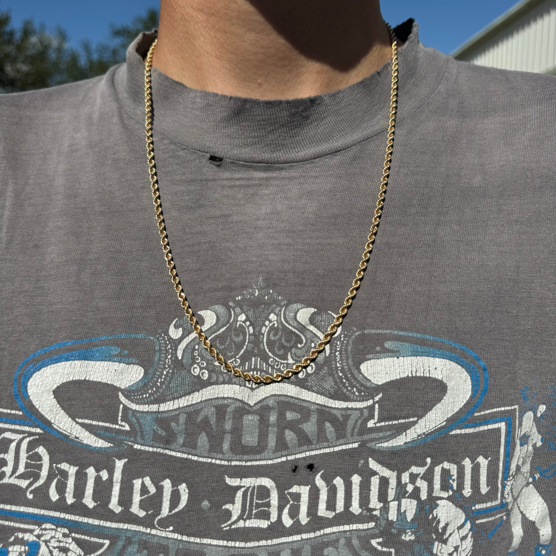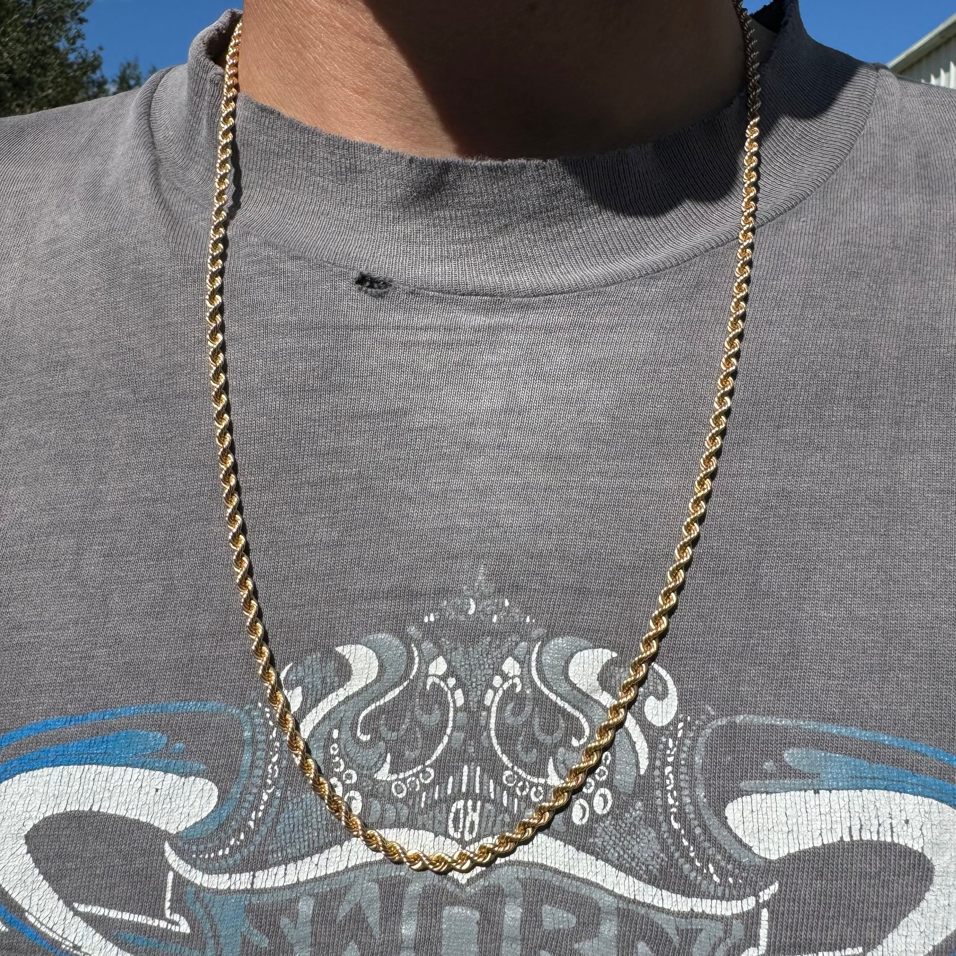 Vintage Solid 14k Yellow Gold Classic Rope Chain Necklace (24.5”)