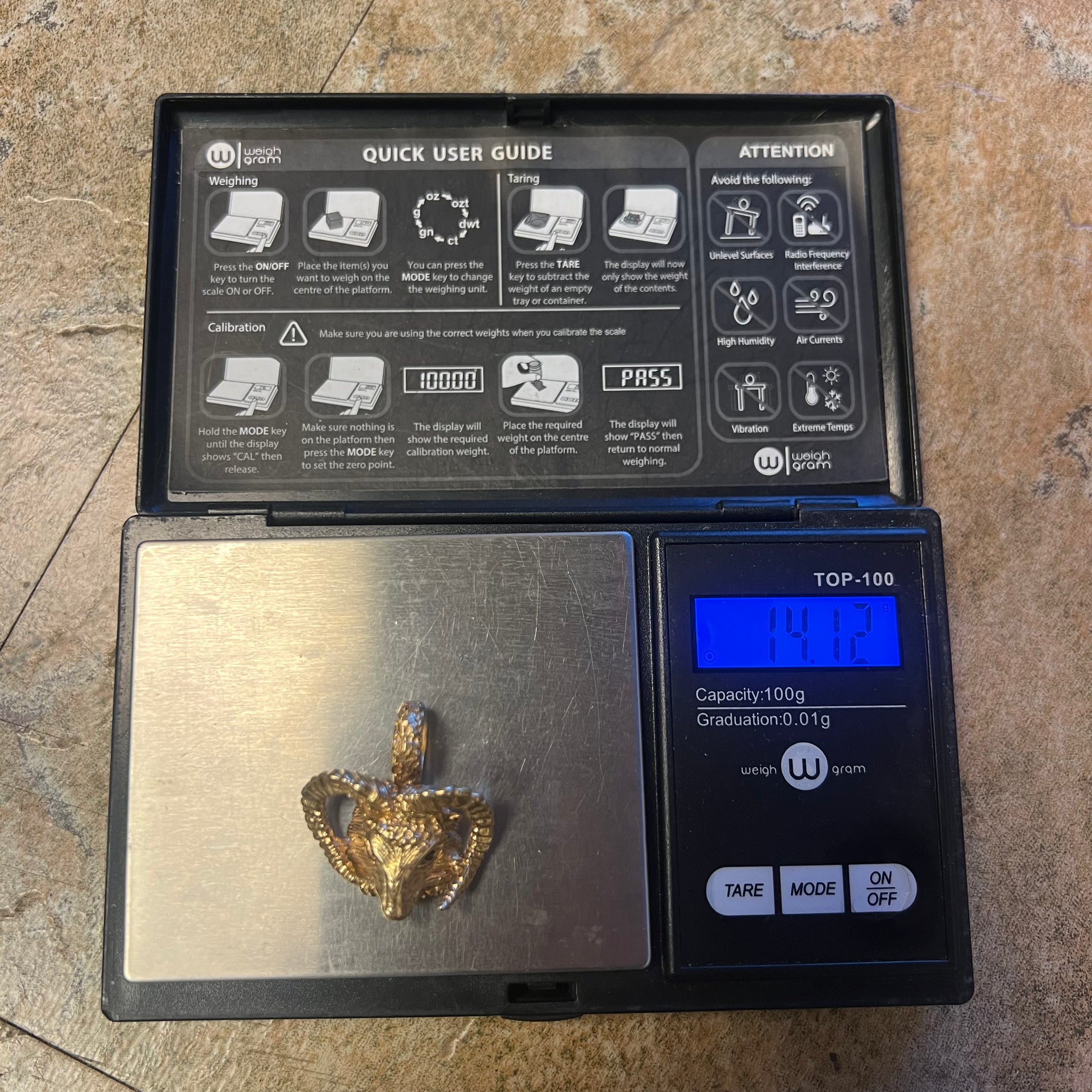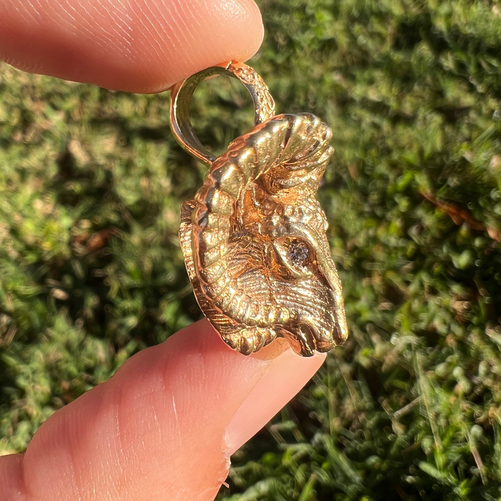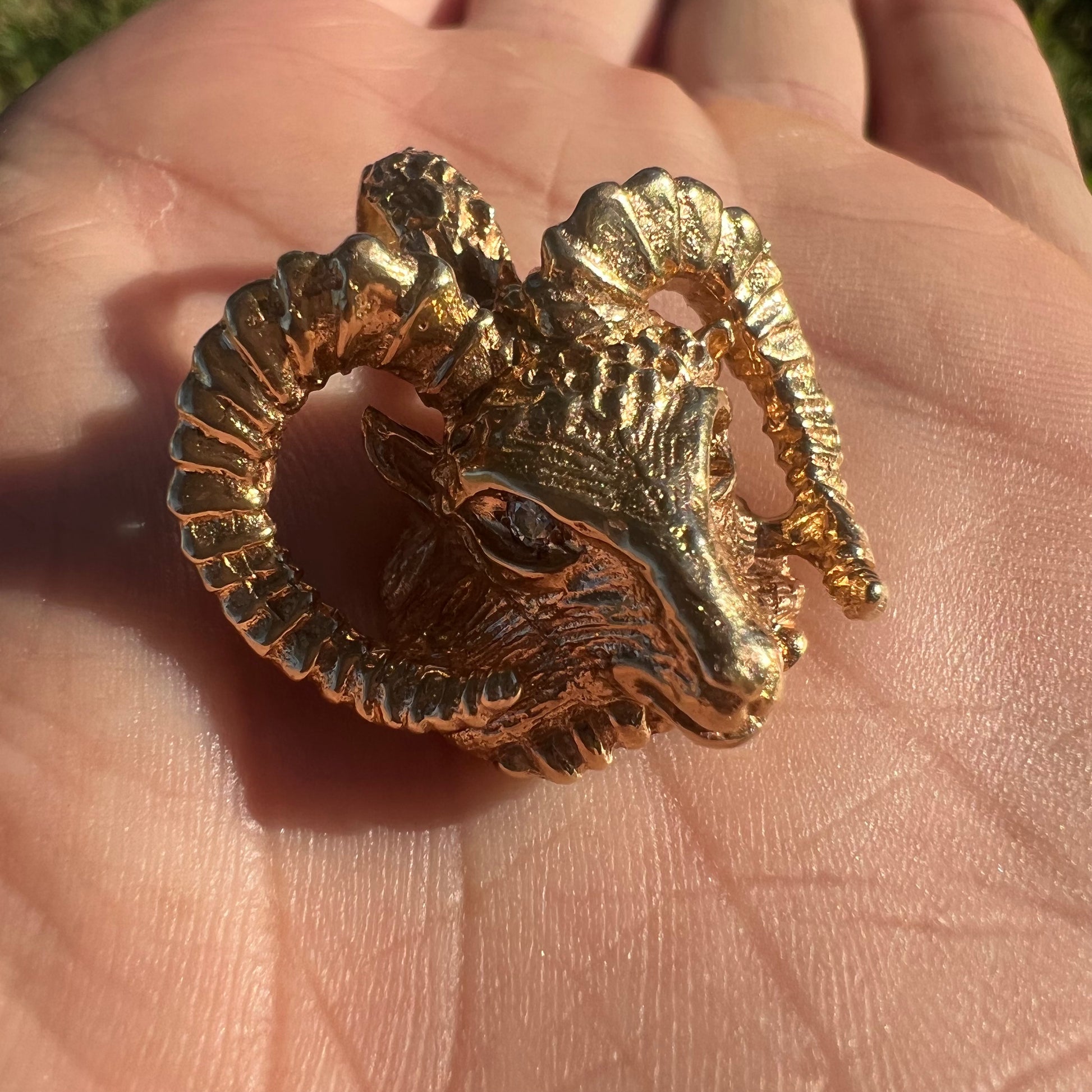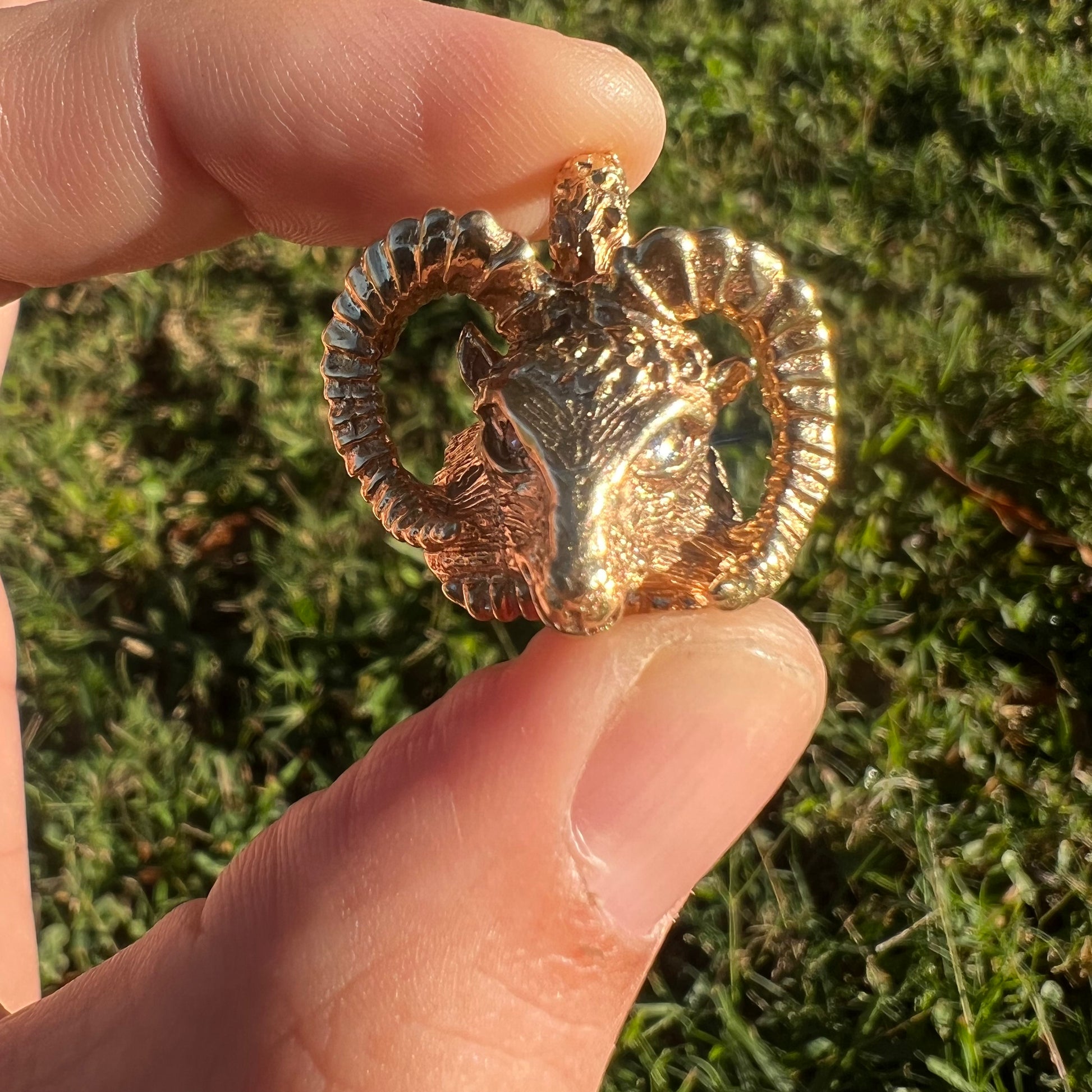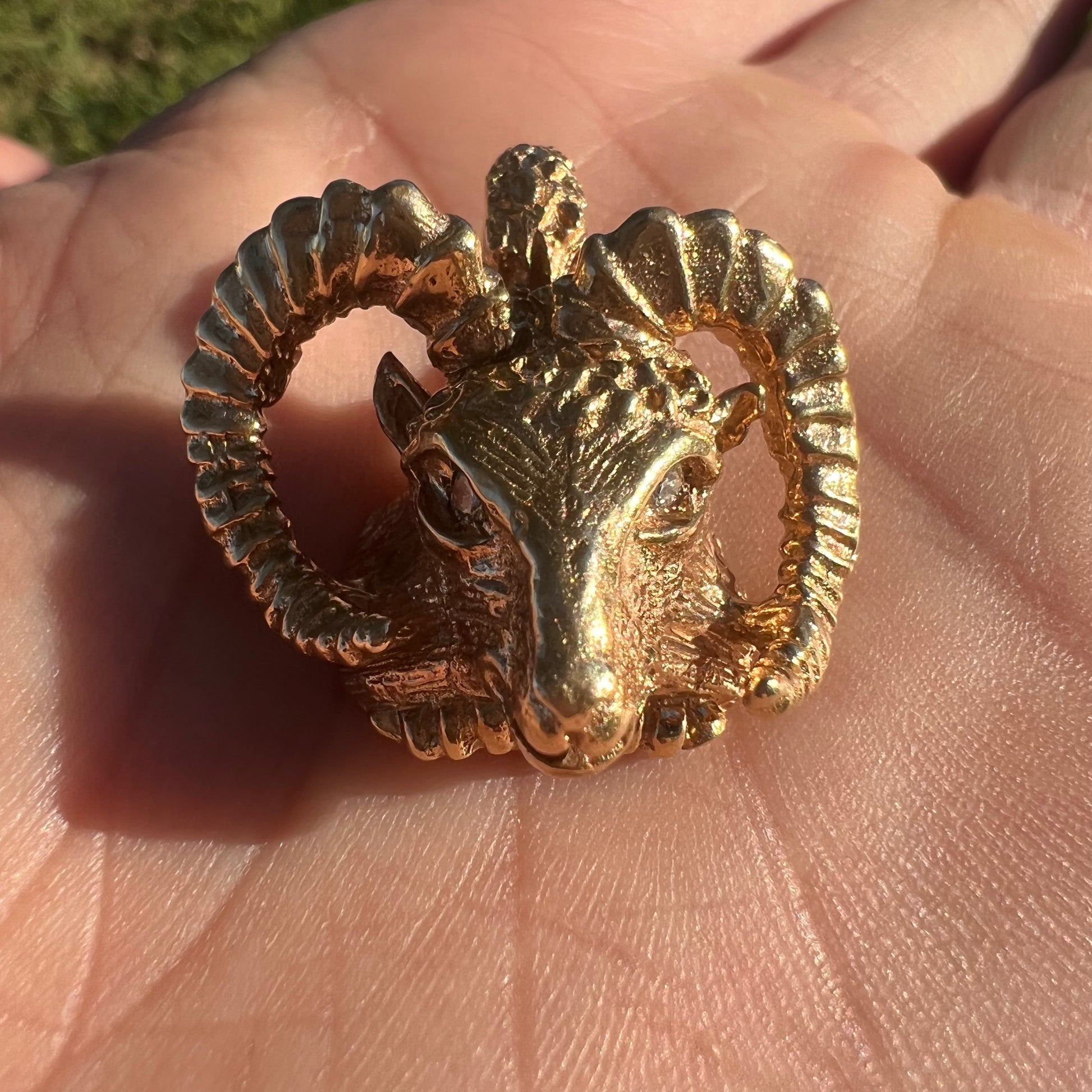 Vintage Solid 14k Yellow Gold Custom Diamond Encrusted Ram Pendant