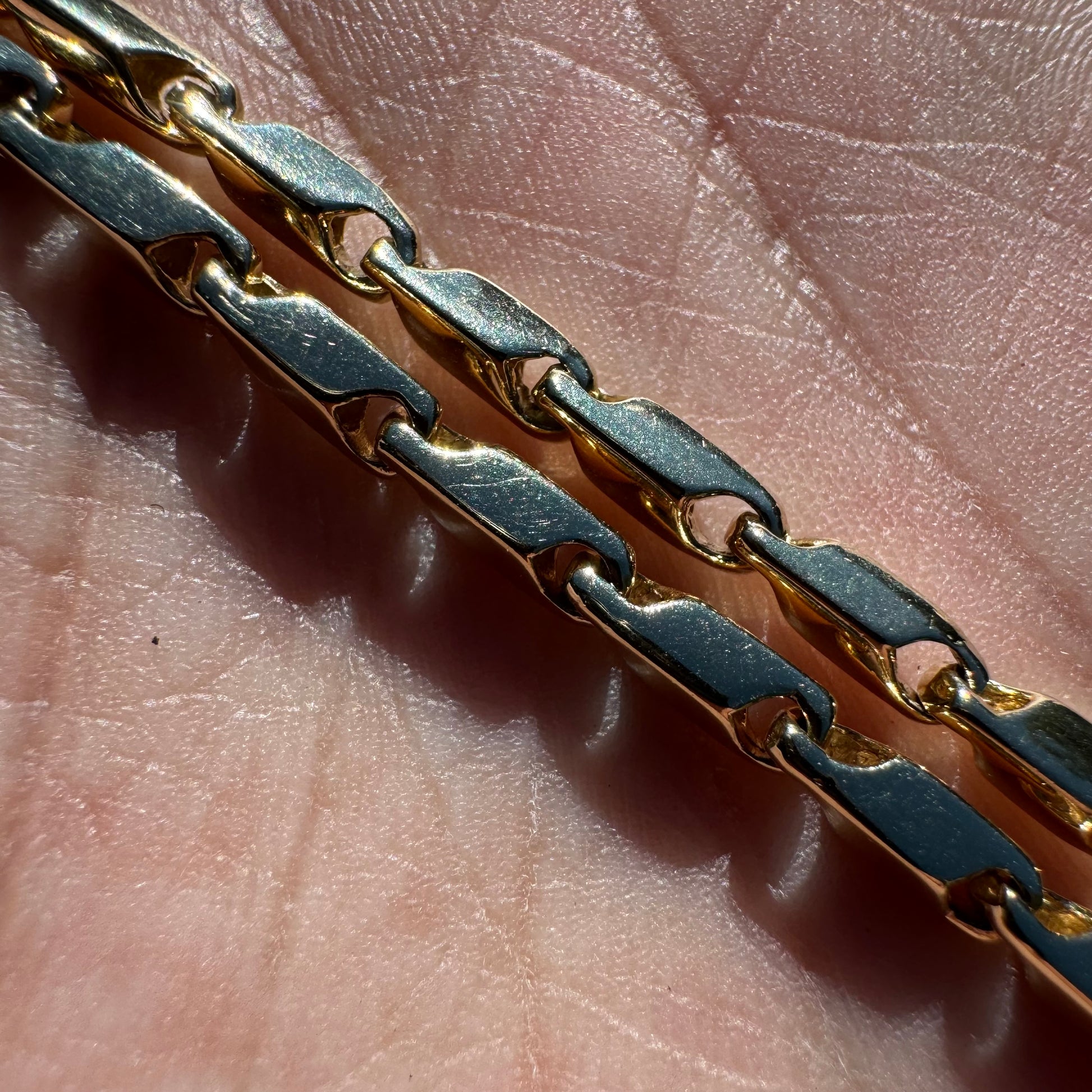 A Florida staple, the OG fish eye link necklace. Worn by mariners and sea captains on the open waters, the fisherman, the Florida boys this is a piece you might have seen with a shipwreck coin pendant or anything nautical dangled off the end. Regardless of what you have seen before or what it’s usually worn with its a bad ass and rare link style you don’t see very often that is very versatile and looks good with or without a pendant. Crafted out of solid 14k mirror polished finish yellow gold weighing in at 23.25g and 20.25” long by 3.25mm wide the necklace was designed with a 360 degree spinning heavy duty lobster clasp that allows for the necklace to never twist or tangle up on itself no matter what strenuous activity you’re doing while wearing the chain.