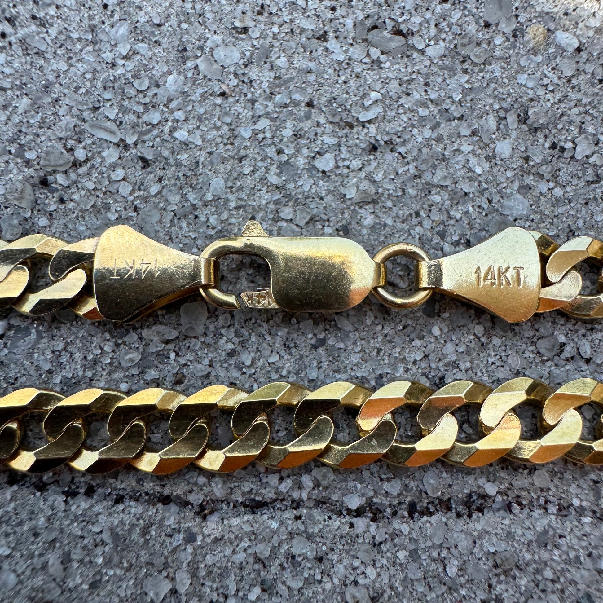 Vintage Solid 14k Yellow Gold Heavyweight Beveled Knife Edged Cuban Curb Link Necklace (22”)