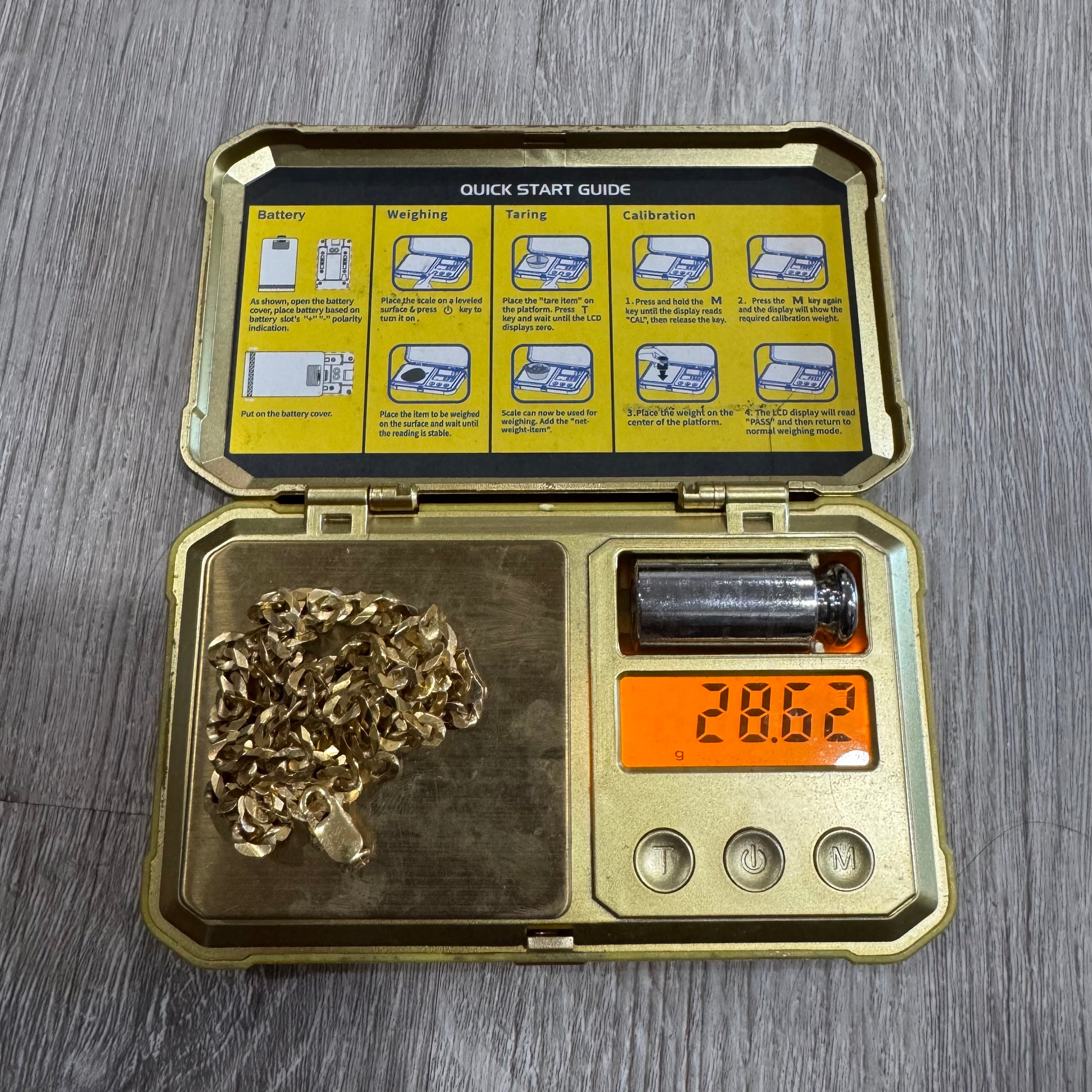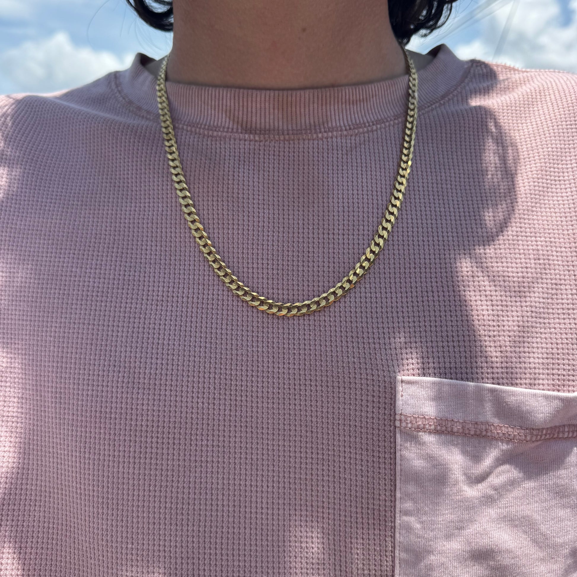 The perfect size to weight ratio if you’re looking for a solid everyday necklace with substance this chain is a timeless design with versatility to be worn with other necklaces in a stack or solo and either with a pendant or without. Crafted out of a solid 14k vibrant yellow gold the hues are nice and deep just like that of an 18k gold glow. If you notice in the pictures I tried alternating the pictures to be taken in sunlight and also in the shade and no matter where the angles hit this chain, it lights up like a chandelier. In the elusively hard to find length variant of 22” in wearable length, a heavy and solid weight of 28.62g, and a chunky width of just over 6mm the Cuban style curb links are each bevel cut and knife edged just adding even more shine and brilliance to a piece that you’ll forever want to keep.