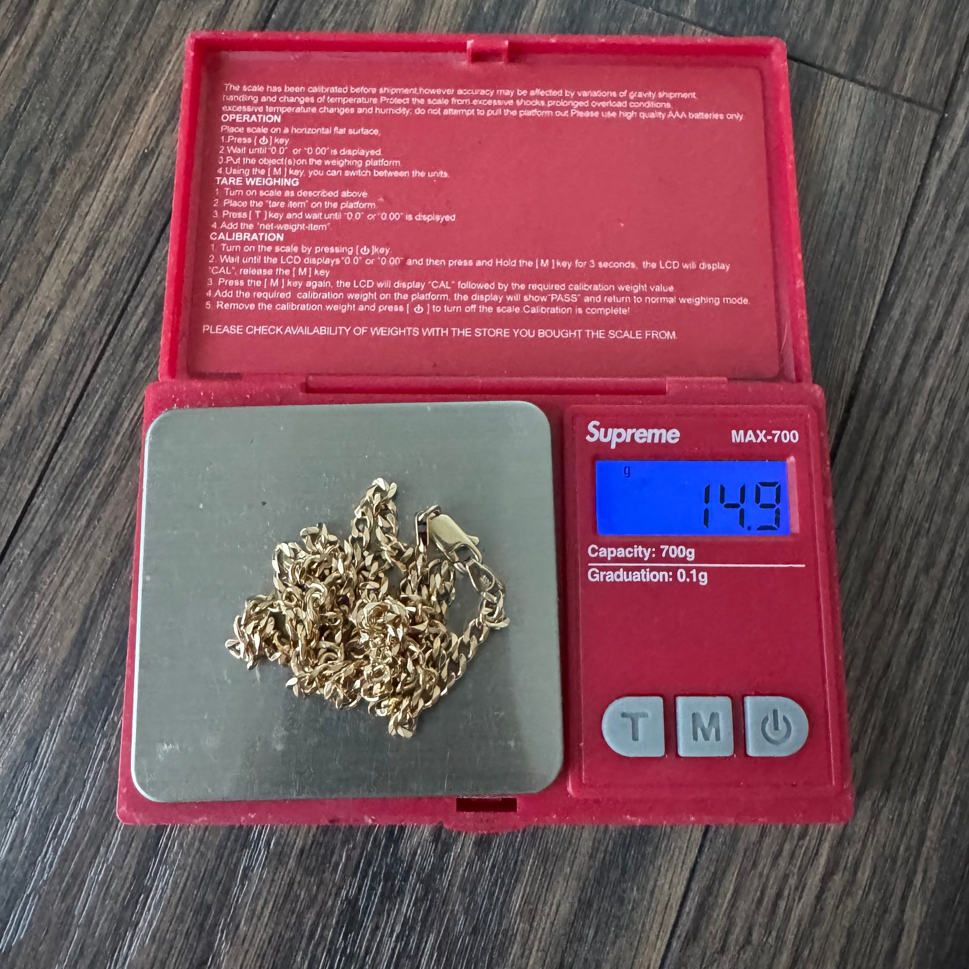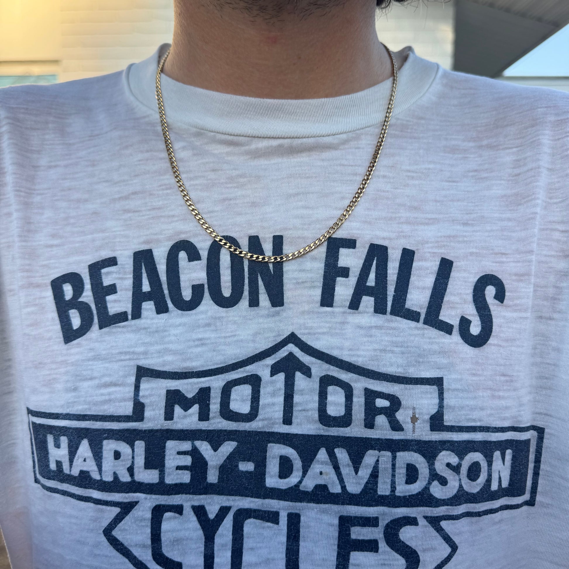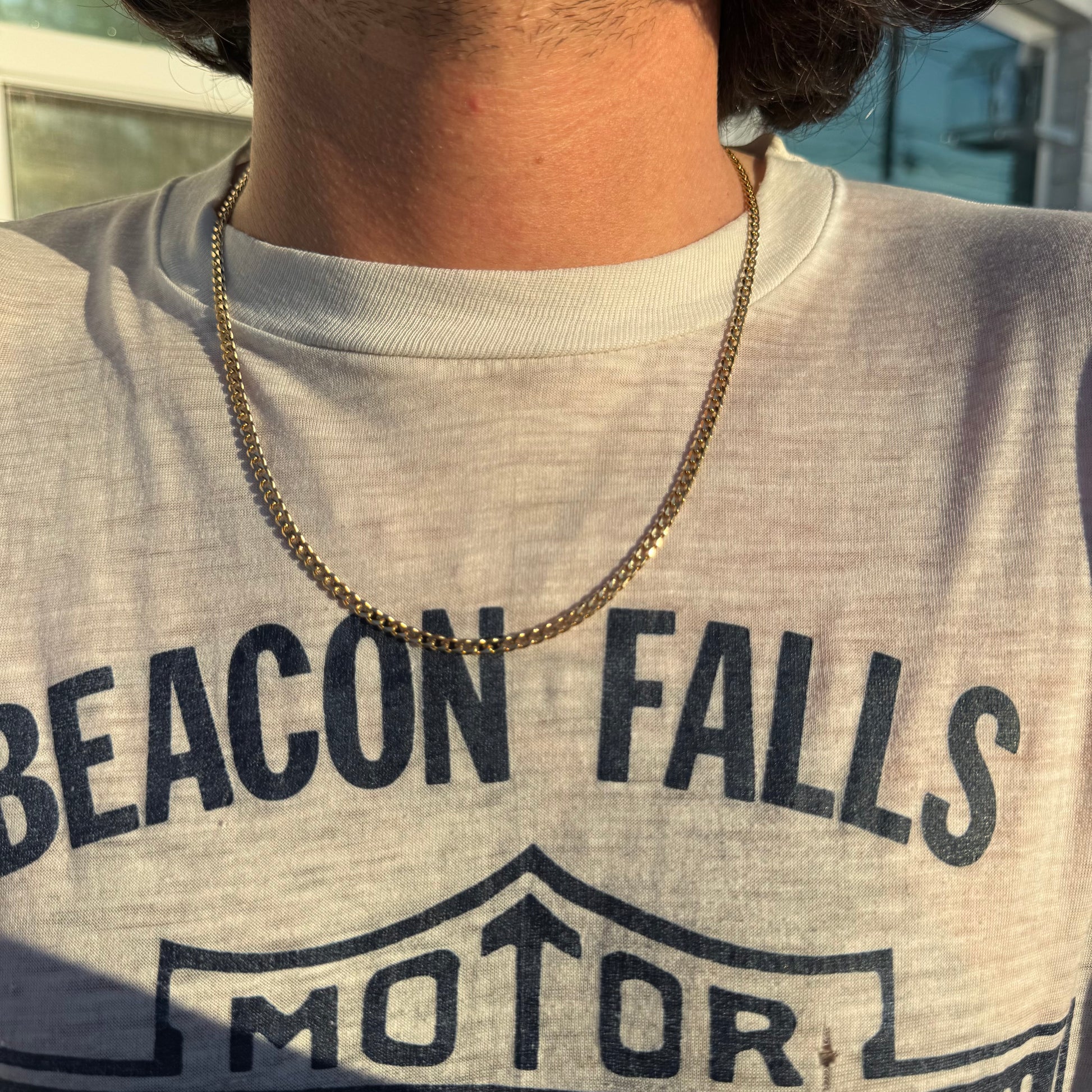 This classic meets all the criteria at the perfect size to weight ratio of 20.5” in length and one of my top selling links, the knife edged Cuban curb link. Unlike your standard rounded Cuban/curb link edges this knife edge gives off a flash of light when it hits the sun at any angle appearing like a paparazzi flash off of the high mirrored golden polish. Crafted out of solid 14k yellow gold weighing just under 15g at 3.5mm in width this chain is heavy duty and can be worn 24/7 without worry of it being too fragile for active wear. Elegant yet rugged it can be styled with or without a pendant and solo or with other chains.