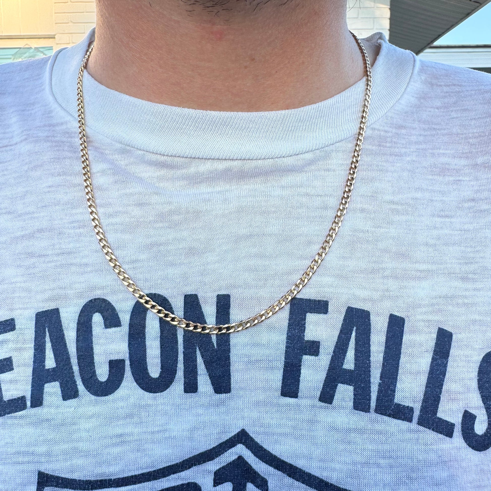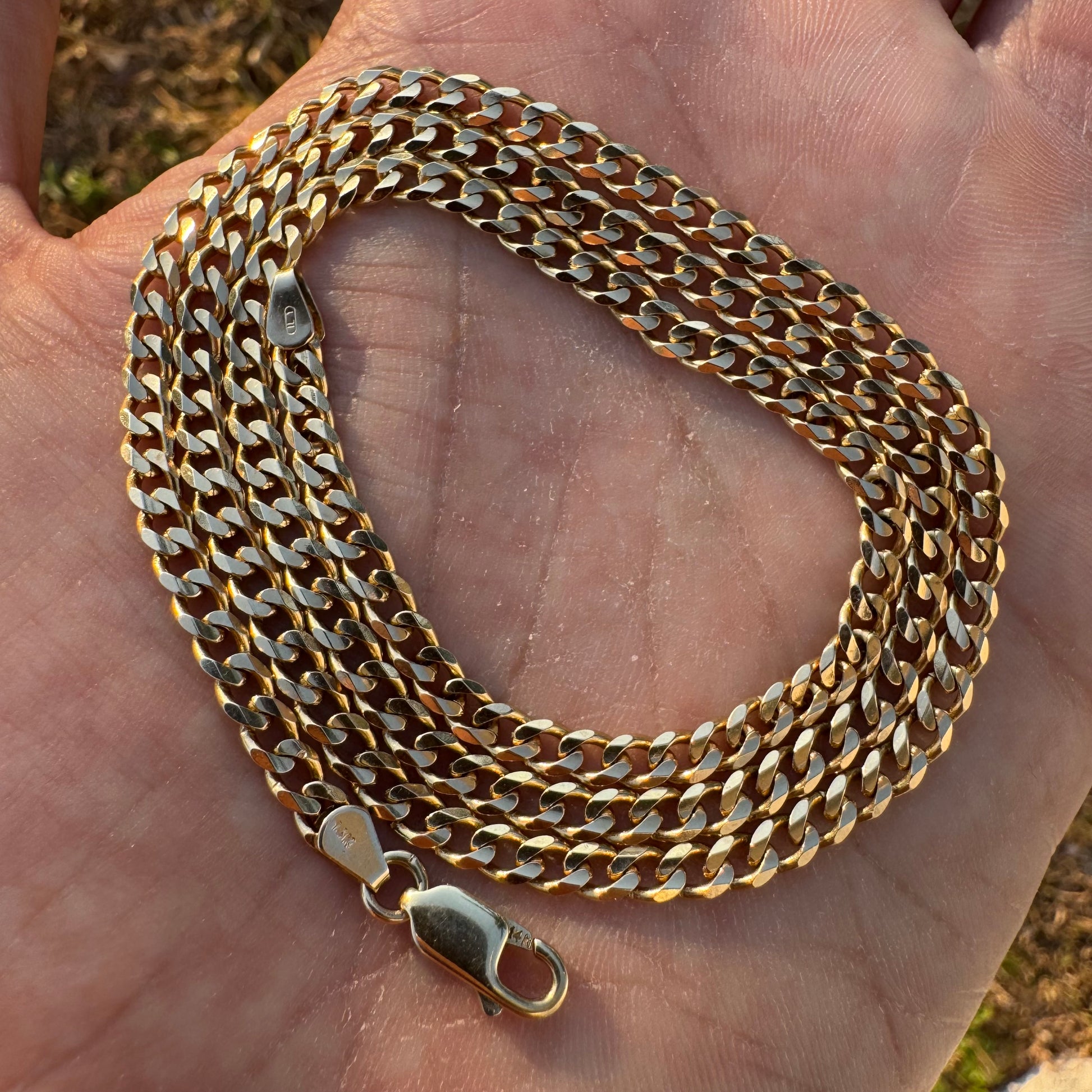 Vintage Solid 14k Yellow Gold Knife Edged Cuban Curb Link Necklace (20.5”)
