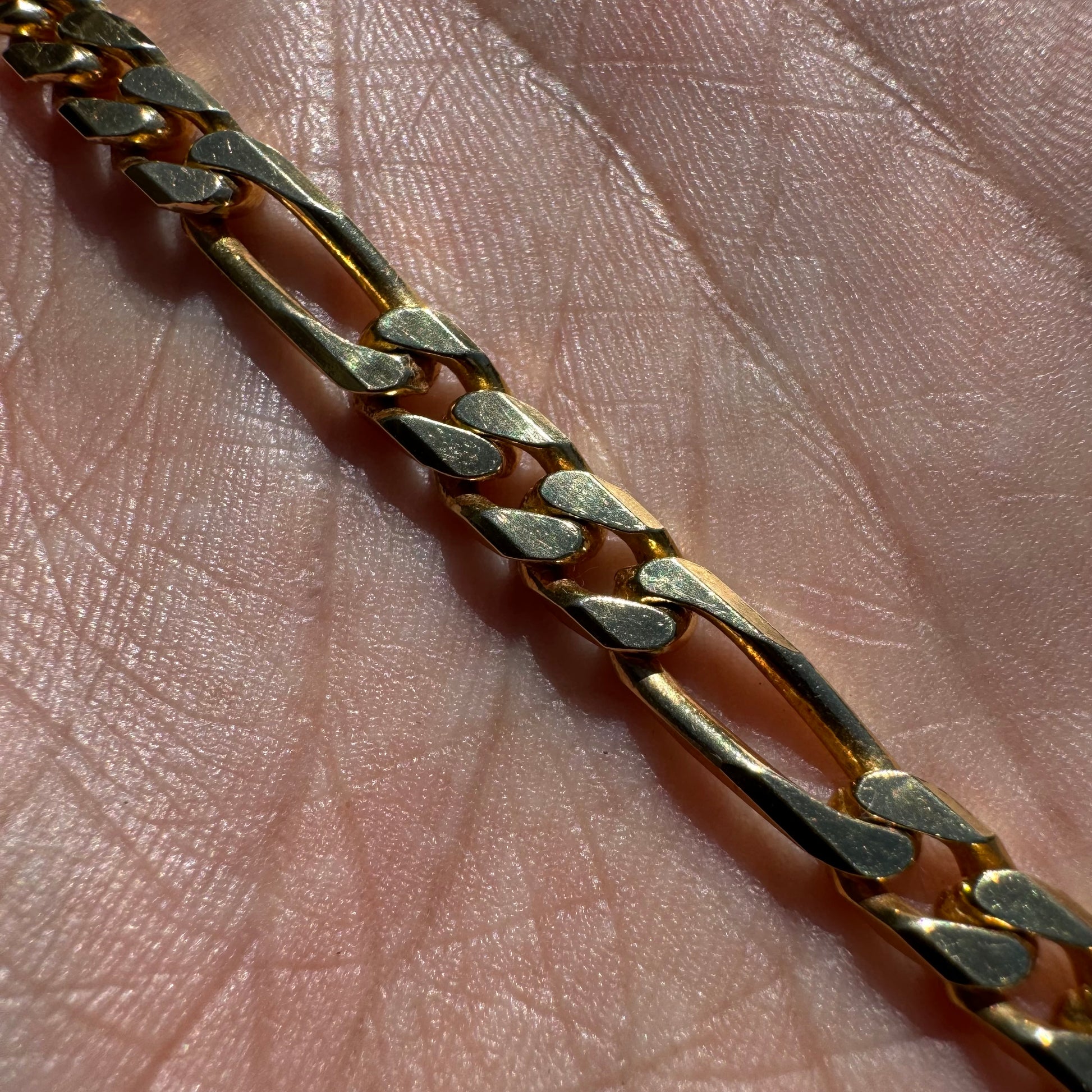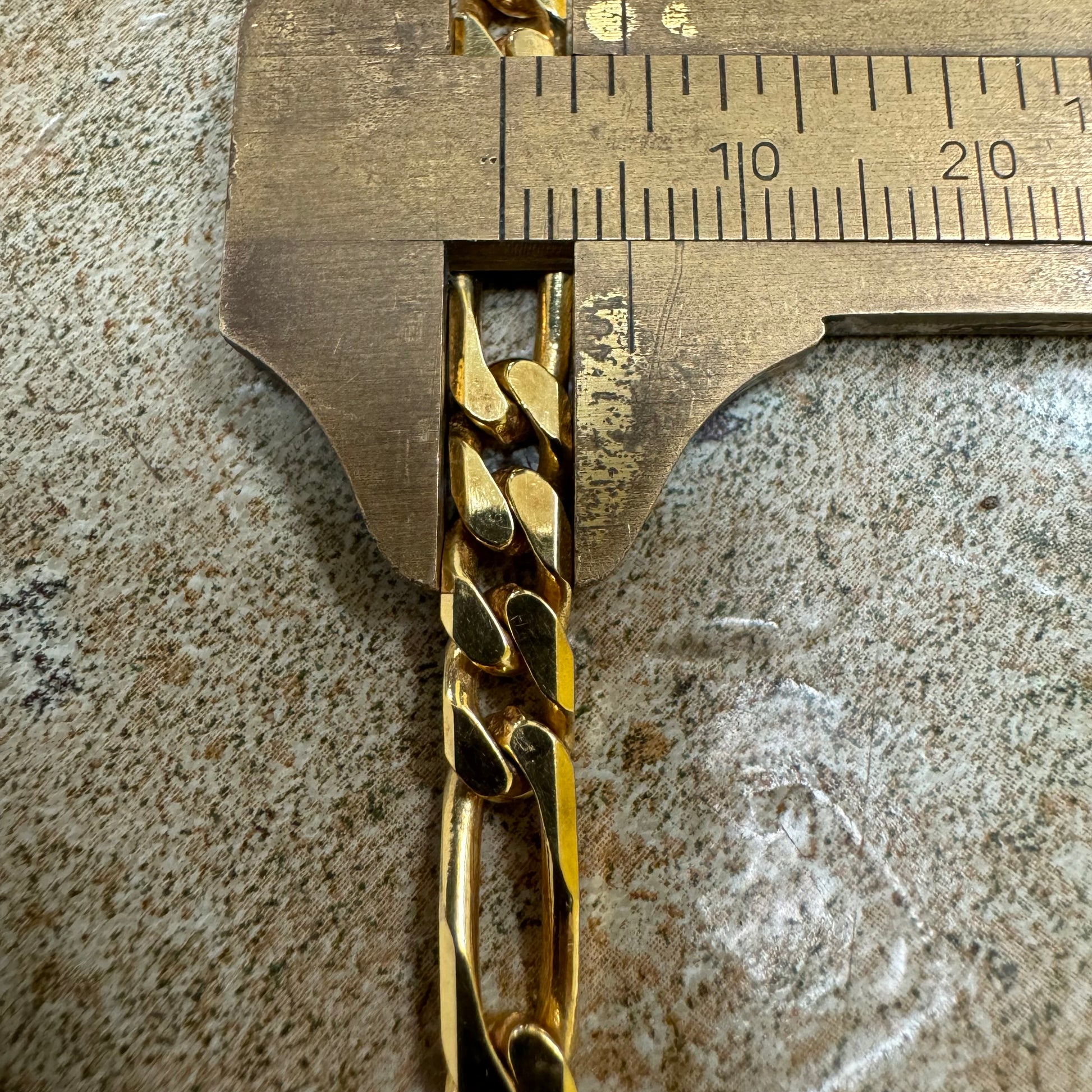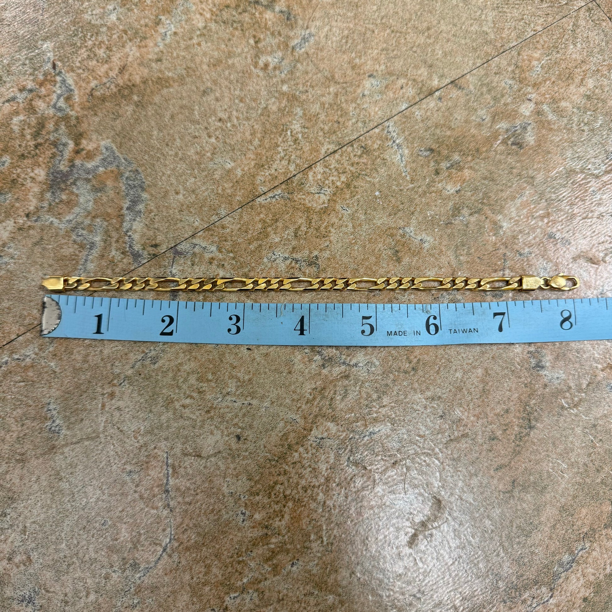 Vintage Solid 14k Yellow Gold Knife Edged Figaro Link Bracelet (8”)