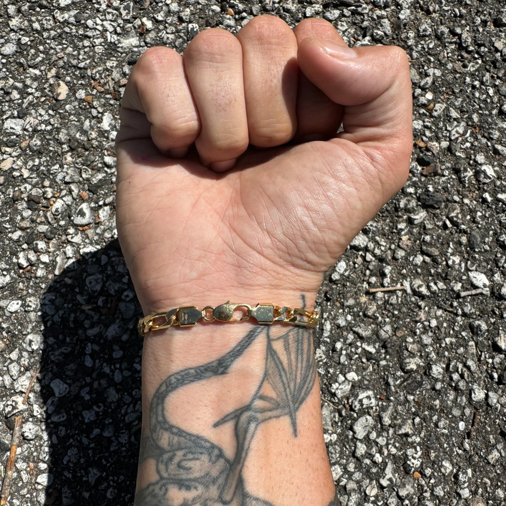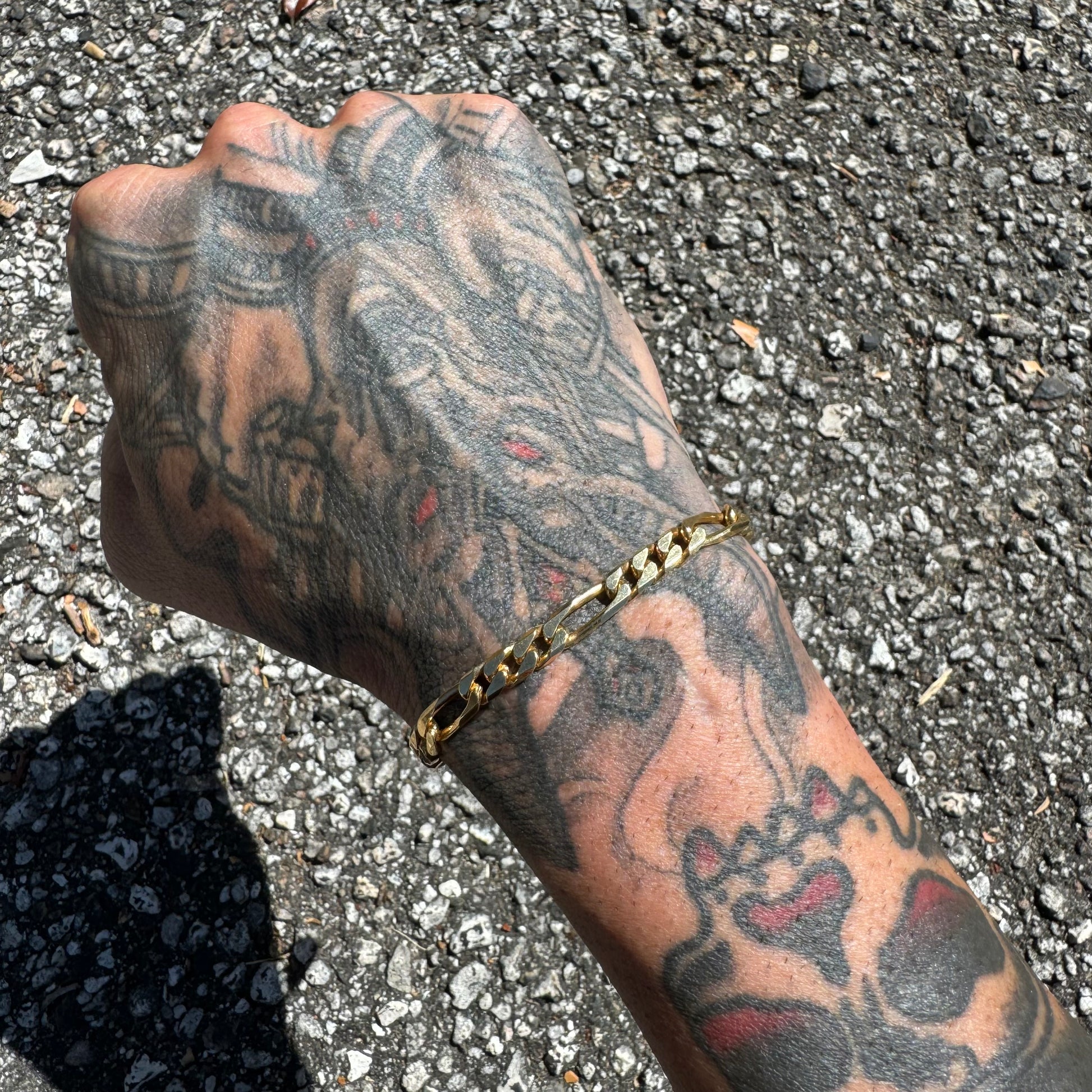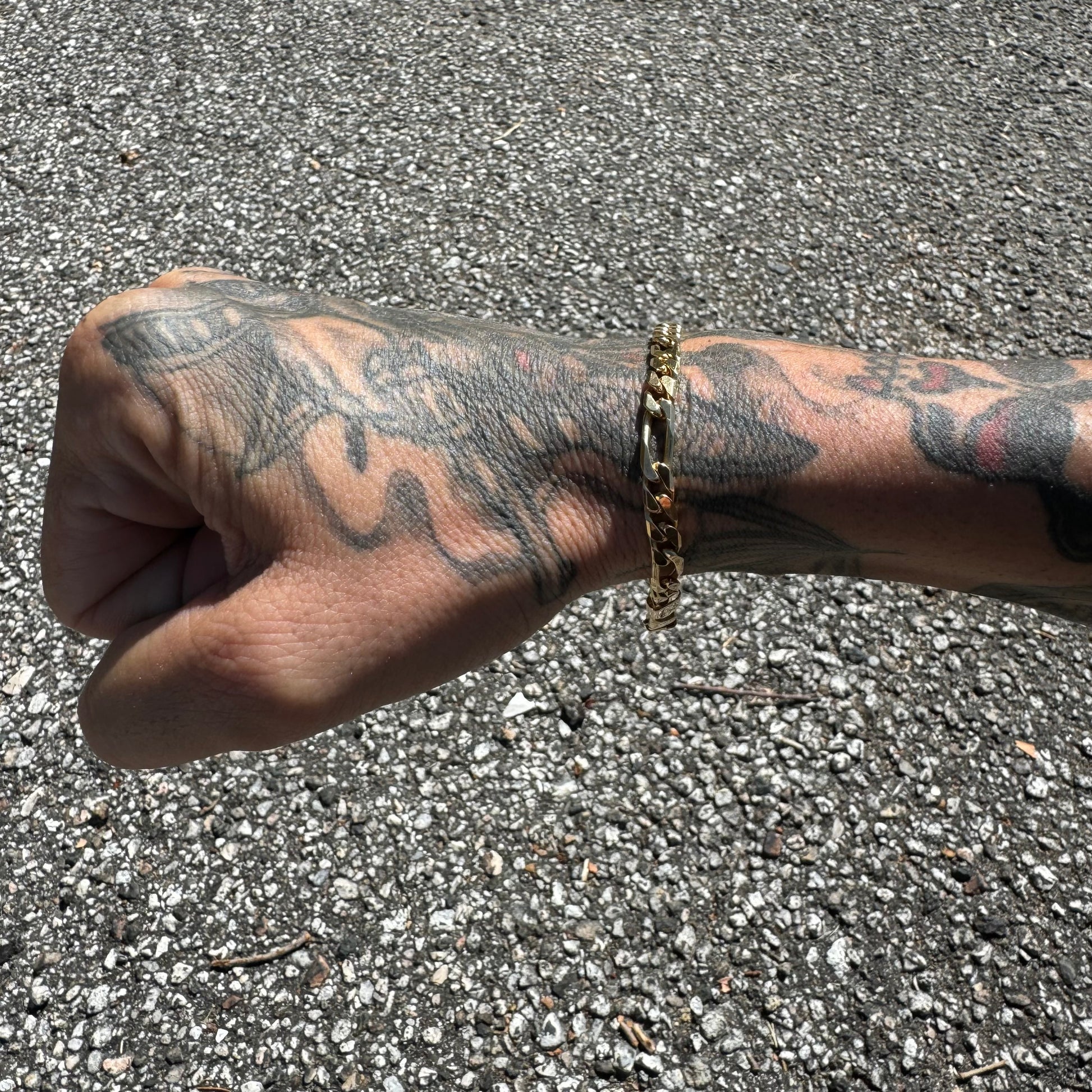 Vintage Solid 14k Yellow Gold Knife Edged Figaro Link Bracelet (8”)